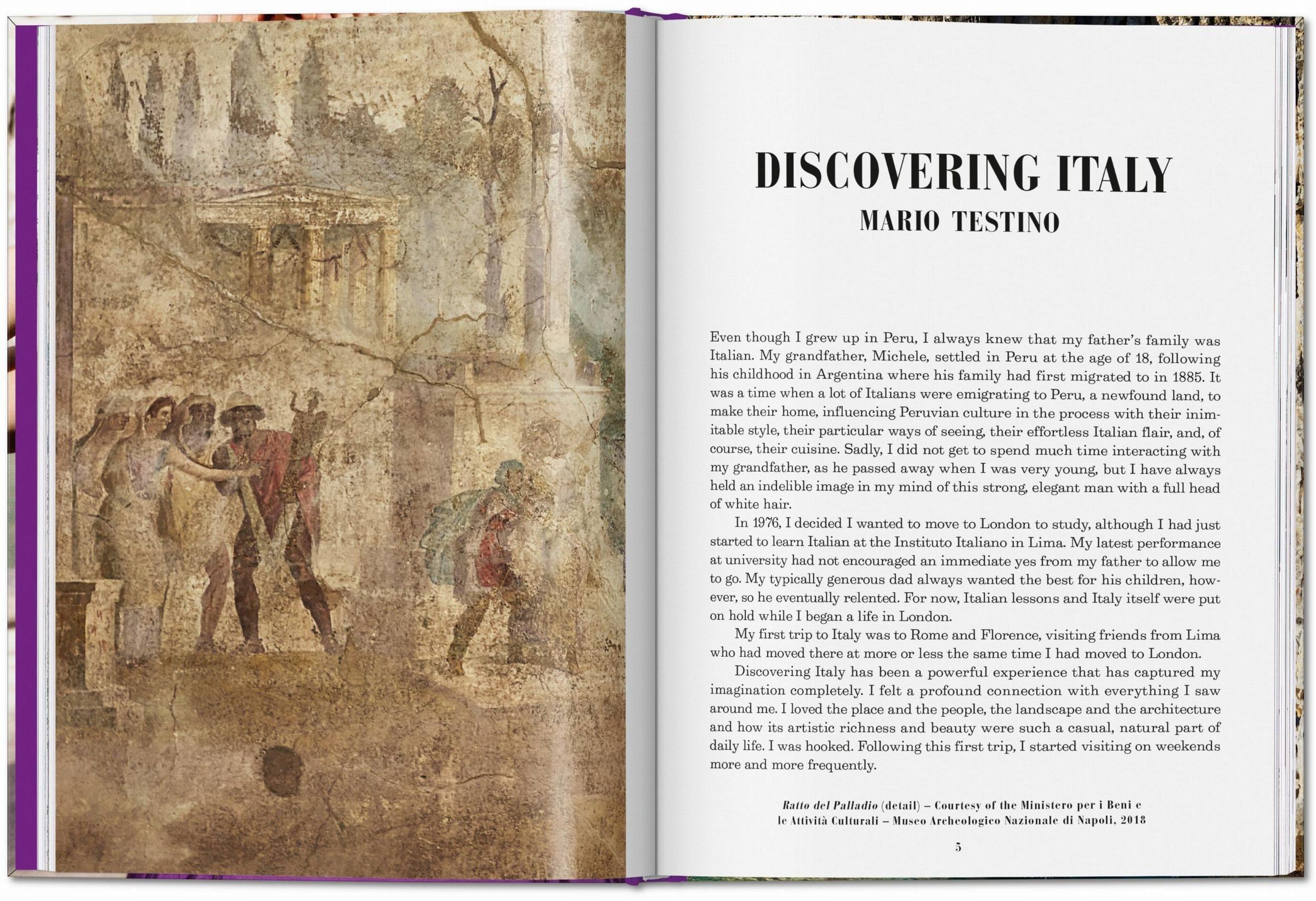 Für Ciao stellte Testino seineLieblingsaufnahmen aus Italien zusammen. Wir begegnen seinen Freunden, Stars und Sternchen aus der Film- und Modebranche, finden uns an den Küsten von Capri und Amalfi wieder oder blicken auf die belebten Plätze Venedigs oder Roms. Einzelporträts, Alltagsszenen und Familienfotos präsentieren diesen typischen Mix aus jung und alt, konservativ und freizügig, sowie die ungebrochene Begeisterung der Italiener für ihren temperamentvollen Lebensstil. Drei Kapitel - OUT AND ABOUT (Unterwegs), IN FASHION (Mode) und AT SEA (Am Meer) - fassen diese sehr persönliche Reise Testinos durch Italien zusammen, feiern die Kultur und Energie eines außergewöhnlichen Landes und bieten nicht weniger als eine Chronik von 40 Jahren stilbildender Fotografie.