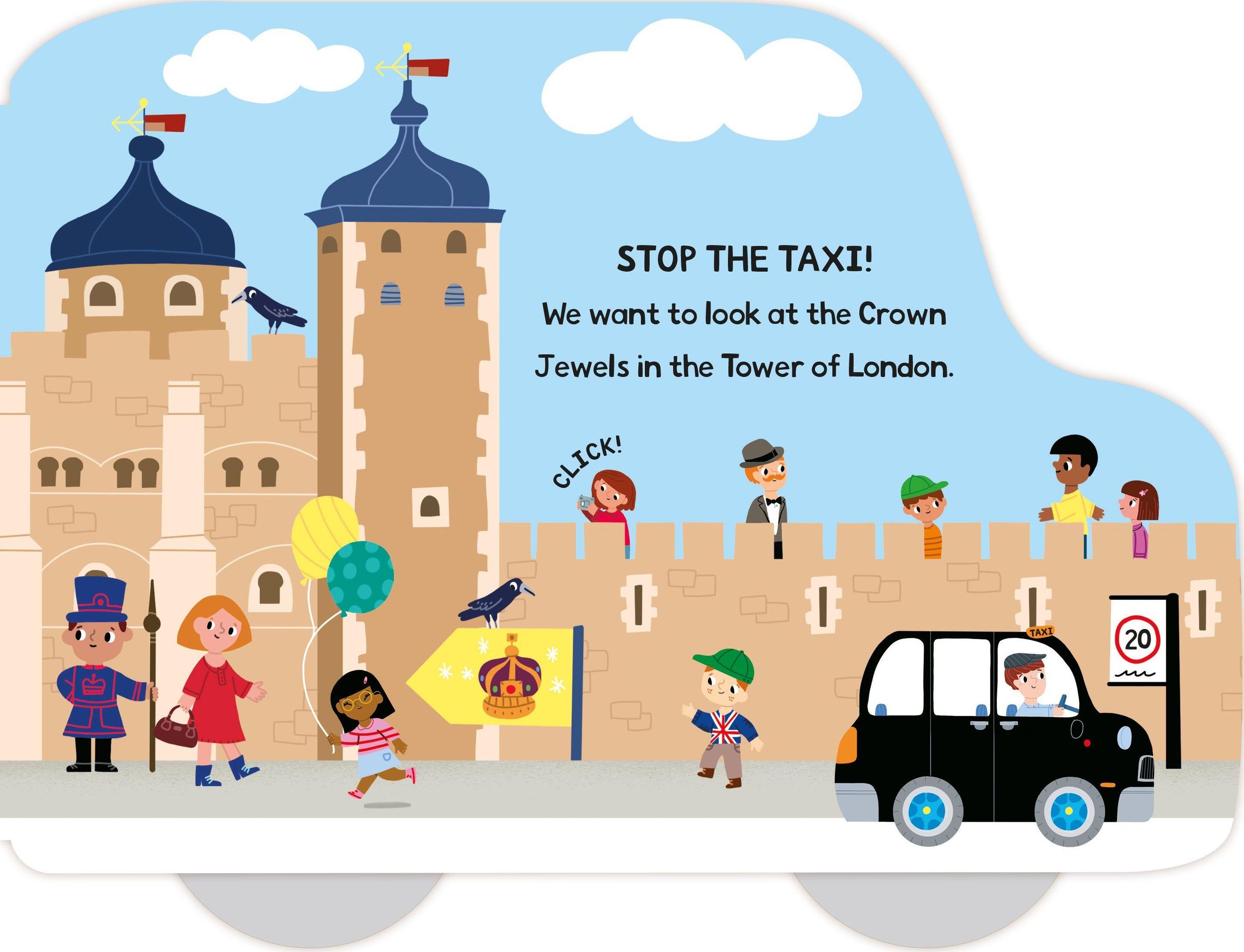 In My First London Taxi follow the black cab around the streets of London visiting the sights, with an extra detail to spot on every page. Then close the book and push it along on its four moving wheels and go on your own journey!