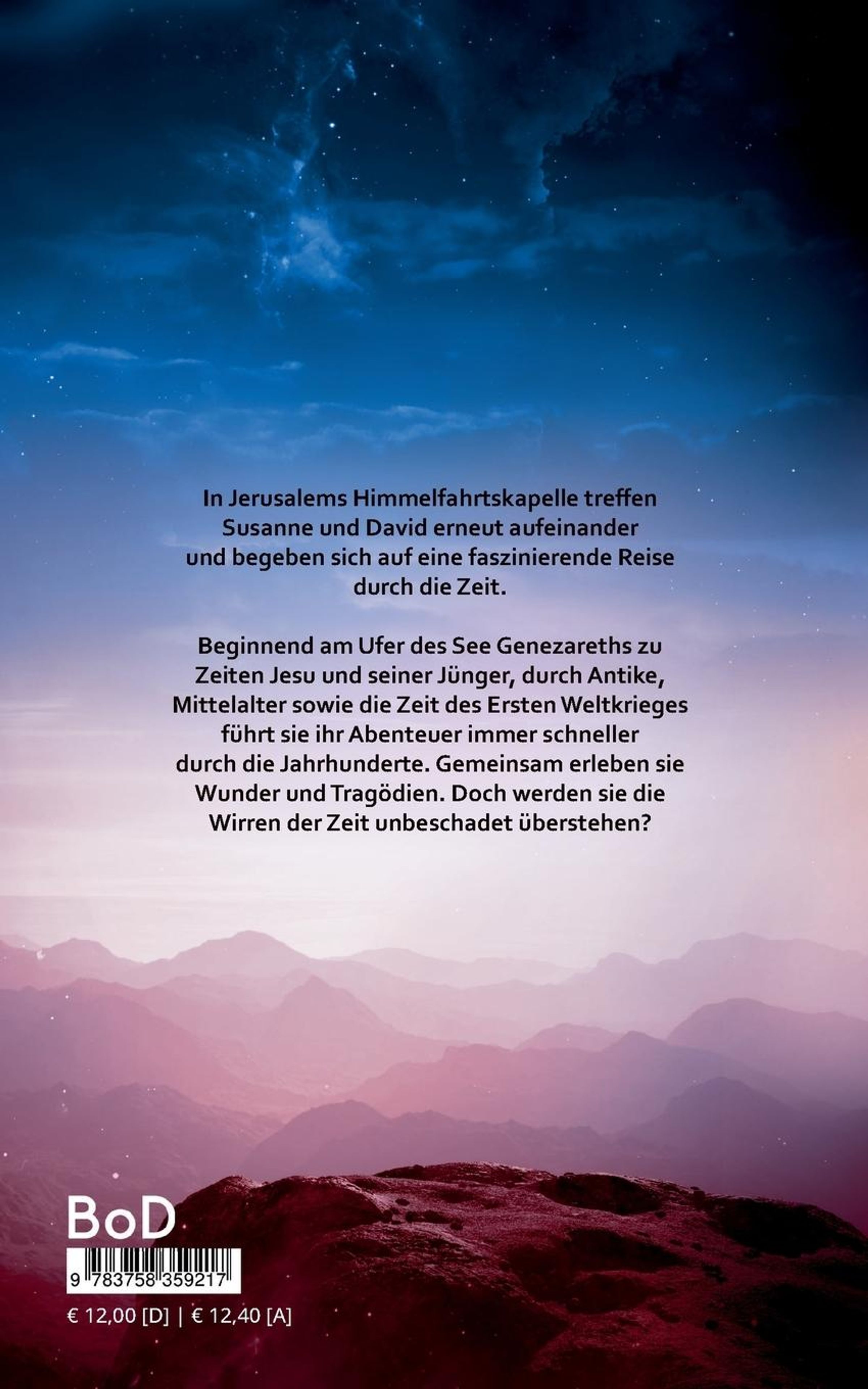 In Jerusalems Himmelfahrtskapelle treffen Susanne und David erneut aufeinander und begeben sich auf eine faszinierende Reise durch die Zeit. Beginnend am Ufer des See Genezareths zu Zeiten Jesu und seiner Jünger, durch Antike, Mittelalter sowie die Zeit des Ersten Weltkrieges führt sie ihr Abenteuer immer schneller durch die Jahrhunderte. Gemeinsam erleben sie Wunder und Tragödien. Doch werden sie die Wirren der Zeit unbeschadet überstehen?