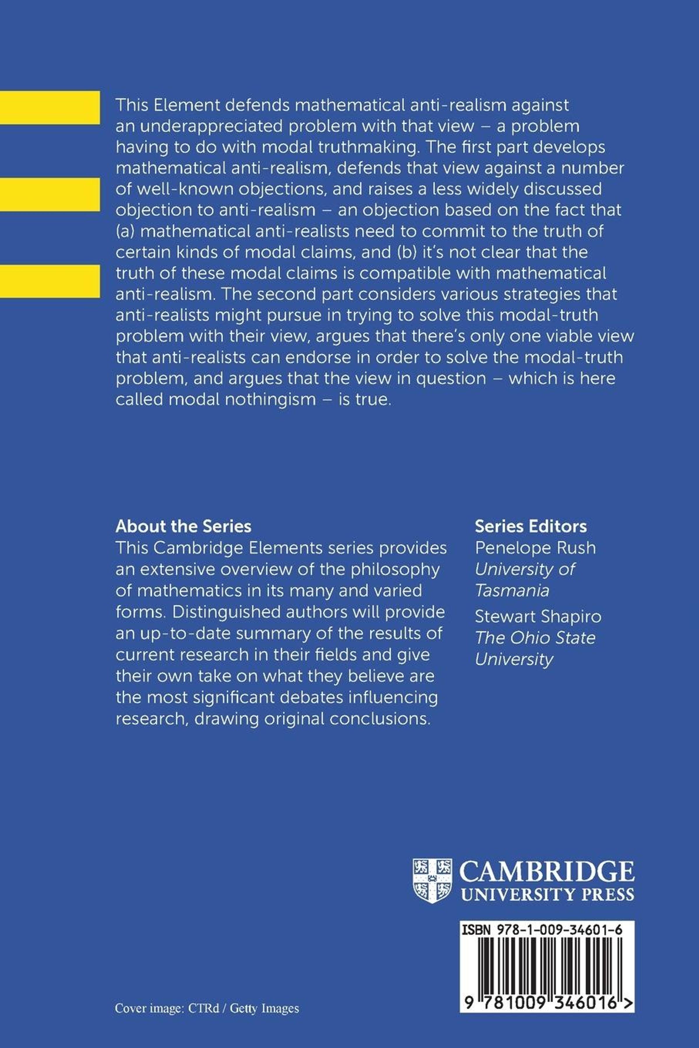 This Element defends mathematical anti-realism against an underappreciated problem with that view-a problem having to do with modal truthmaking. Part I develops mathematical anti-realism, it defends that view against a number of well-known objections, and it raises a less widely discussed objection to anti-realism-an objection based on the fact that (a) mathematical anti-realists need to commit to the truth of certain kinds of modal claims, and (b) it's not clear that the truth of these modal claims is compatible with mathematical anti-realism. Part II considers various strategies that anti-realists might pursue in trying to solve this modal-truth problem with their view, it argues that there's only one viable view that anti-realists can endorse in order to solve the modal-truth problem, and it argues that the view in question-which is here called modal nothingism-is true.