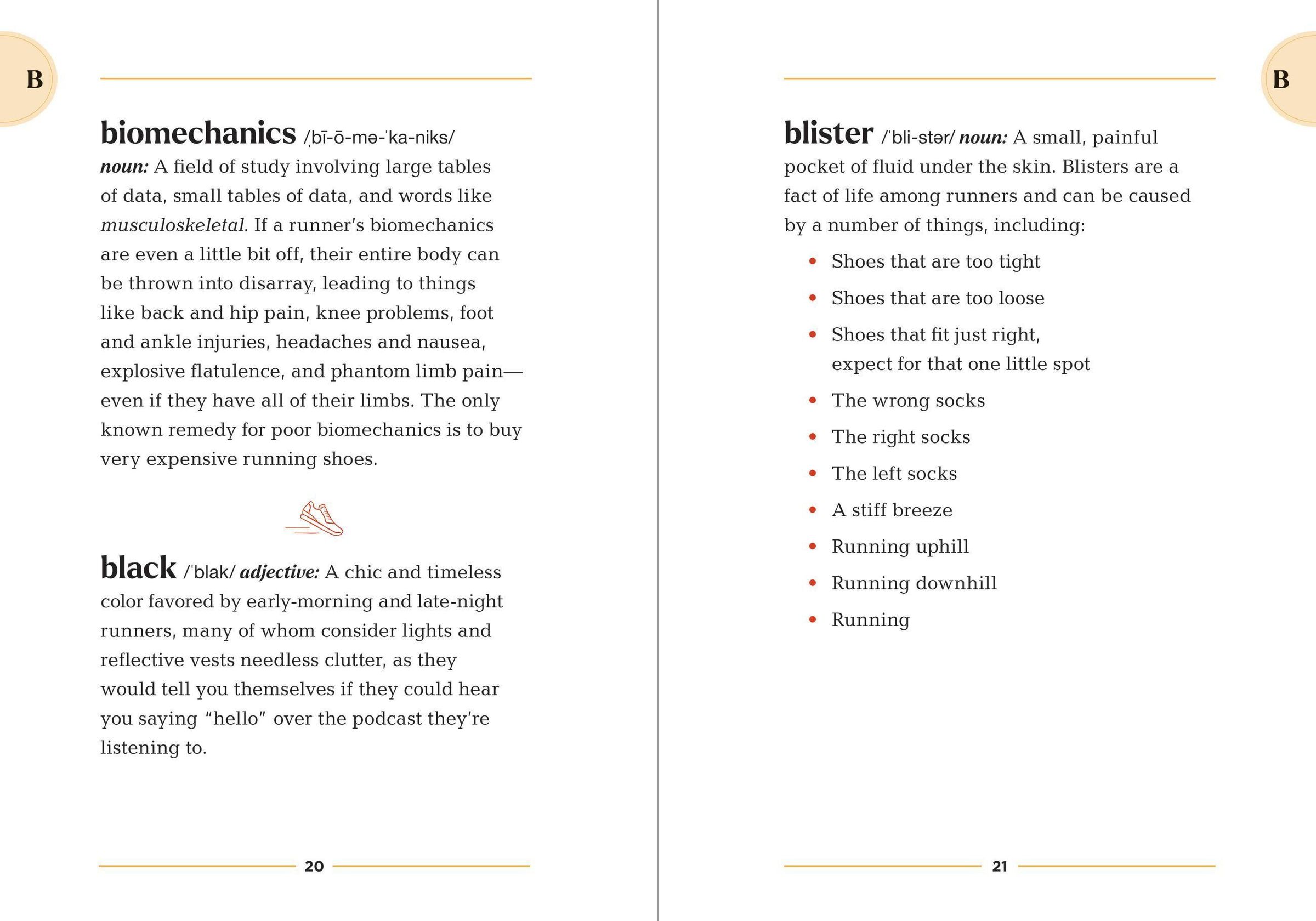 A clever pocket-sized dictionary that celebrates running with hilarious definitions and witty illustrations of terms that runners know and love.