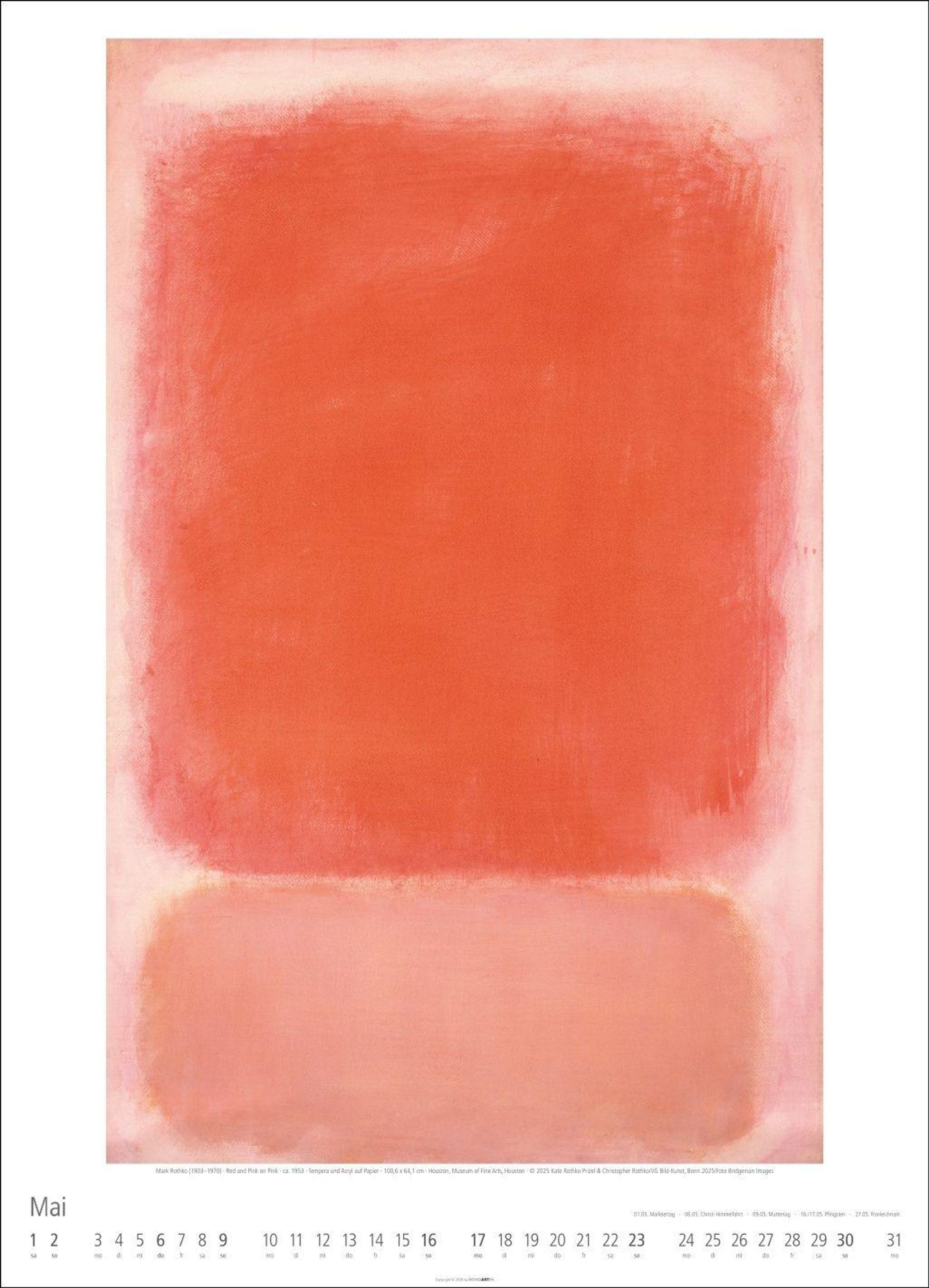 Meisterwerke vom Begründer der Farbfeldmalerei: Mark Rothko im neuen Jahres-Wandkalender 2027