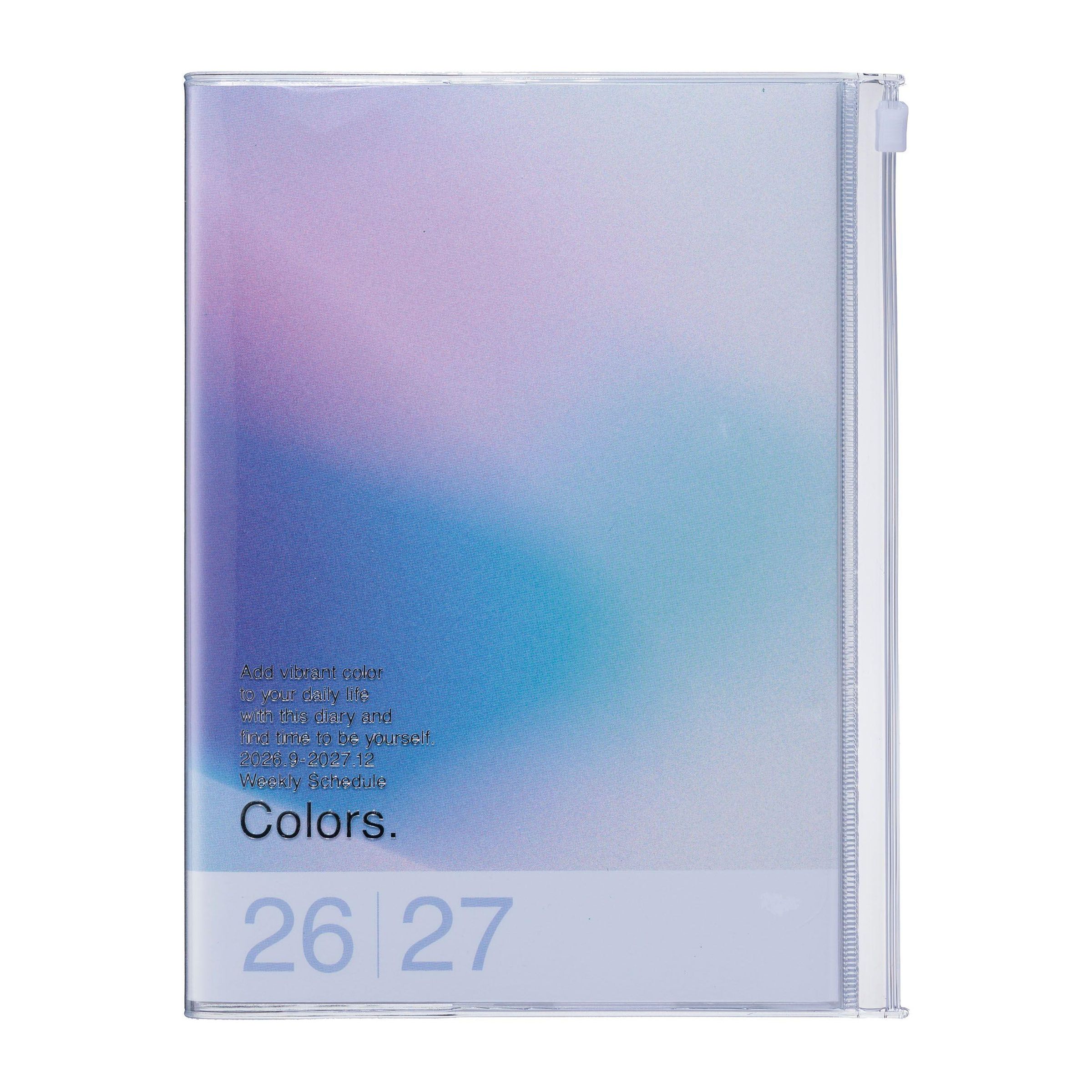 Text: "Add vibrant color to your daily life with this diary and find time to be yourself. 2023.9 - 2027.12 Weekly Schedule Colors. 26 | 27." Weiche Farbverläufe., Buch