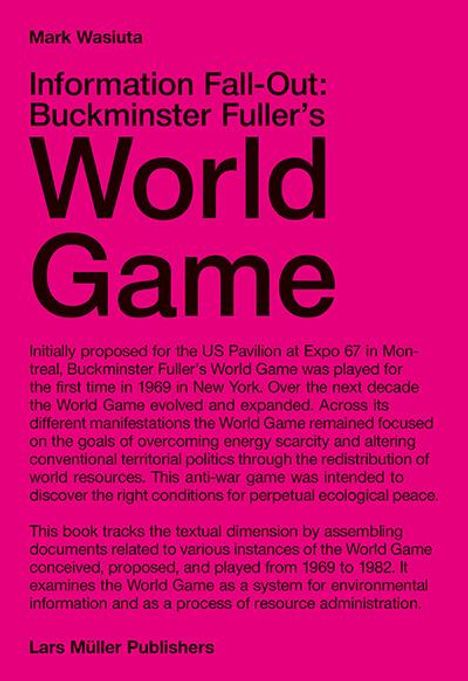 Ursprünglich für den US Pavillon an der Expo 1967 in Montreal vorgeschlagen, wurde Buckminster Fullers World Game erstmals 1969 in New York gespielt. Über die nächste Dekade hinweg wurde das World Game stetig weiterentwickelt, ohne seinen Fokus auf die Überwindung der Energieknappheit und die Veränderung der konventionellen territorialen Politik durch Umverteilung der globalen Ressourcen zu verlieren. Das Antikriegsspiel sollte die Voraussetzungen für immerwährenden ökologischen Frieden erkunden. Analog zur Kontrollstruktur des Kalten Krieges beschrieben die Vorschläge für World-Game-Zentren ein ausgedehntes Computernetzwerk, das es erlaubte, Informationen über die Umwelt - die unter anderem von russischen und amerikanischen Spionagesatelliten stammten - zu visualisieren. Fuller behauptete, dass deren optische Sensoren und thermographischen Scanner den Ort und die Menge von Wasser, Getreide, Metallen, Nutztieren, Einwohnern und alle anderen denkbaren Formen von Energie aufspüren könnten. Trotz Fullers Plänen für eine breite Beteiligung der Bevölkerung blieb das World Game zu seiner Lebenszeit sehr spekulativ und pädagogisch. Es zeigte sich hauptsächlich in ausufernden Forschungsberichten und kurzlebigen Seminaren. Dieser textuellen Dimension geht das Buch mittels einer Sammlung von Dokumenten nach, welche die verschiedenen Gelegenheiten belegen, bei denen das World Game zwischen 1694 und 1982 besprochen und gespielt wurde. Das Buch untersucht das World Game als eine Systematik der Umweltinformationen und als Prozess der Ressourcenverwaltung.