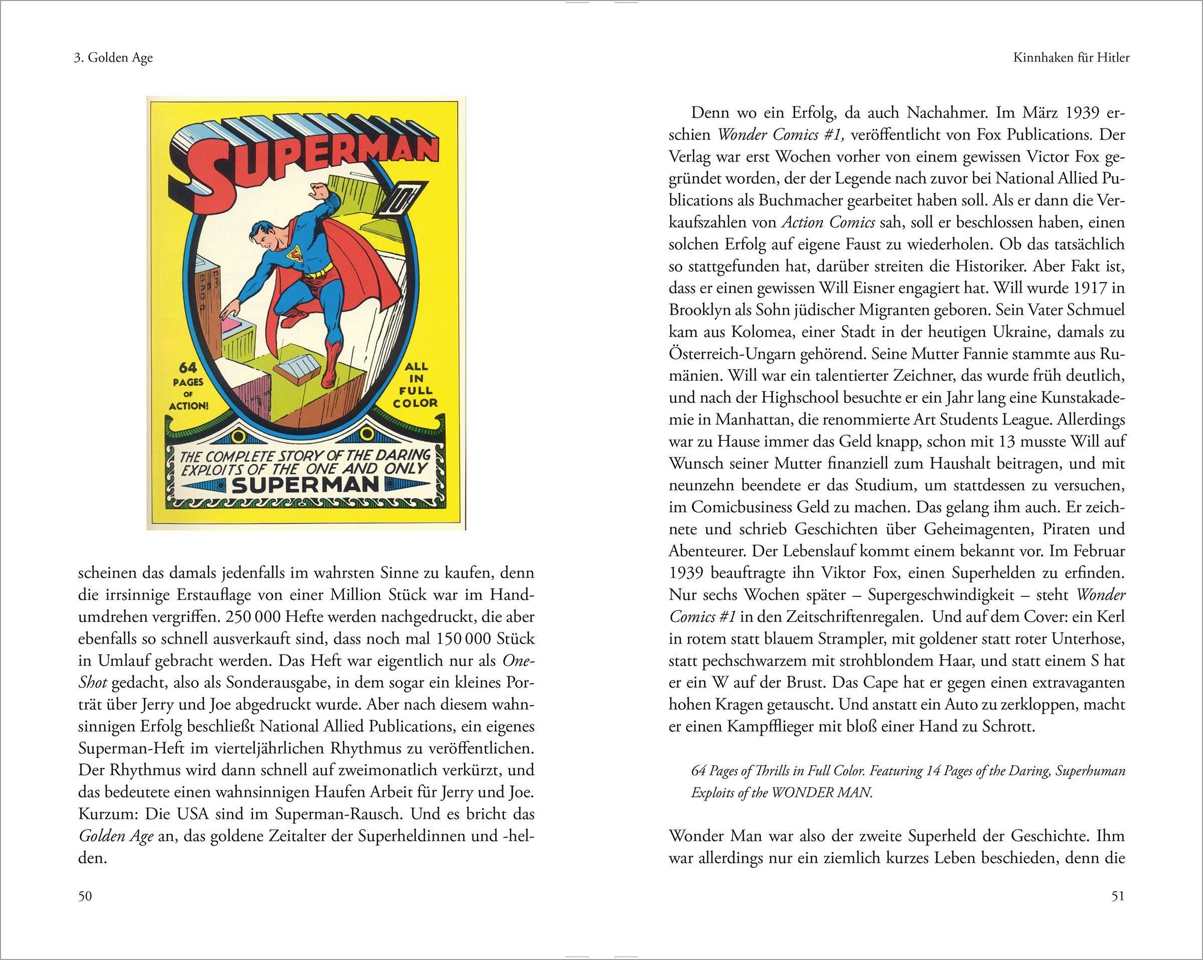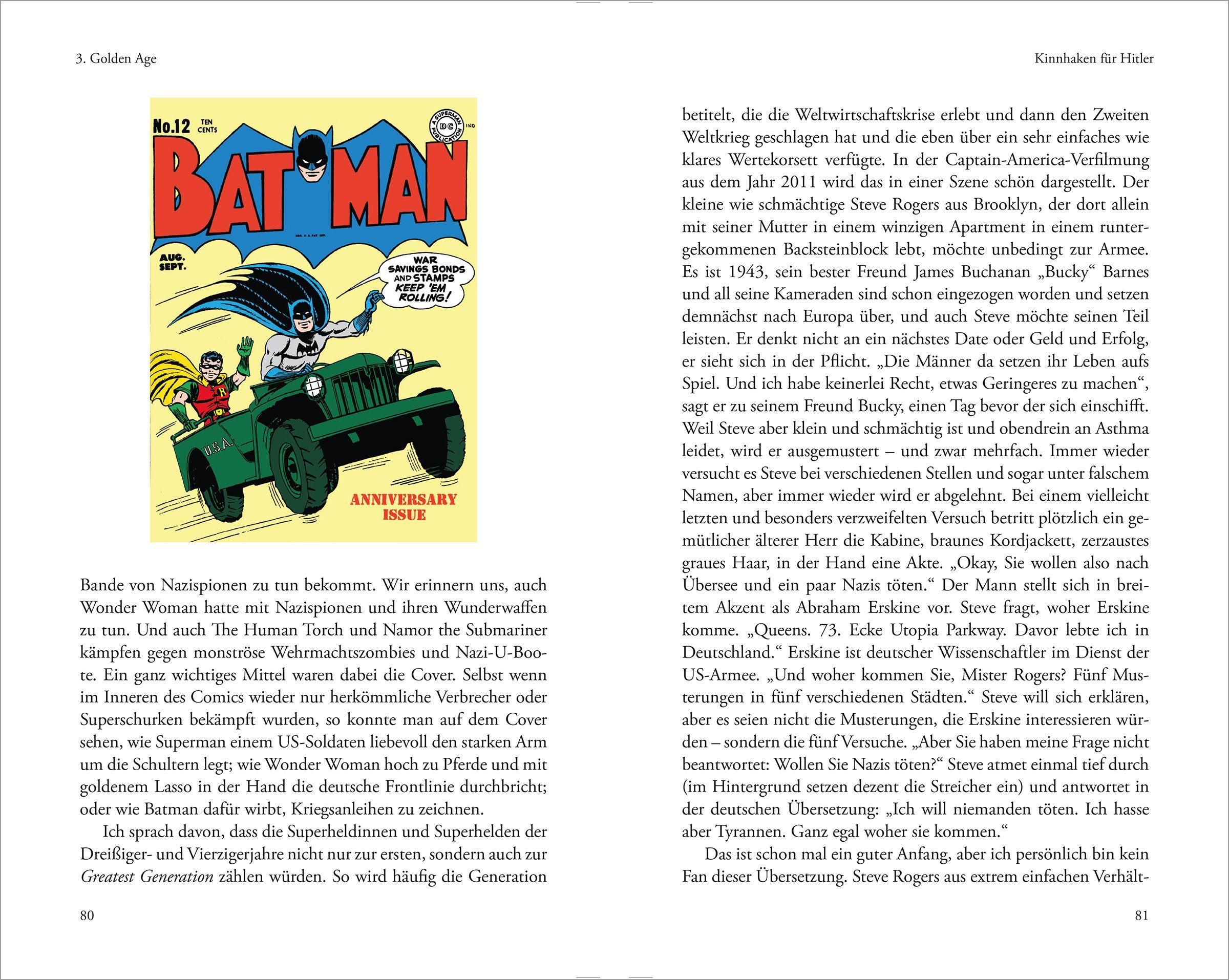 Dabei beleuchtet das Buch nicht nur die Entwicklung von Marvel- und DC-Charakteren, sondern auch die gesellschaftlichen Debatten, die sich in den Comics widerspiegeln: Faschismuskritik, Rassismus, Feminismus, Queerness und politische Utopien.