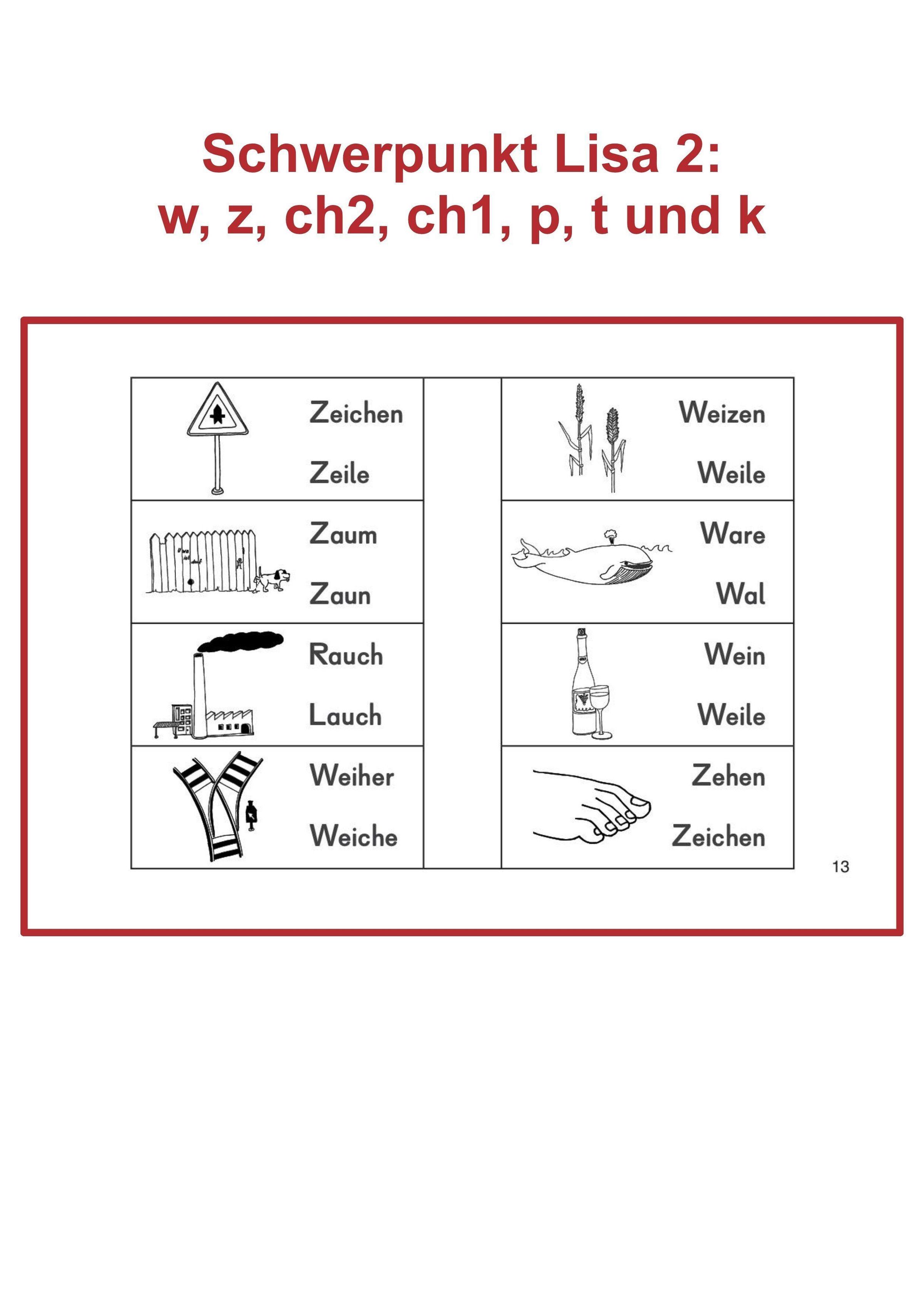 Folgende Inhalte werden schwerpunktmäßig bearbeitet: w, z, ch2, ch1, p, t und k