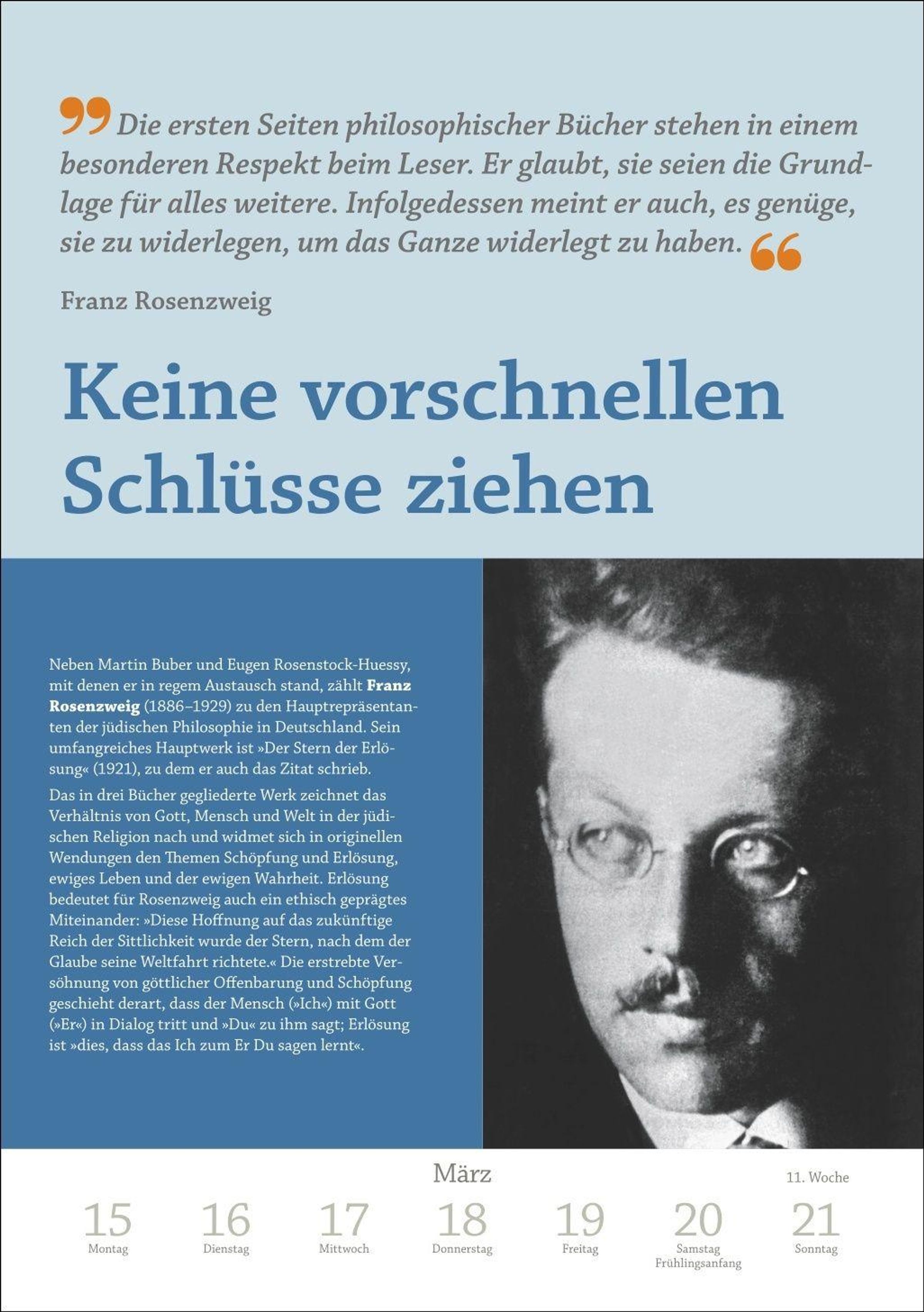 Jahres-Wandkalender mit Denkanstößen, philosophischen Zitaten und Hintergrundwissen zu philosophischen Themen, leicht verständlich erklärt