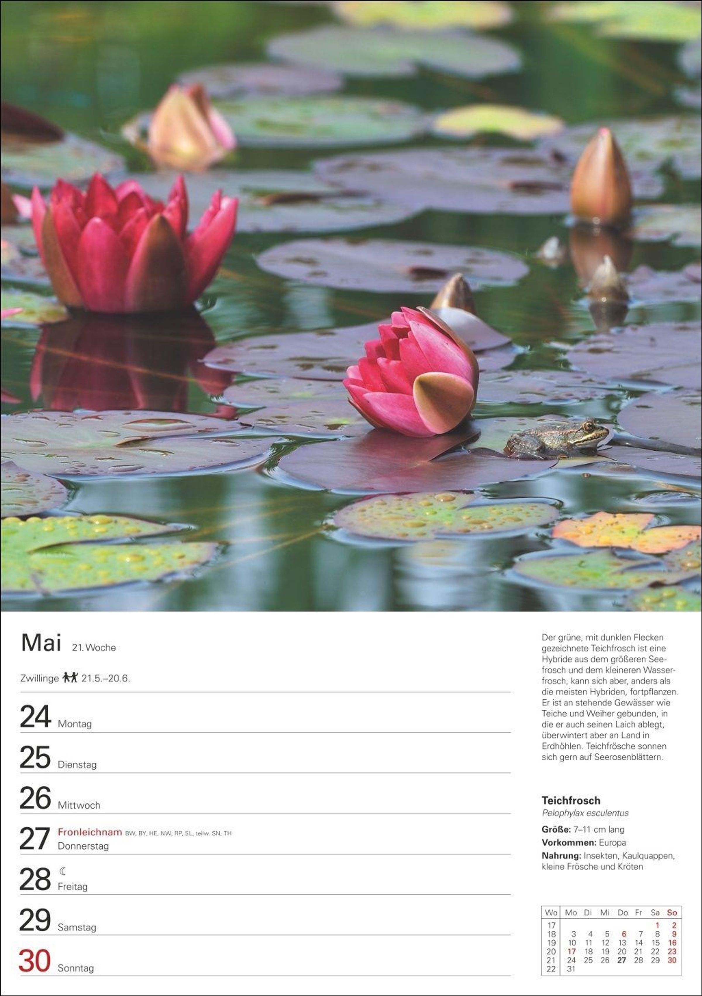 Vom Fuchs bis zum Laubfrosch: Wochenkalender für die Wand mit viel Platz für Eintragungen und Wochenchronik auf den Rückseiten
