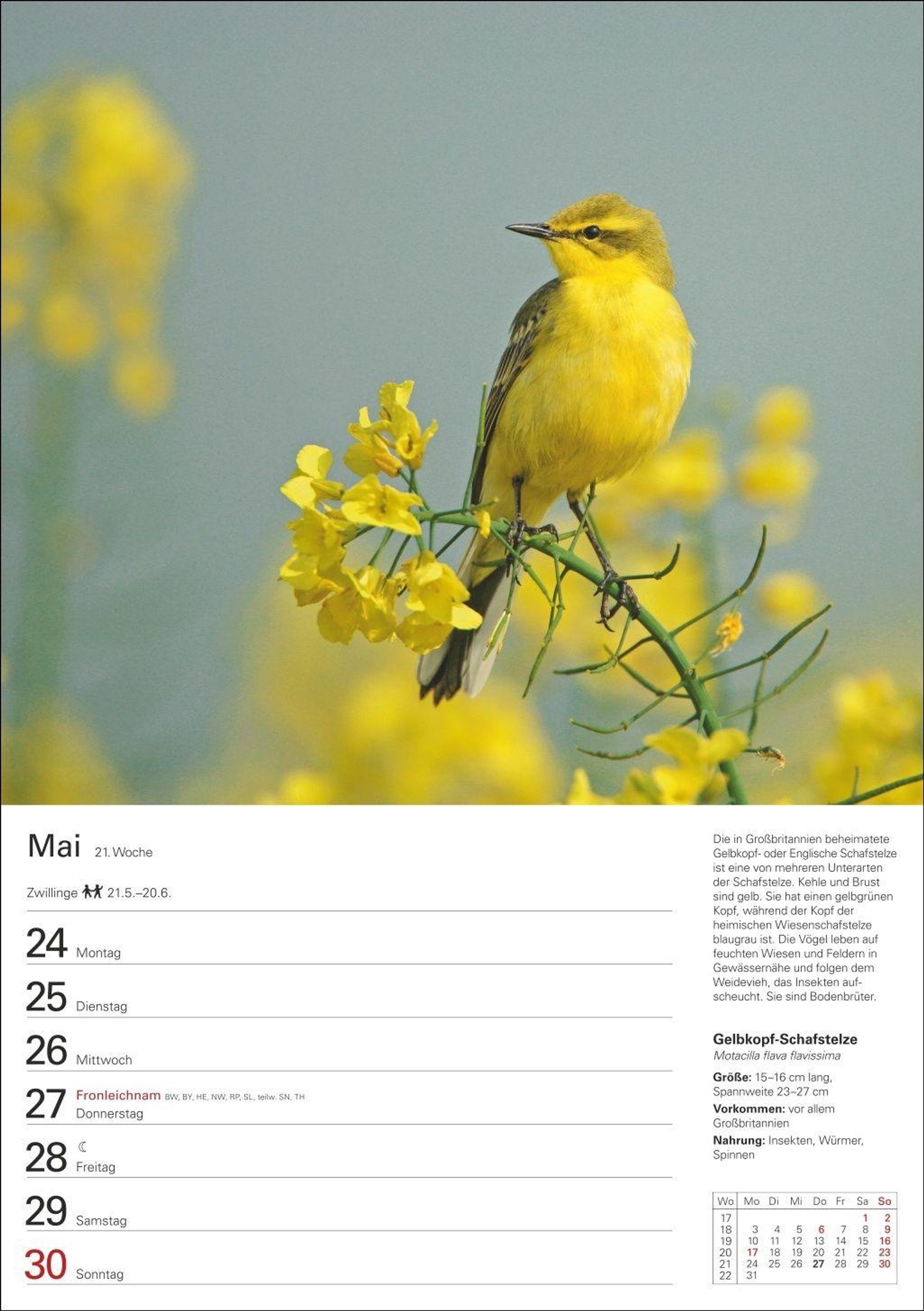 Von der Amsel bis zum Zaunkönig: Viel Platz für Eintragungen und interessante Informationen zur heimischen Vogelvielfalt in einem Wochenplaner für die Wand