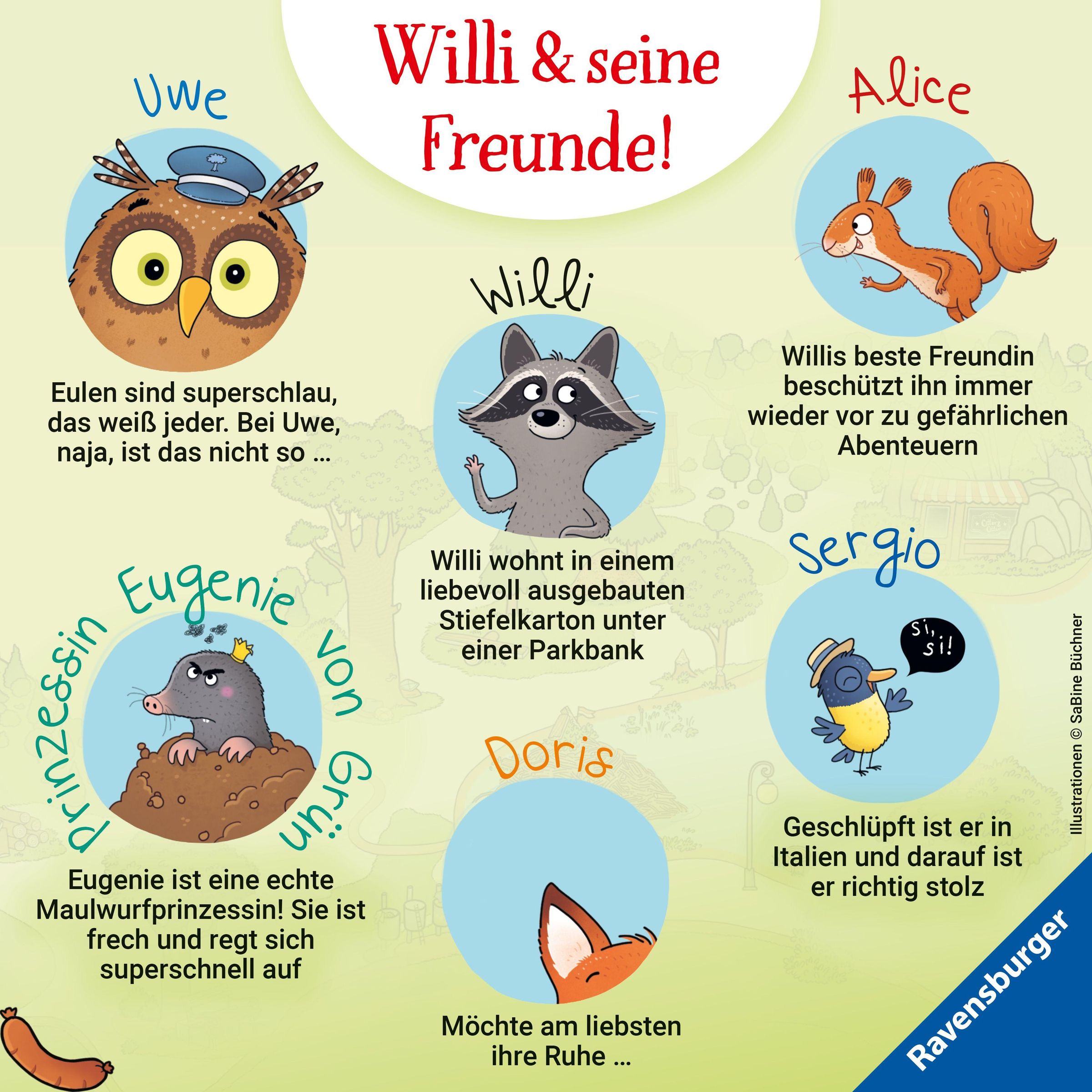 Waschbär Willi Wunderquatsch ist der weltweit einzige Waschbär, der unter einer Parkbank in einem liebevoll ausgebauten Stiefelkarton wohnt. Mit seinen Freundinnen und Freunden erlebt er im Stadtpark so viele verrückte Verrücktheiten - beim Seifenkistenrennen, beim Zahnpastafestival, bei der A-Wette oder wenn er mit Eichhörnchen Alice eine ganze Badewanne voll Mangojoghurt anrührt. Und wenn Willi irgendwann mal die verrückten Ideen ausgehen, dann zieht er einfach eine aus seiner Ab-No-Schu.