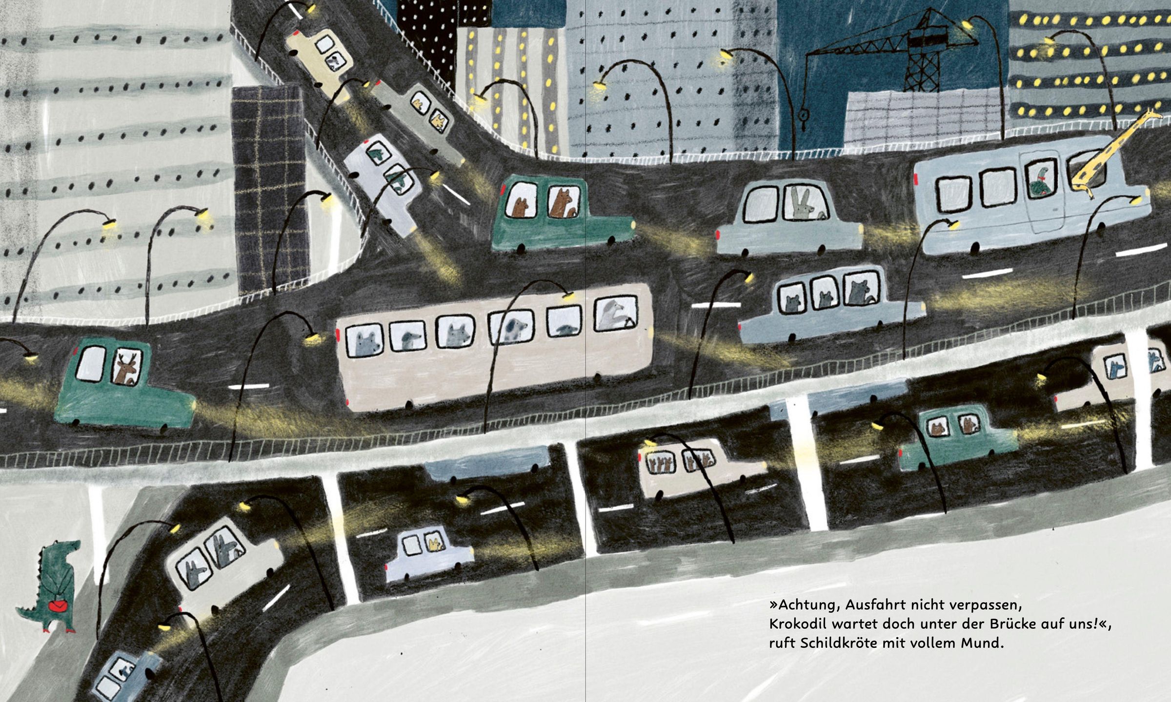 Text: "Nächste Woche, gleiche Zeit?" und "Marlene Droop". Illustration: Tiere in einem Auto bei Nacht, darunter eine Giraffe., Buch