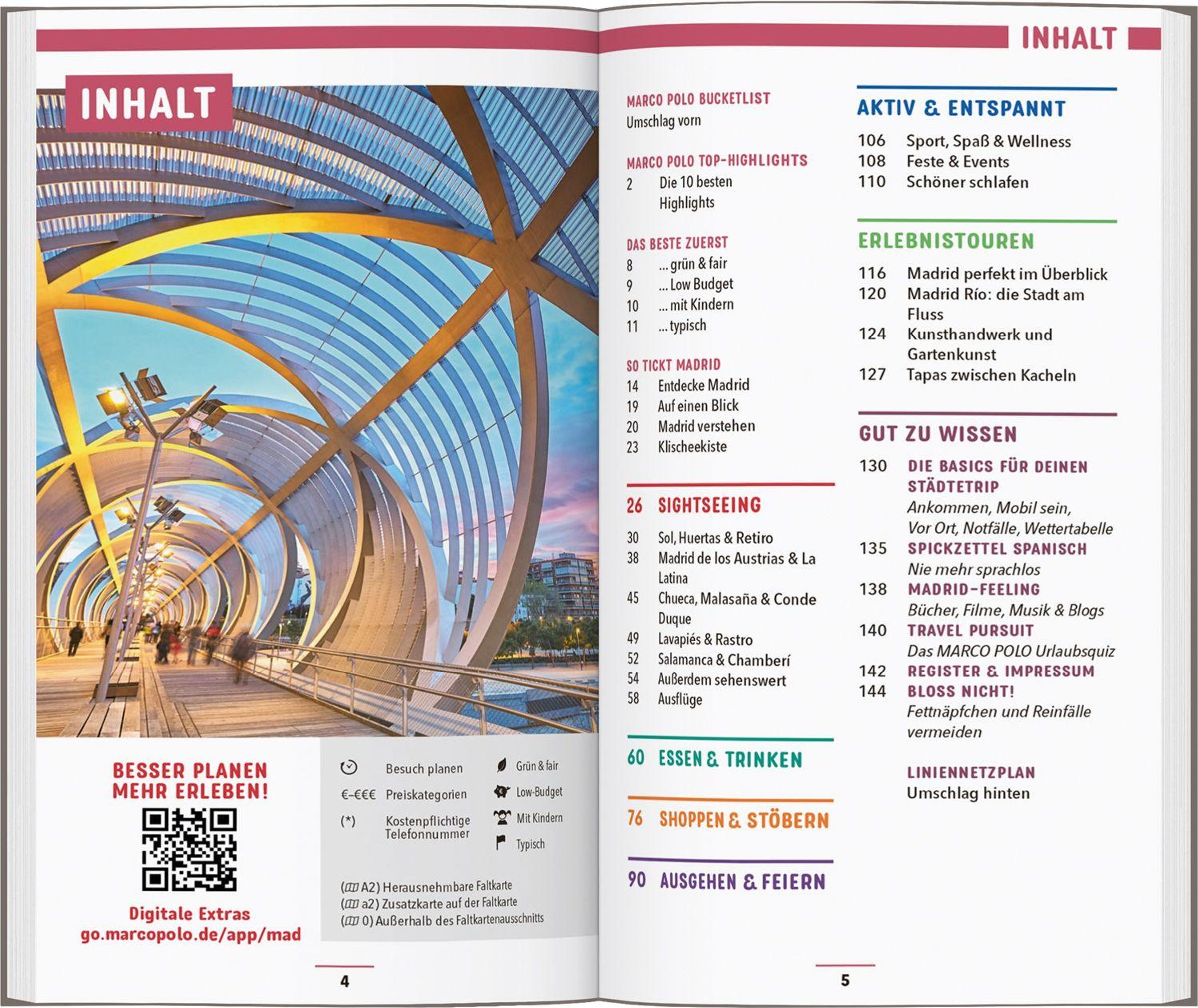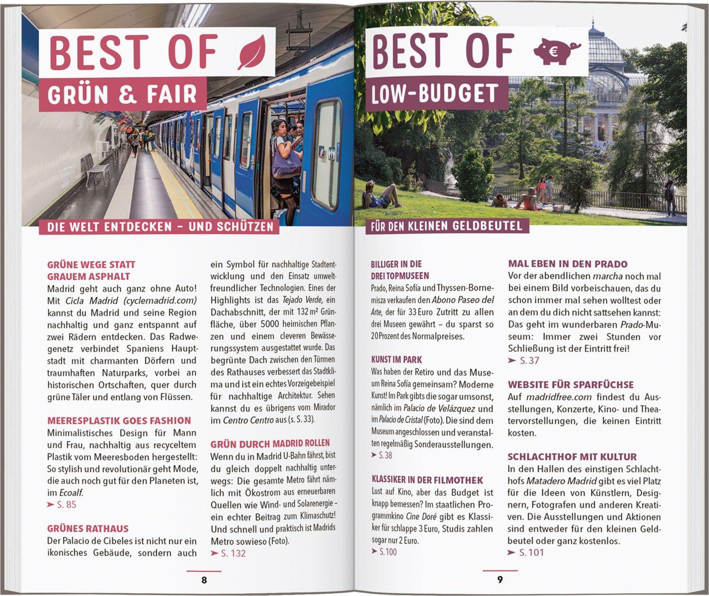 Schon vor deinem Städtetrip findest du im MARCO POLO Reiseführer Madrid hilfreiche Infos zu Anreise, Unterkunft und öffentlichen Verkehrsmitteln. Vor Ort stellst du dir mit Metroplan, Stadtteilkarten und der MARCO POLO Touren App deine eigenen Erkundungstrips zusammen: Schlendere sonntags über den Rastro, Madrids größten Flohmarkt, oder genieße den perfekten Sonnenuntergang am Templo de Debod!