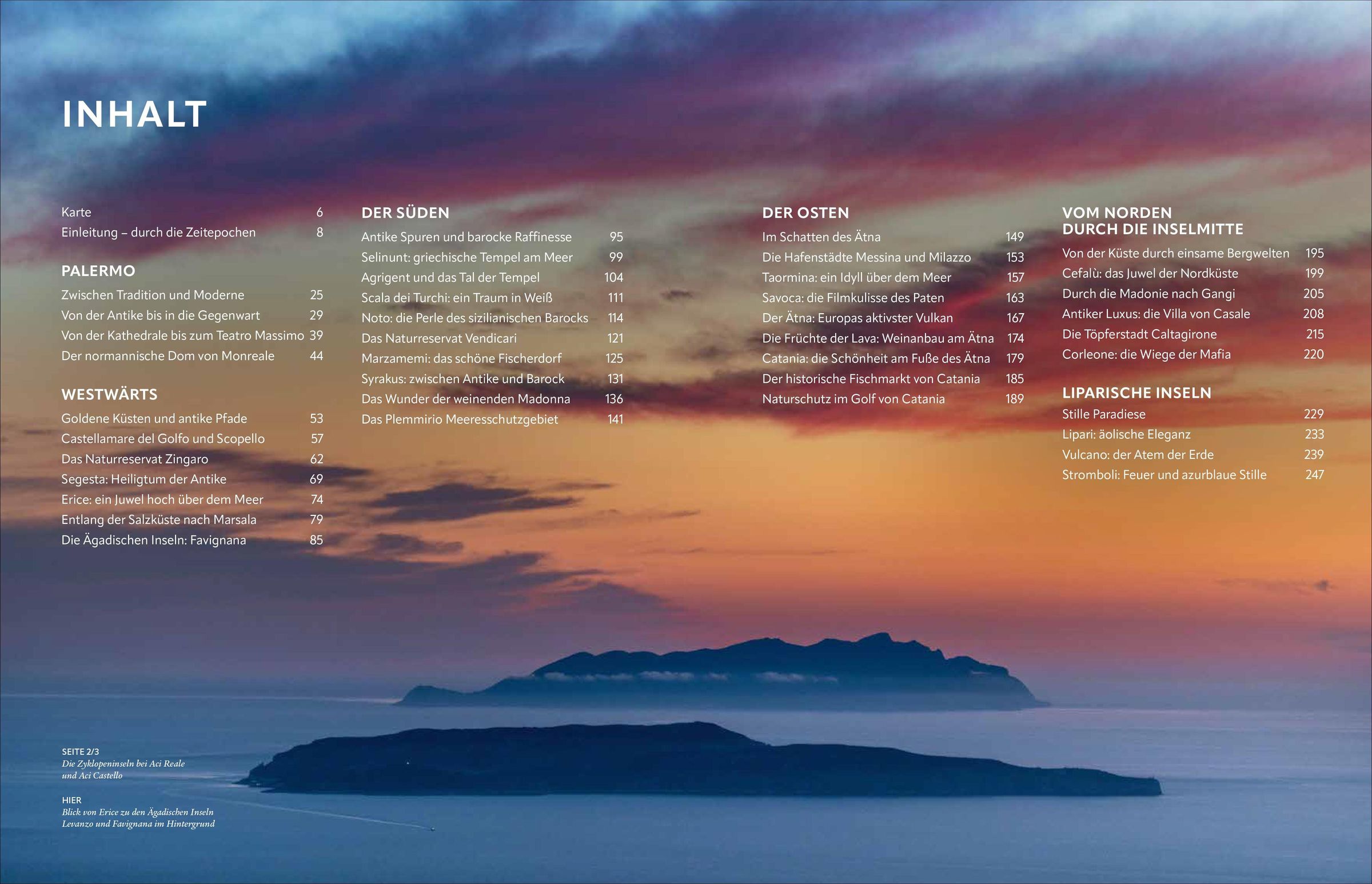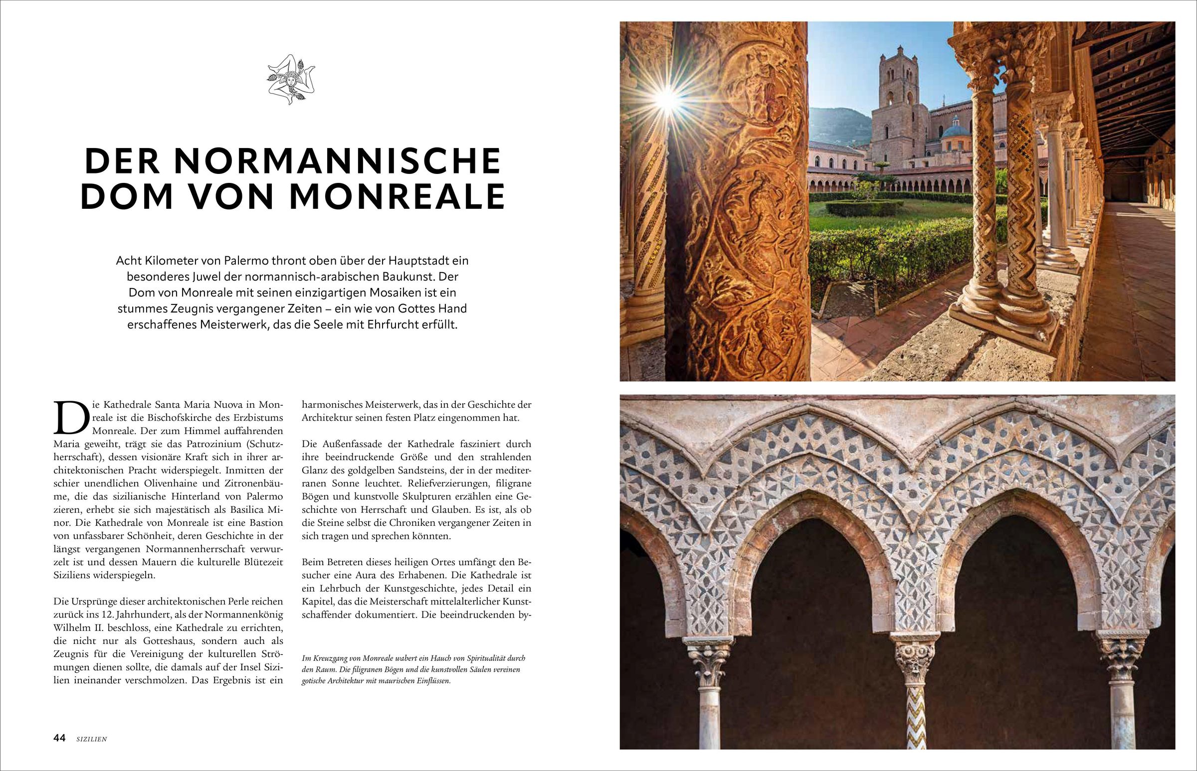 Siziliens Jahrtausende alte Geschichte hat ihre Spuren bis heute hinterlassen. Von der griechischen Antike ins Mittelalter der Araber, Byzantiner und Normannen. So vielfältig wie die Kultur, ist auch die Landschaft der Mittelmeerinsel. Vom pulsierenden Palermo hinauf in die Bergwelt der Madonie, weiter zum aktiven Vulkan Ätna und den schönsten Stränden von Cefalu und Taormina.