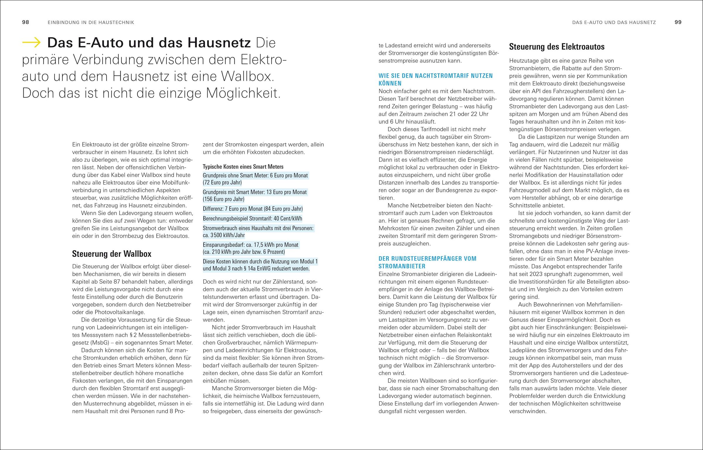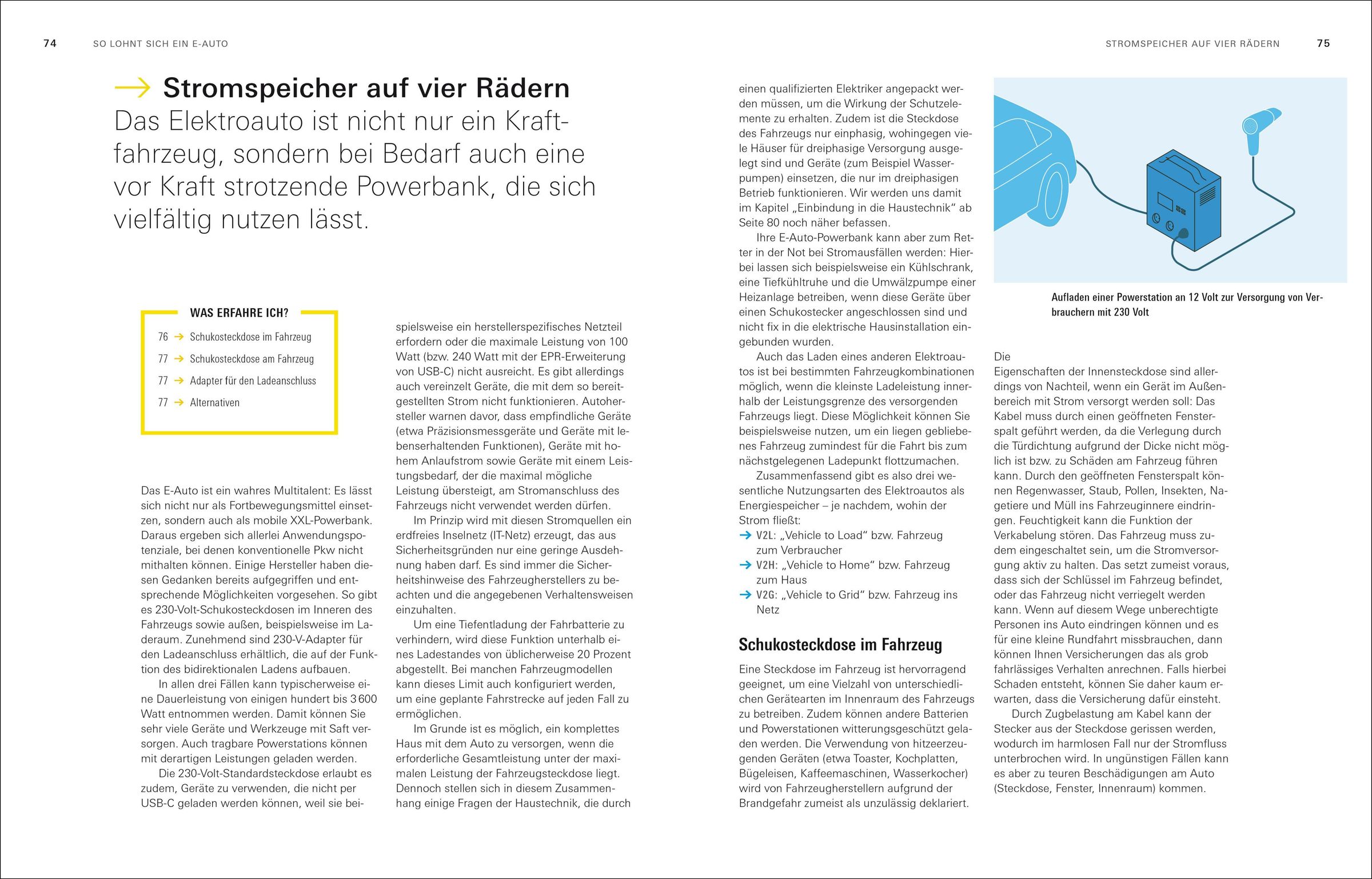 Denn auf die Details kommt es an: Detaillierte Wirtschaftlichkeitsberechnungen zeigen, wann sich der Kauf tatsächlich rechnet. Das Buch beantwortet alle entscheidenden Fragen - etwa: Wie lässt sich das E-Auto optimal mit selbst erzeugtem Solarstrom laden? Welche Wallbox ist die richtige? Wie lassen sich durch smarte Ladesteuerung Kosten senken? Besonders spannend: die neuen V2G-Tarife, mit denen das Auto als Stromspeicher fungiert und man sogar Geld verdienen kann.