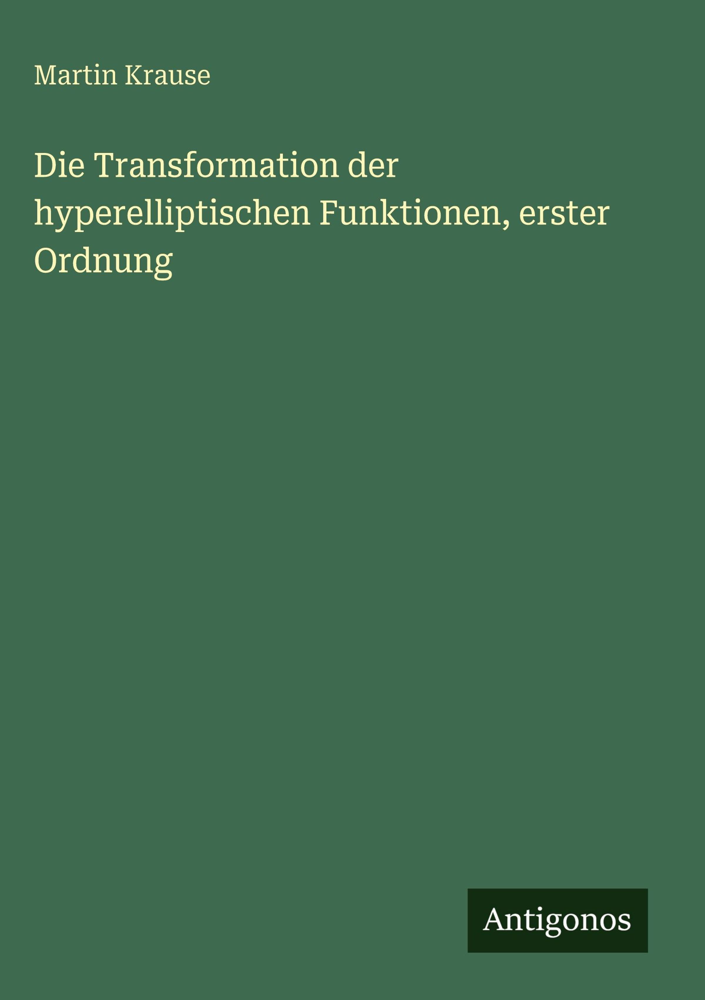 Martin Krause: Die Transformation der hyperelliptischen Funktionen, erster Ordnung, Gebunden
