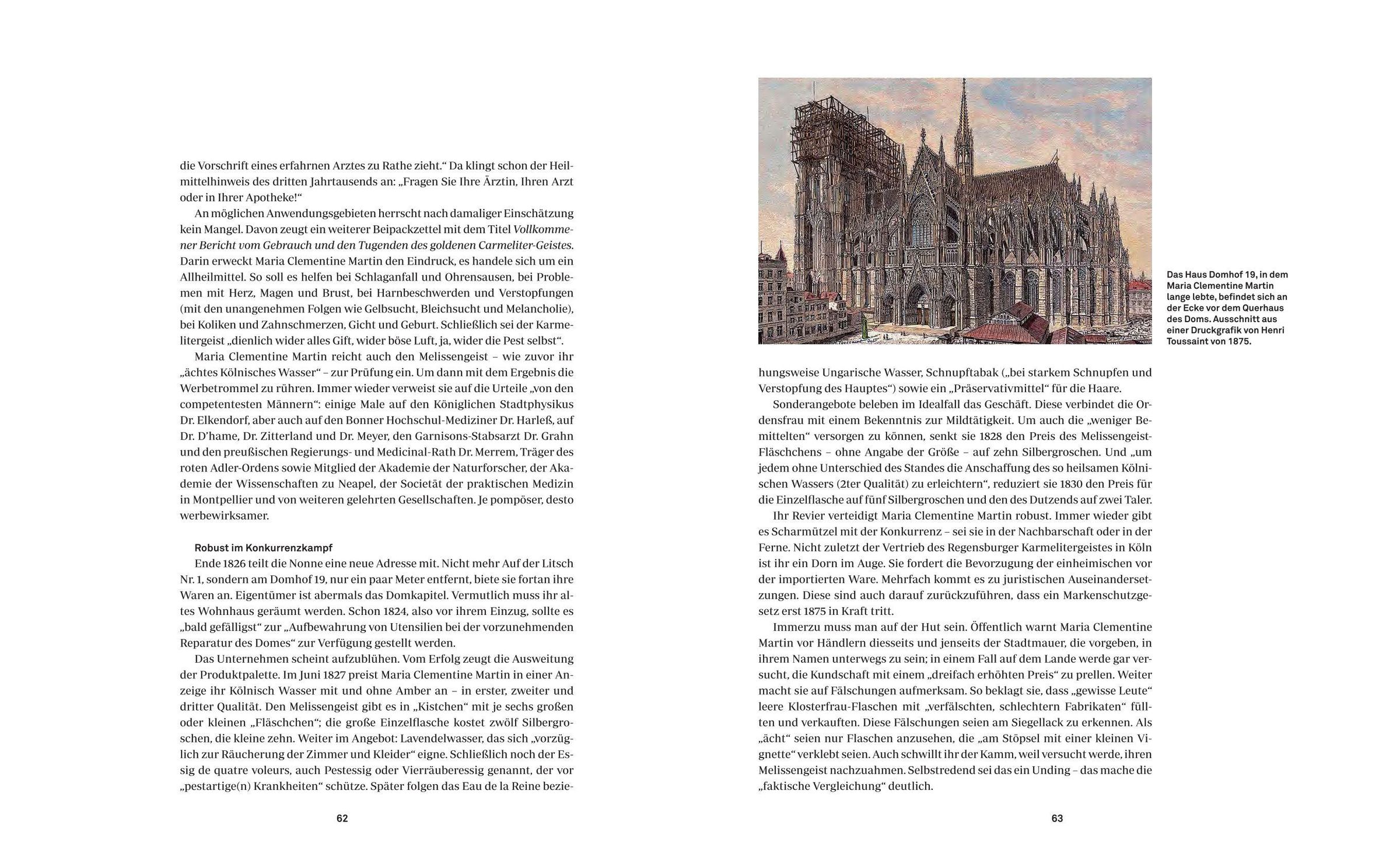 Köln im Jahr 1826: Maria Clementine Martin ist den Wirren der Napoleonischen Zeit entronnen, die sie bis zu den Schlachtfeldern von Waterloo geführt hatten. Hier findet sie Zuflucht im Haus des Domvikars. Mithilfe ihres fundierten Wissens im Bereich der Klostermedizin gründet sie eine deutsche Marke, die dank ihres unermüdlichen Einsatzes einen globalen Siegeszug antreten wird.
