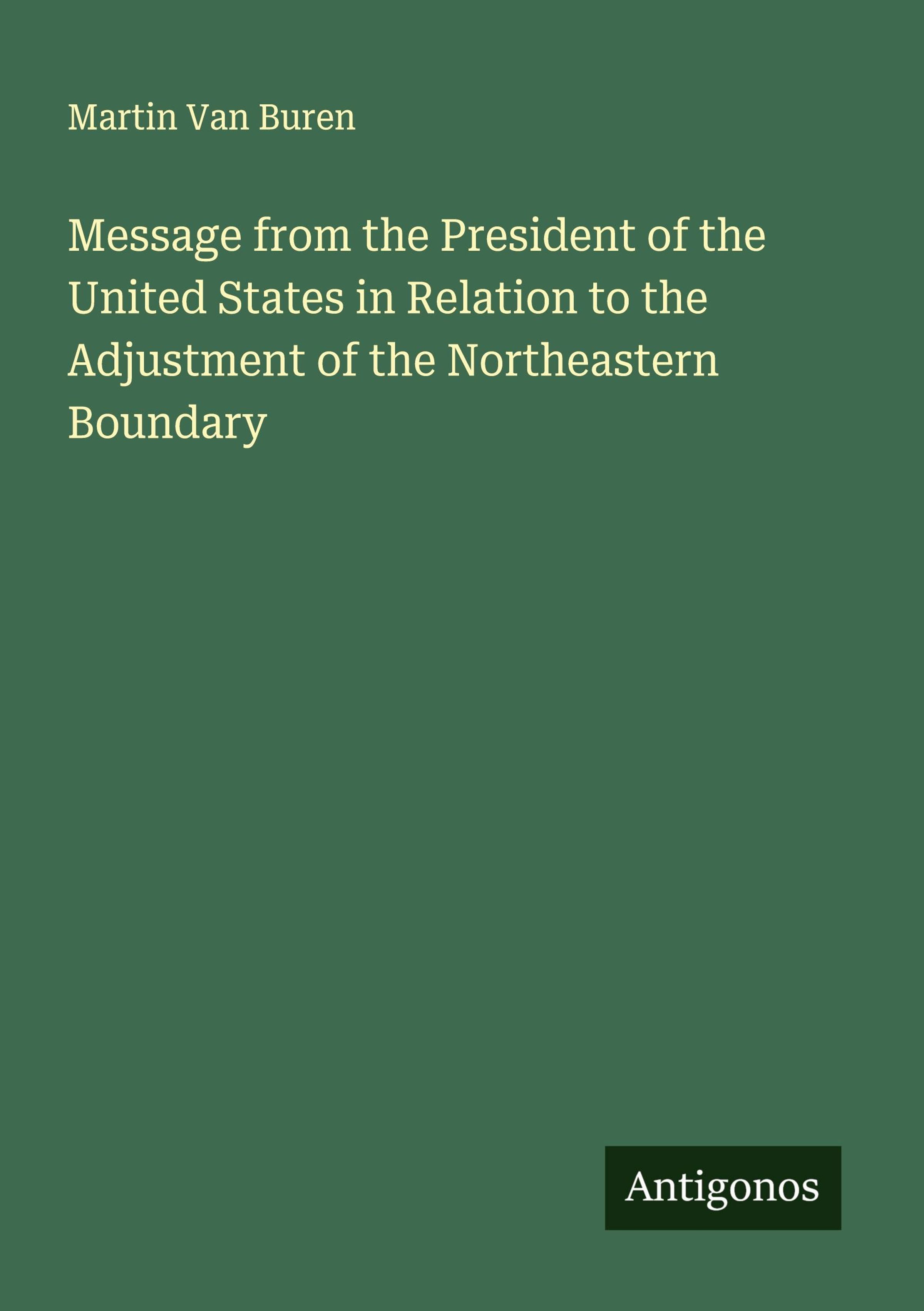 Message from the President of the United States in Relation to the Adjustment of the Northeastern Boundary