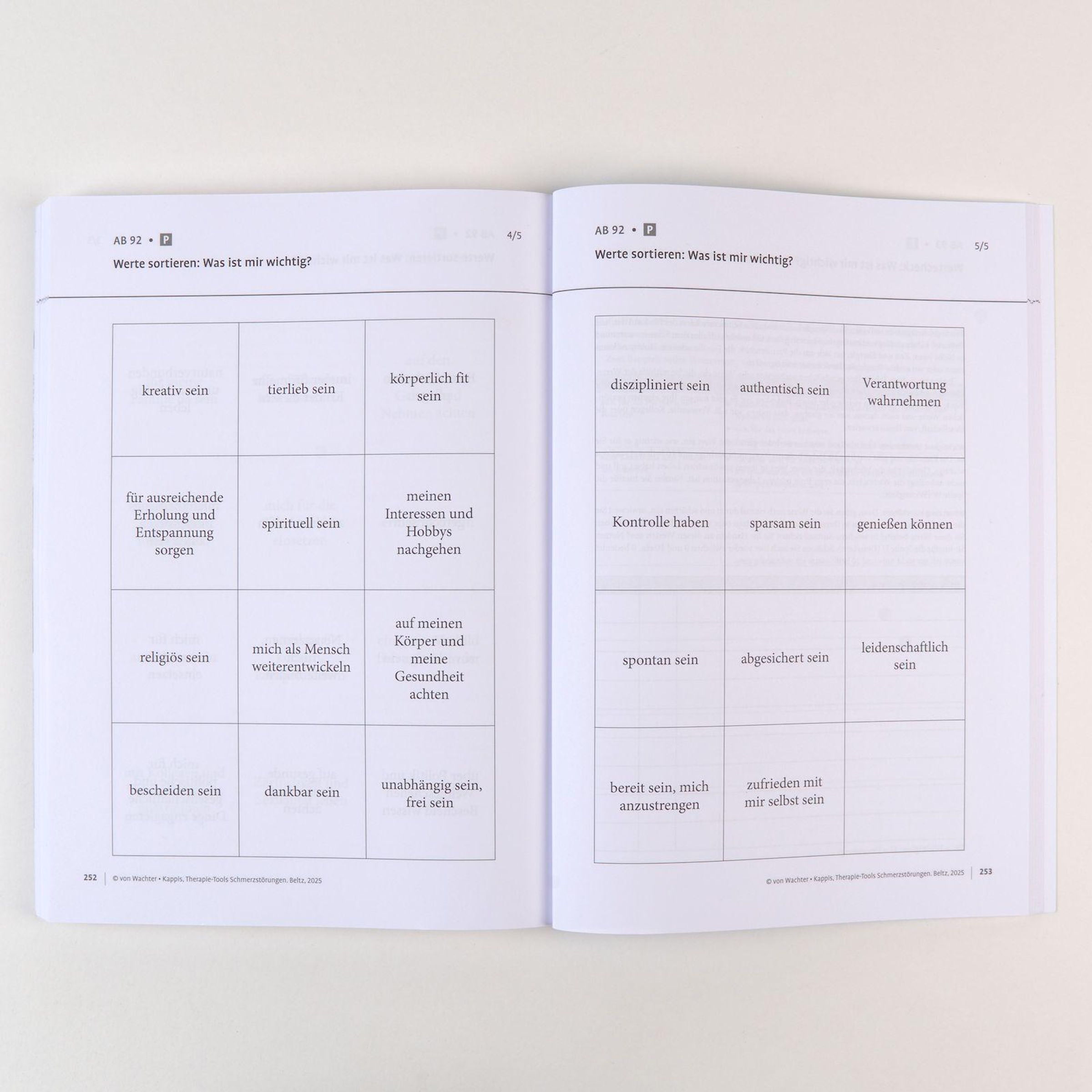 Zahlreiche Materialien, individuell einsetzbar Dieser Therapie-Tools-Band bietet einen großen Pool an Techniken, Übungen und Aufgaben, um auf die individuellen Bedürfnisse der Betroffenen eingehen zu können. Neben den klassischen psychoedukativen und verhaltenstherapeutischen Methoden sind auch Techniken aus der Dritten Welle der VT (z. B. ACT) sowie aus der tiefenpsychologischen Schmerzbehandlung eingebunden.