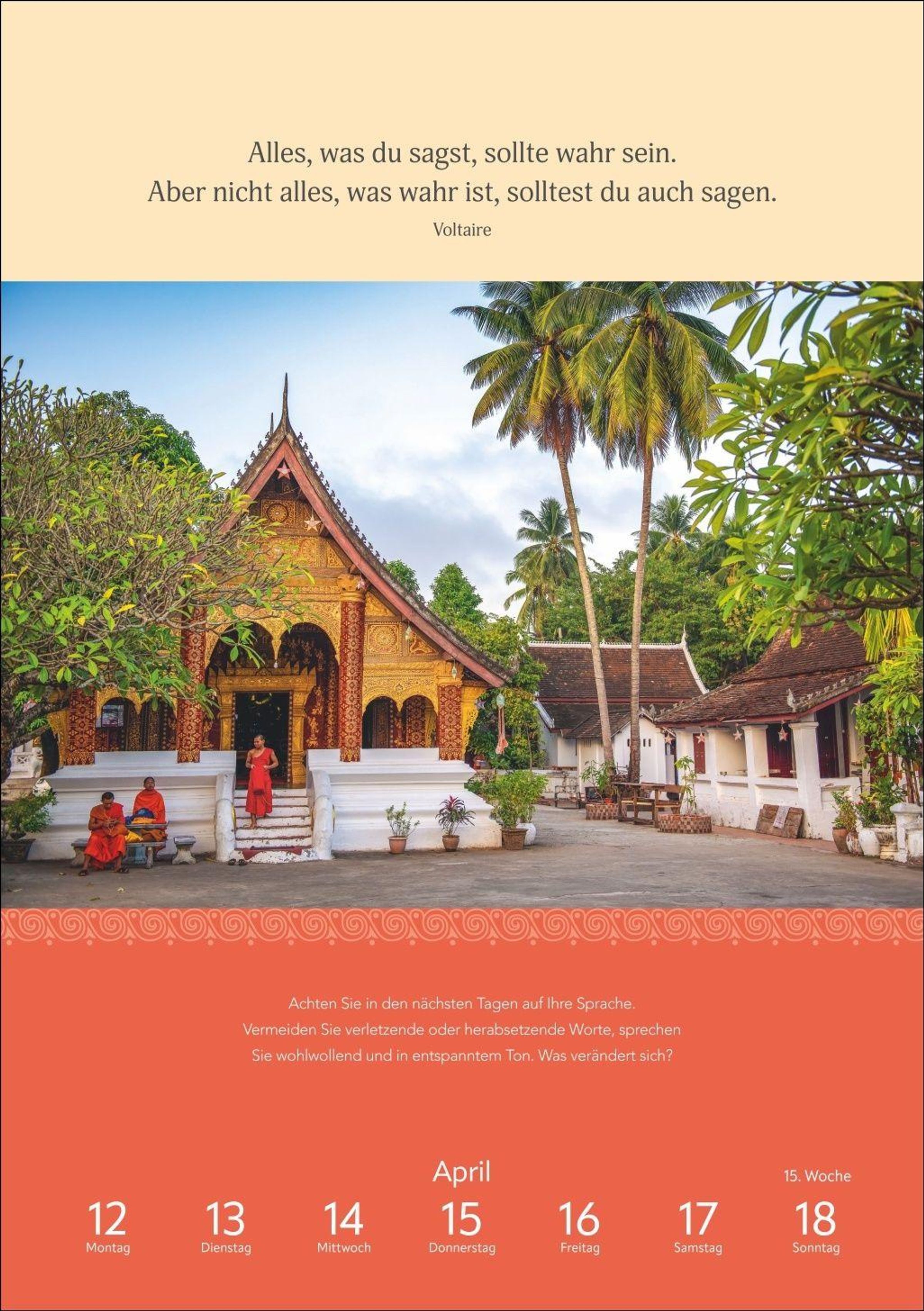 - Foto-Wandkalender mit buddhistischen Motiven und inspirierenden Zitaten. Bildkalender 2027 für Achtsamkeit im Alltag. 25 x 35,5 cm
