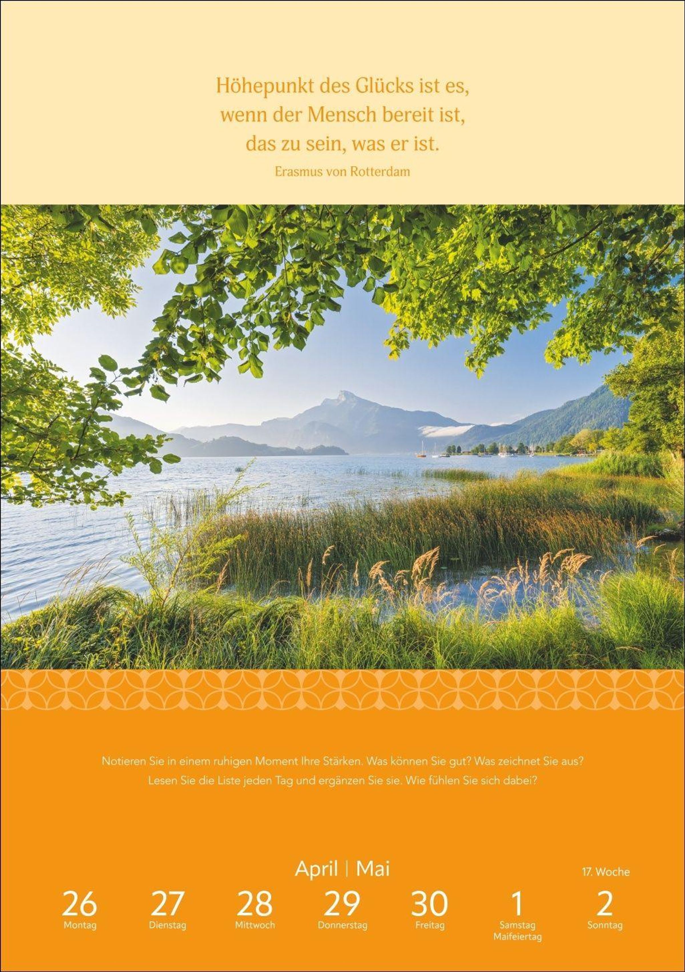 53 Anregungen für mehr Gelassenheit: Dieser Foto-Wandkalender vereint stärkende Zitate und Übungen mit schönen Aufnahmen
