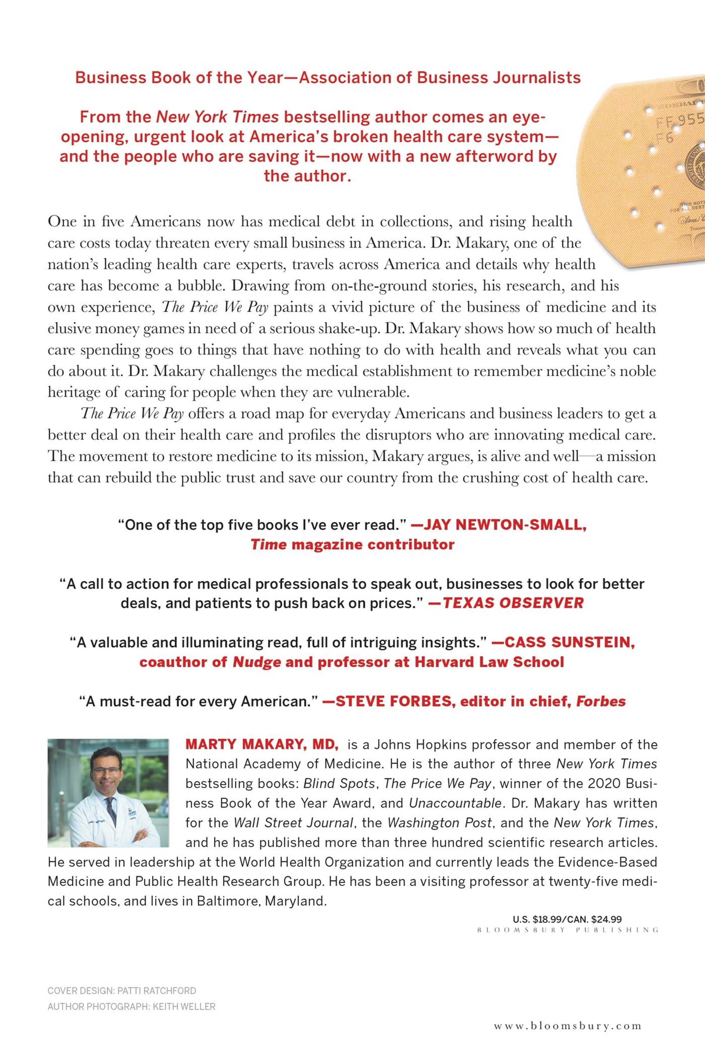 One in five Americans now has medical debt in collections and rising health care costs today threaten every small business in America. Dr. Makary, one of the nation's leading health care experts, travels across America and details why health care has become a bubble. Drawing from on-the-ground stories, his research, and his own experience, The Price We Pay paints a vivid picture of the business of medicine and its elusive money games in need of a serious shake-up. Dr. Makary shows how so much of health care spending goes to things that have nothing to do with health and what you can do about it. Dr. Makary challenges the medical establishment to remember medicine's noble heritage of caring for people when they are vulnerable.