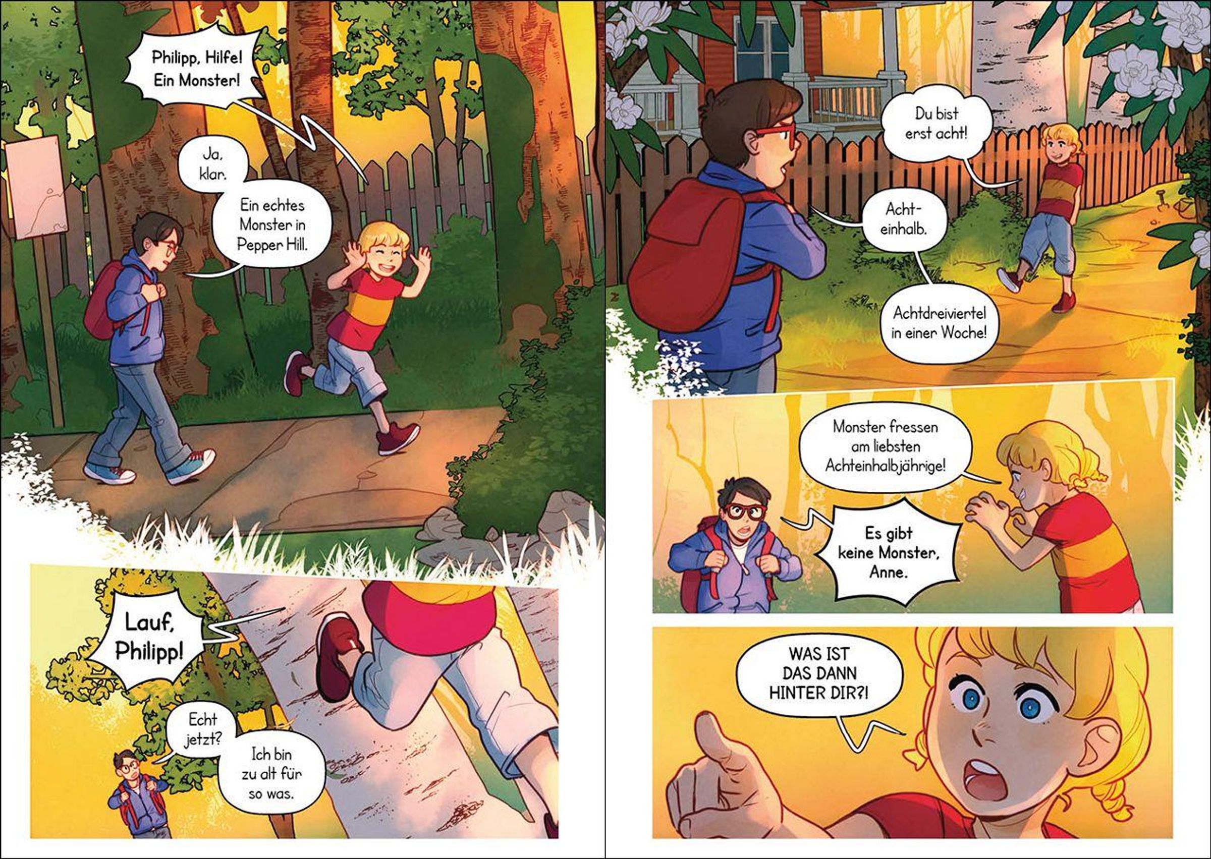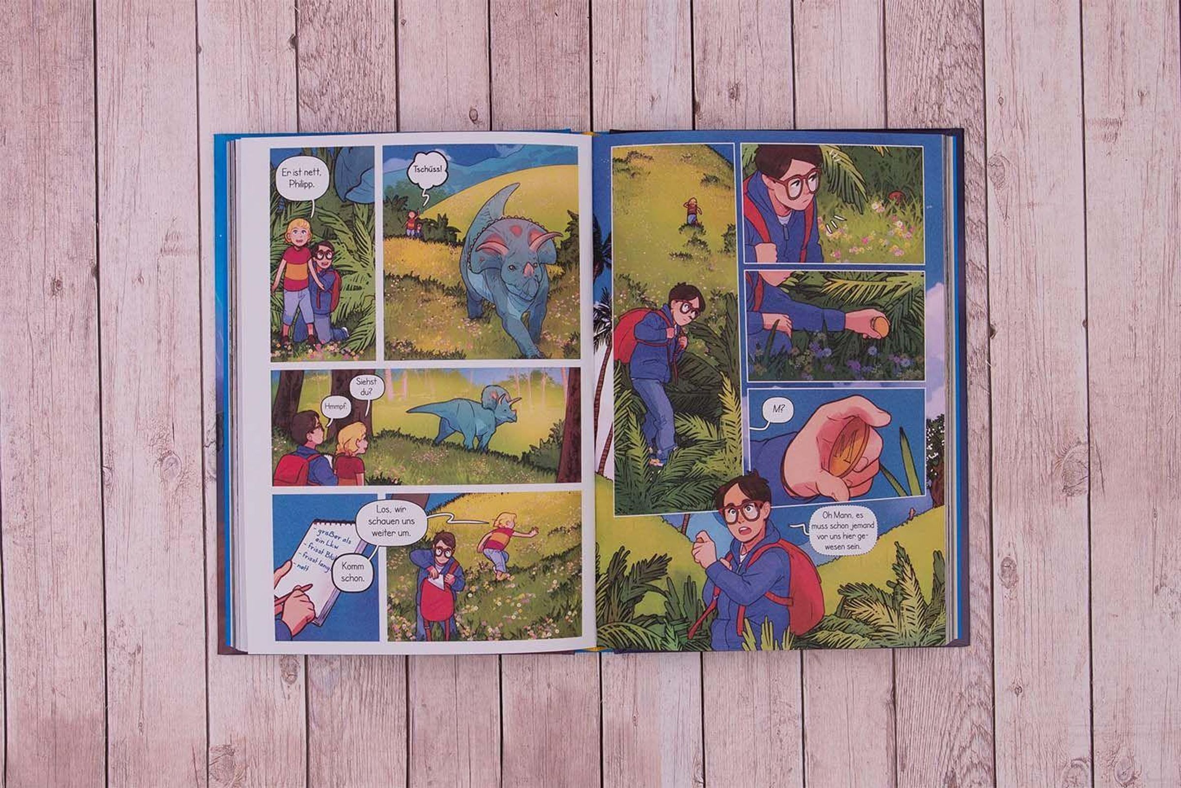 Die Bestseller-Reihe von Mary Pope Osborne jetzt auch als Comicbuch! Auf ins Abenteuer mit dem magischen Baumhaus! Ein Baumhaus? Mitten im Wald? Wie aufregend! Anne und Philipp klettern schnell die Strickleiter hinauf. Doch kaum sind sie oben, fängt das Baumhaus an sich zu drehen - schneller und immer schneller! Und plötzlich sind Anne und Philipp bei den Dinosauriern gelandet ...