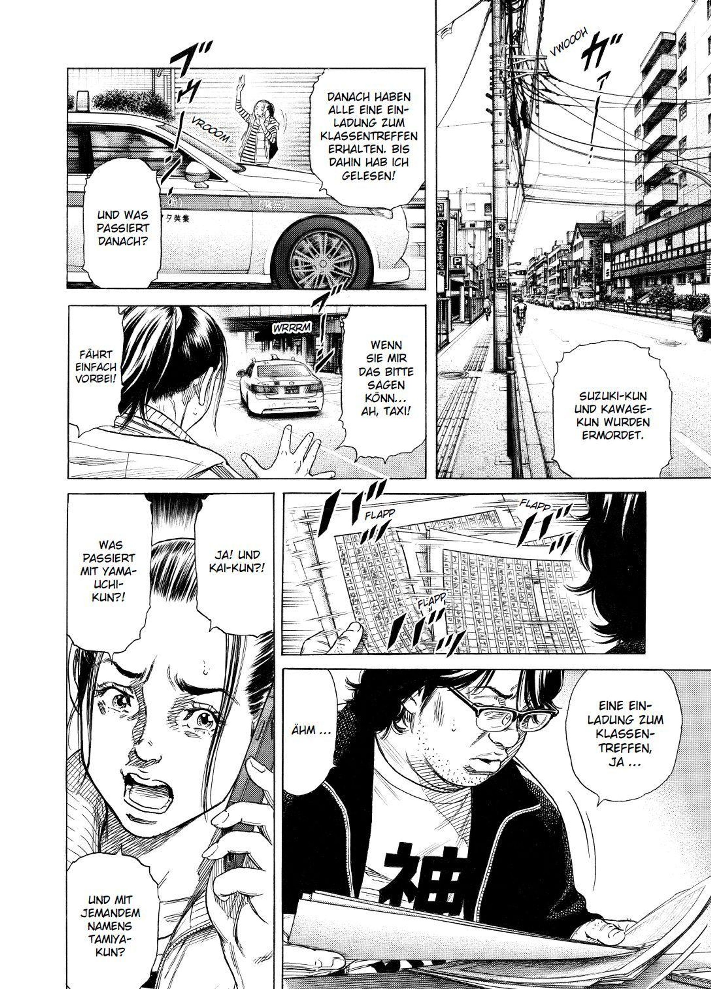 Das erwartet dich in Band 3: Mittelschullehrer Kai Yamauchi wird von den unbegreiflichen Morden an seinen alten Freunden erschüttert. Allen Opfern ist gemein, dass sie einst Haruto Saeki gemobbt haben. Wirklich mysteriös ist allerdings, dass die Art und Weise, wie die Taten begangen wurden, beinahe eins zu eins den Beschreibungen eines Romanmanuskripts namens "Zashisu" gleicht. Yamauchis Freundin, Tamao Yagisawa, macht sich indes auf den Weg zu Schriftsteller Motoyashiki, um den Fortgang des Romans in Erfahrung zu bringen und so vielleicht noch weitere Morde verhindern zu können. Inmitten dieser Ereignisse versammeln sich die ehemaligen Klassenkameraden zu einem Klassentreffen und werden Zeugen erschreckender Aufnahmen ...!!