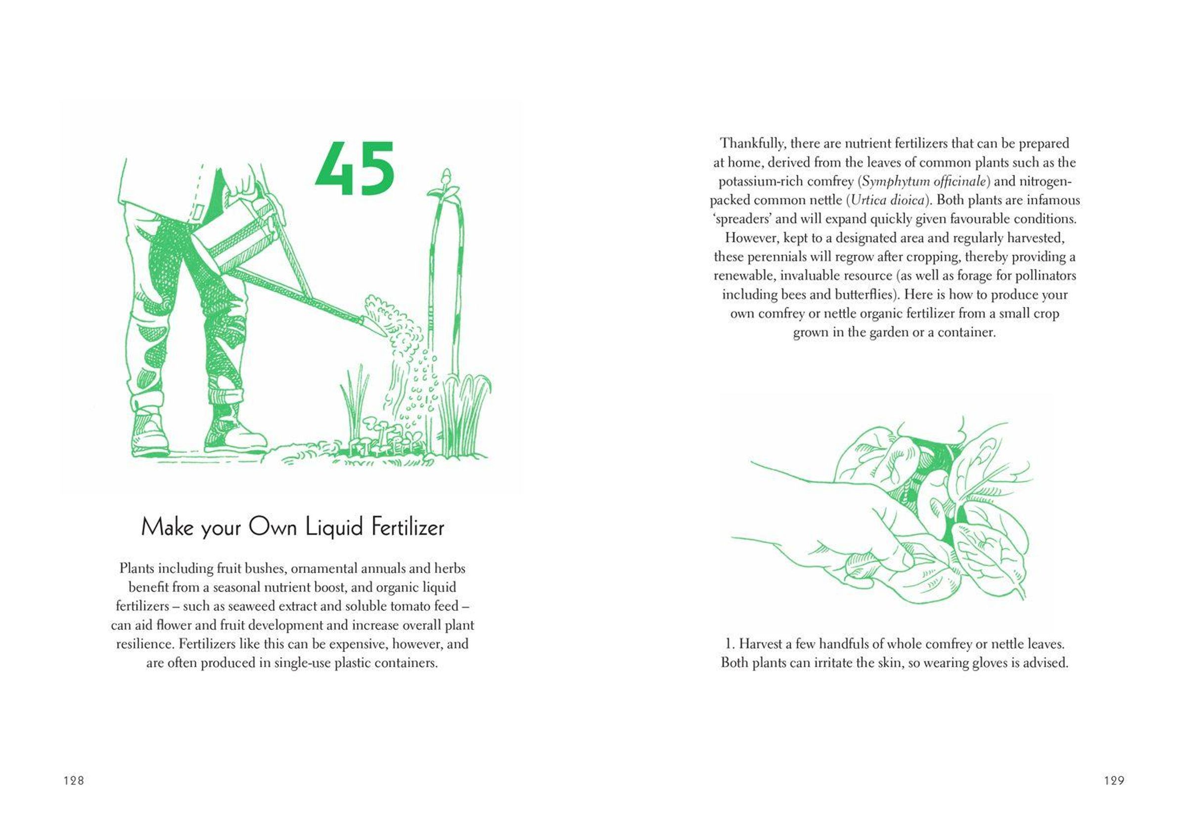 - SUSTAINABILITY: Add mulch, make a water butt, harvest and collect seeds, make your own fertilizer, make a compost bin, make leaf mould, sow green manure