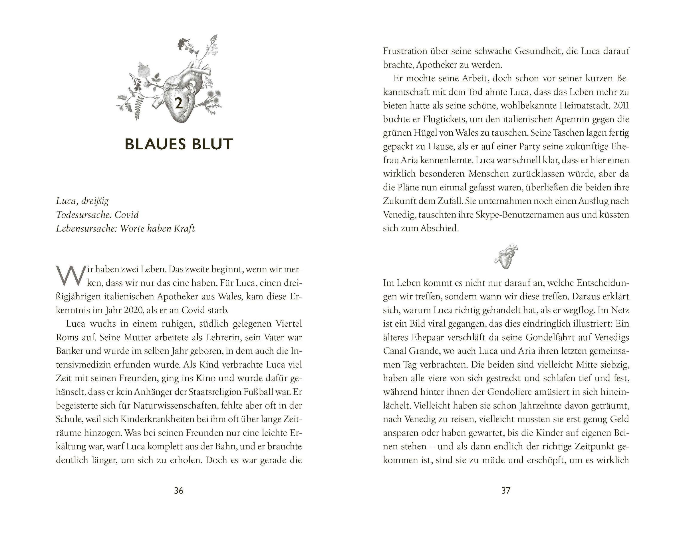 Wir lernen eine junge Frau kennen, die ihr Herz in einem Glas betrachten kann, treffen einen Fischer, der mit den Fischen schlief, und einen Apotheker, dem keine Medikamente mehr helfen konnten. Ihnen allen gemein: **Ihre außergewöhnliche Erfahrung hat ihr Leben von Grund auf verändert,**um nicht zu sagen, bereichert.