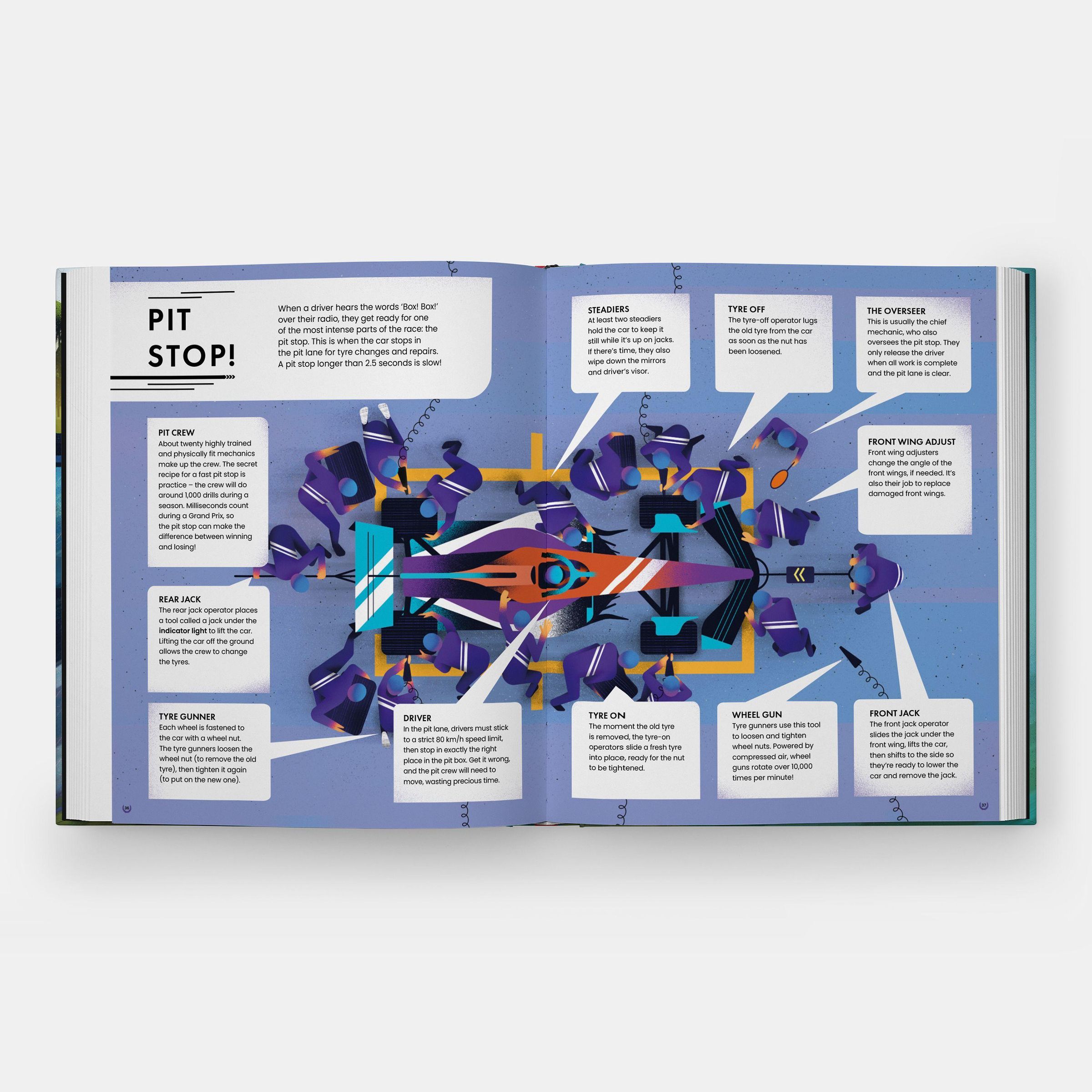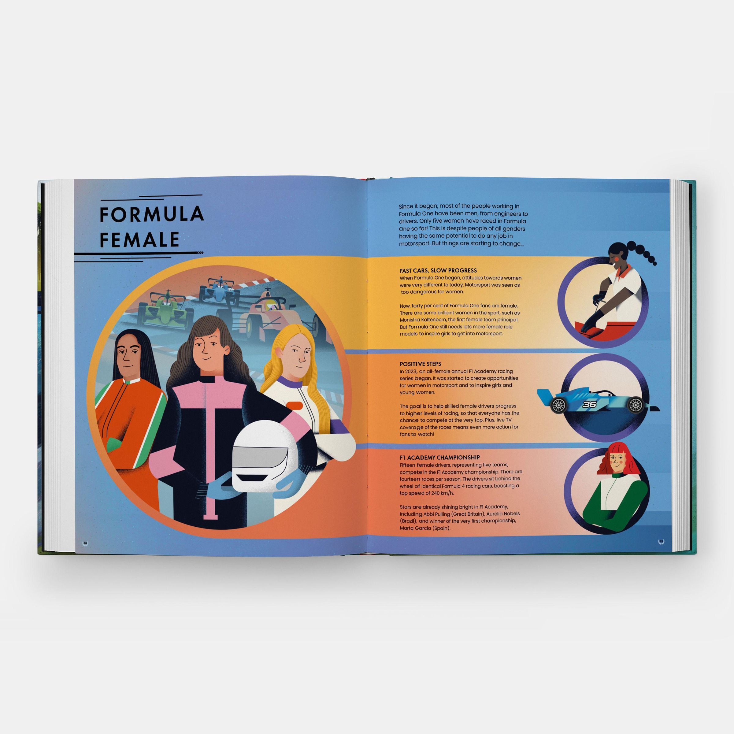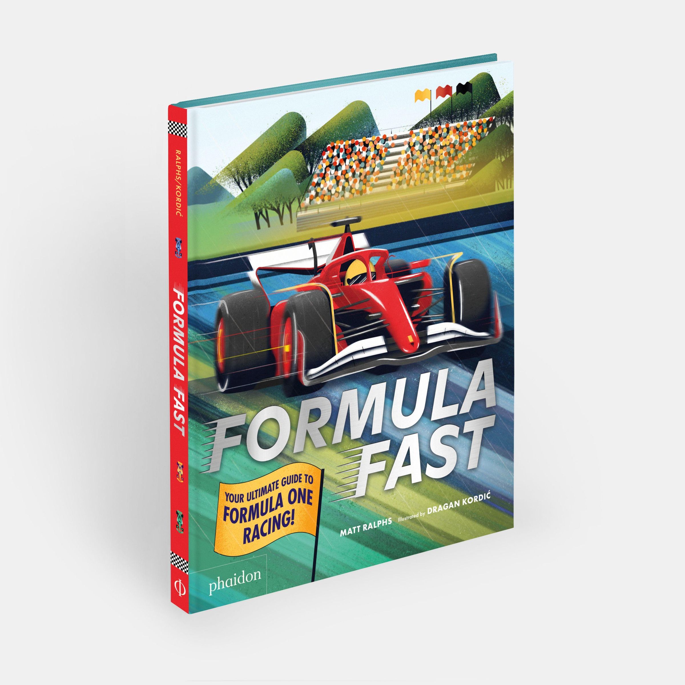 "FORMULA FAST" - Illustration eines roten Formel-1-Autos auf der Rennstrecke, im Hintergrund eine jubelnde Menge., Buch