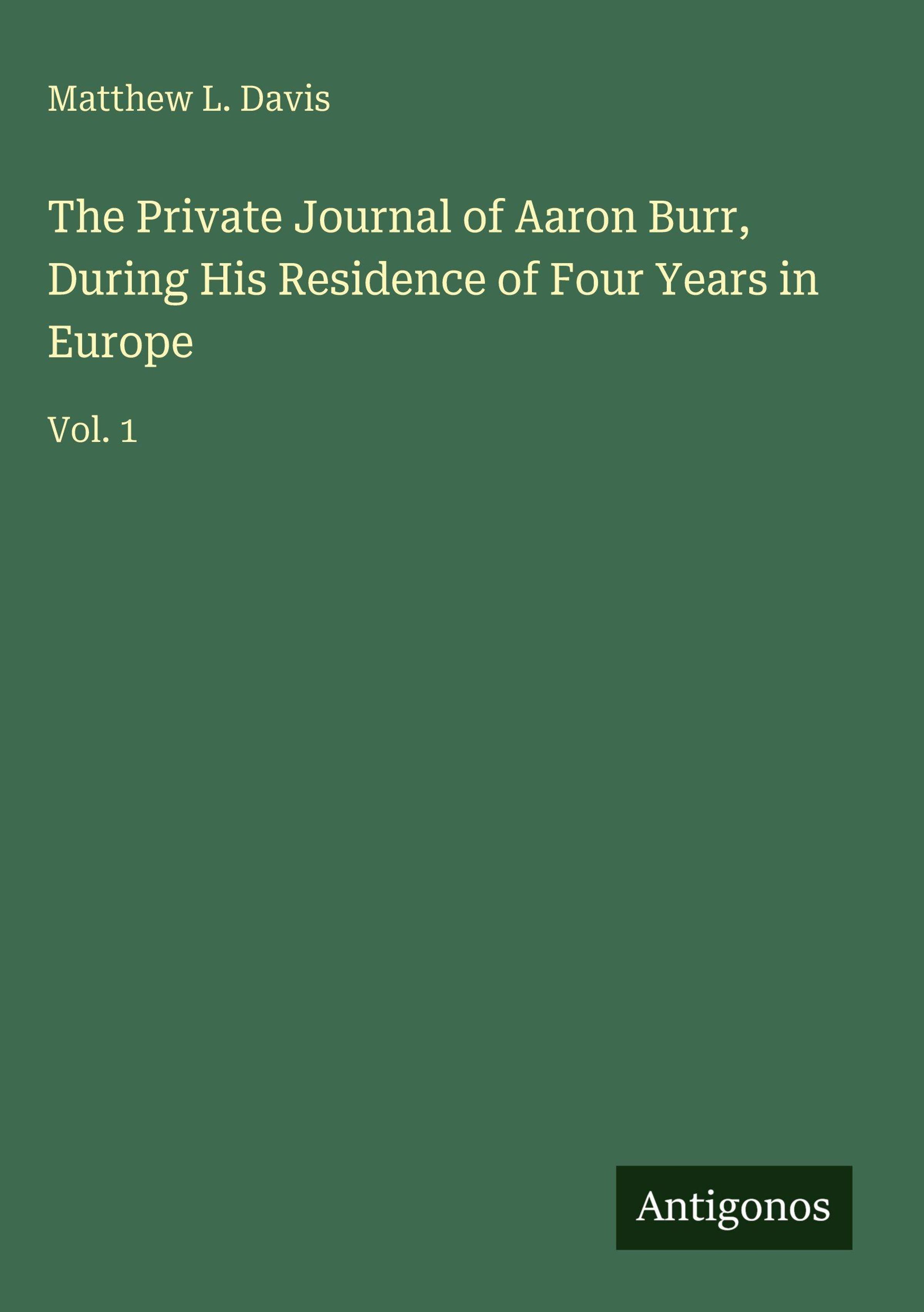 Matthew L. Davis: The Private Journal of Aaron Burr, During His Residence of Four Years in Europe, Gebunden