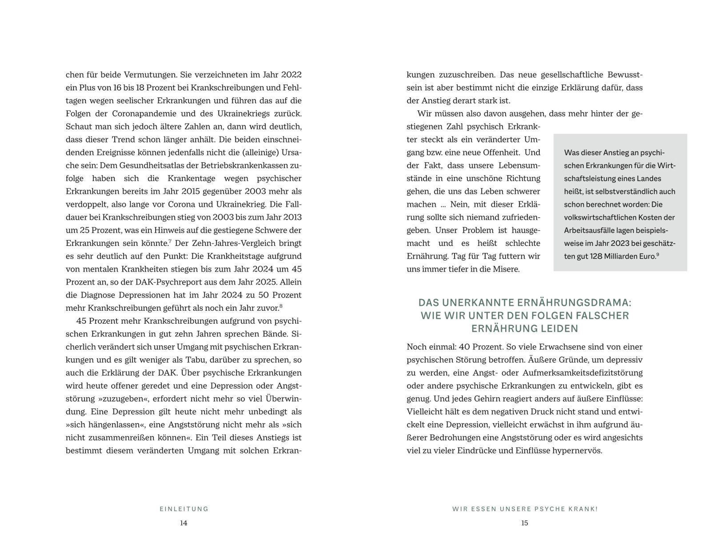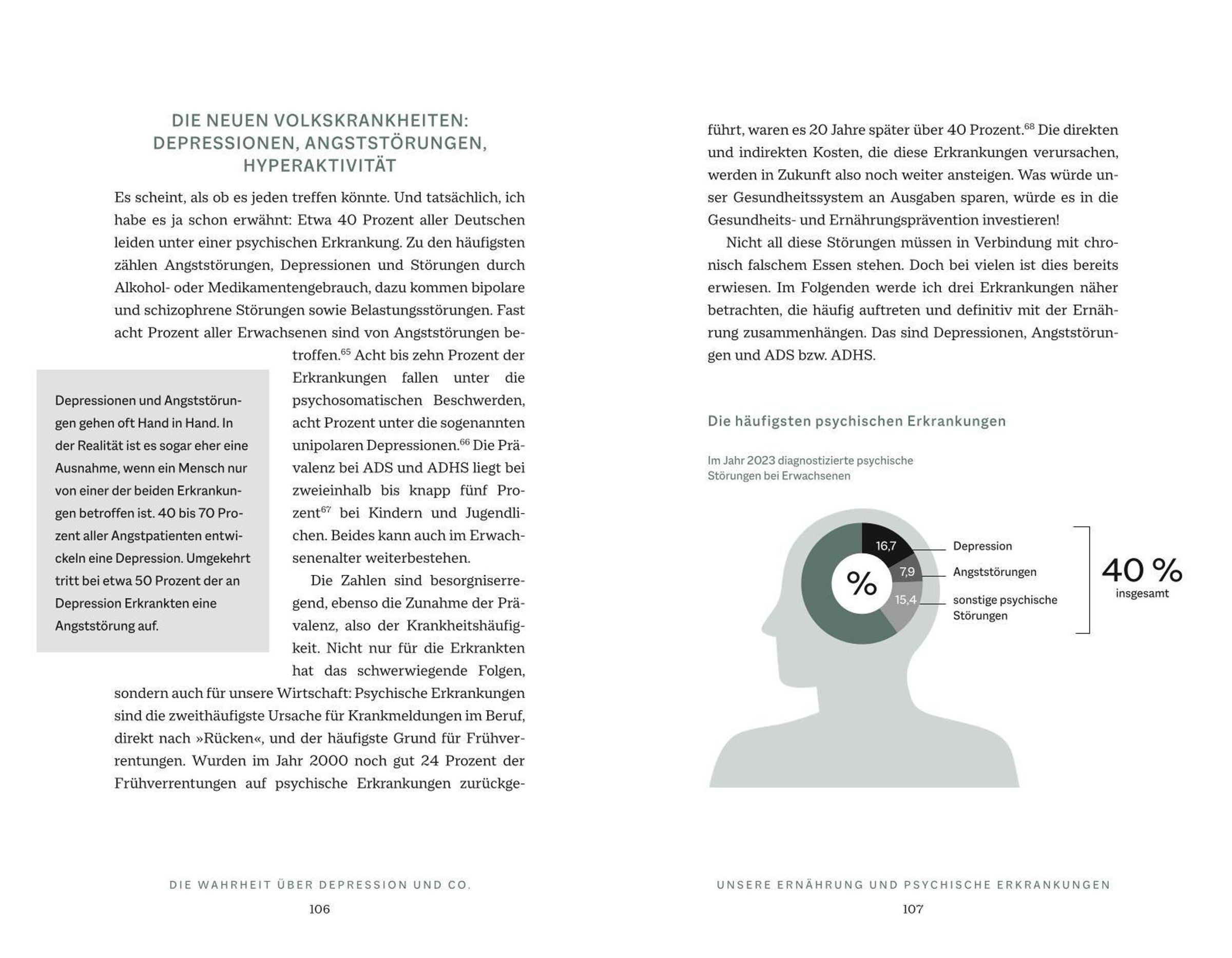Angst auf dem Teller, Depression auf der Gabel? Was wie ein Albtraum klingt, ist bittere Realität: Falsche einseitige Ernährung erhöht das Risiko für Depressionen, Angststörungen und ADHS dramatisch. Doch es gibt Hoffnung: Ernährungs-Doc Dr. Matthias Riedl zeigt, wie wir mit den richtigen Essensentscheidungen unsere Psyche wirksam schützen können - und zugleich der gesellschaftlichen Mental-Health-Misere entkommen. Basierend auf neuesten Studien und der Arbeit mit Tausenden Patienten enthüllt er, warum Nutella, Pizza und Co. uns immer nervöser, trauriger und erschöpfter werden lassen und auf welche Lebensmittel es wirklich ankommt wie z. B. Haferflocken, Brokkoli und Kurkuma. Denn ab sofort gilt: Darm gesund, Psyche gesund!