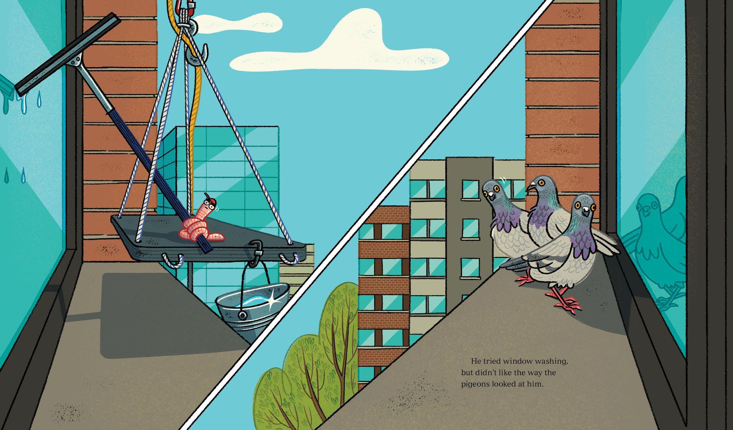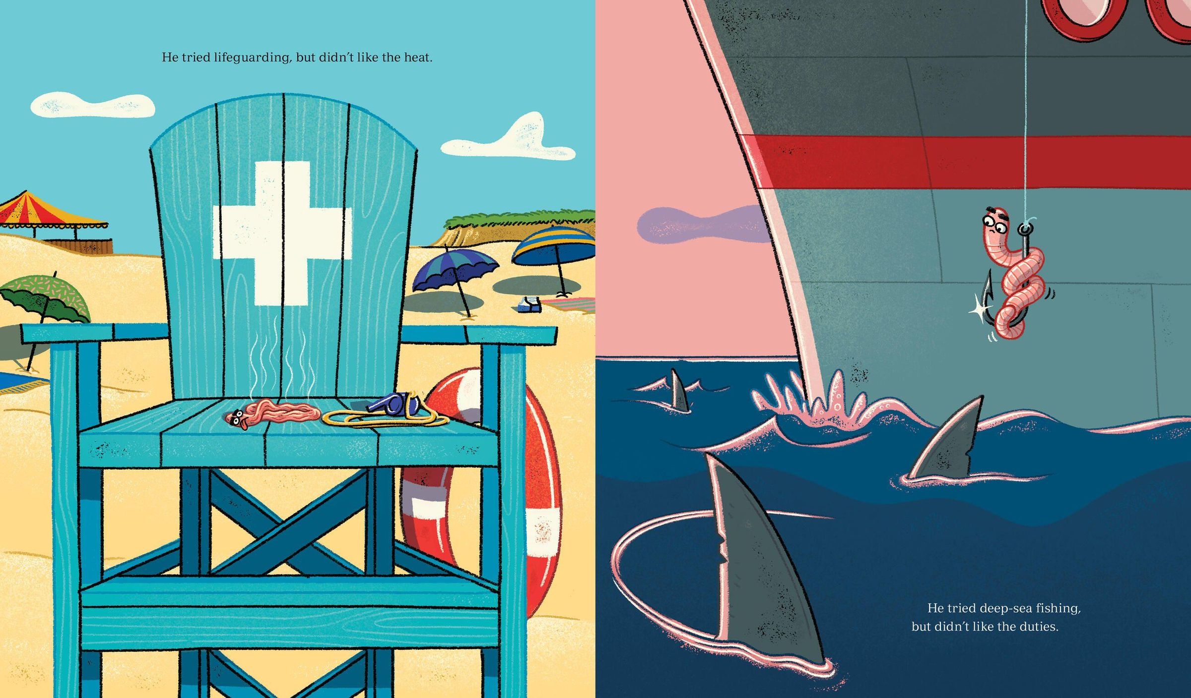 Worm loves being a librarian but has decided it's time for a new job. He considers many options - lifeguard, deep-sea fisherman, window washer - but none of them quite fits his, um, skill set. Until he comes across a posting looking for a courageous security guard to keep a thief from stealing the Invention Convention's exhibits during the night. It sounds like the perfect job for him! Unfortunately, the hiring manager doesn't agree. Worm is too small! Also, he's a worm. Can Worm convince the manager he's got what it takes? And, if he does get hired, will he really be able to capture the dastardly thief?