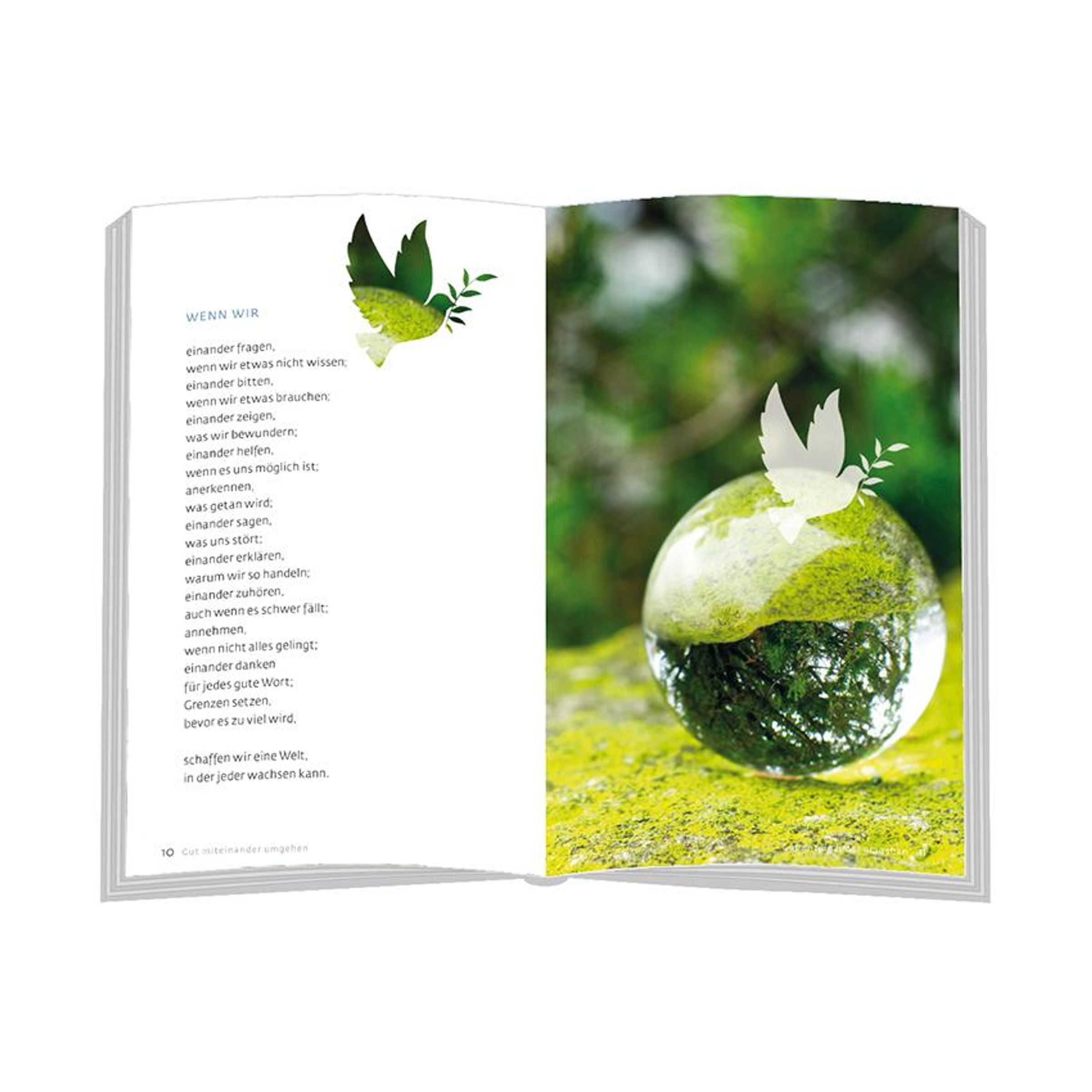 Frieden beginnt in einem selbst. Wer inneren Frieden spürt, der kann ihn nach außen tragen. Mit Respekt, Toleranz und gegenseitigem Verstehen. Manchmal braucht Frieden Mut. Mut, die Hand auszustrecken, Schritte aufeinander zuzugehen, um wieder Versöhnung zu finden. Frieden beginnt im Kleinen und kann Großes bewirken.