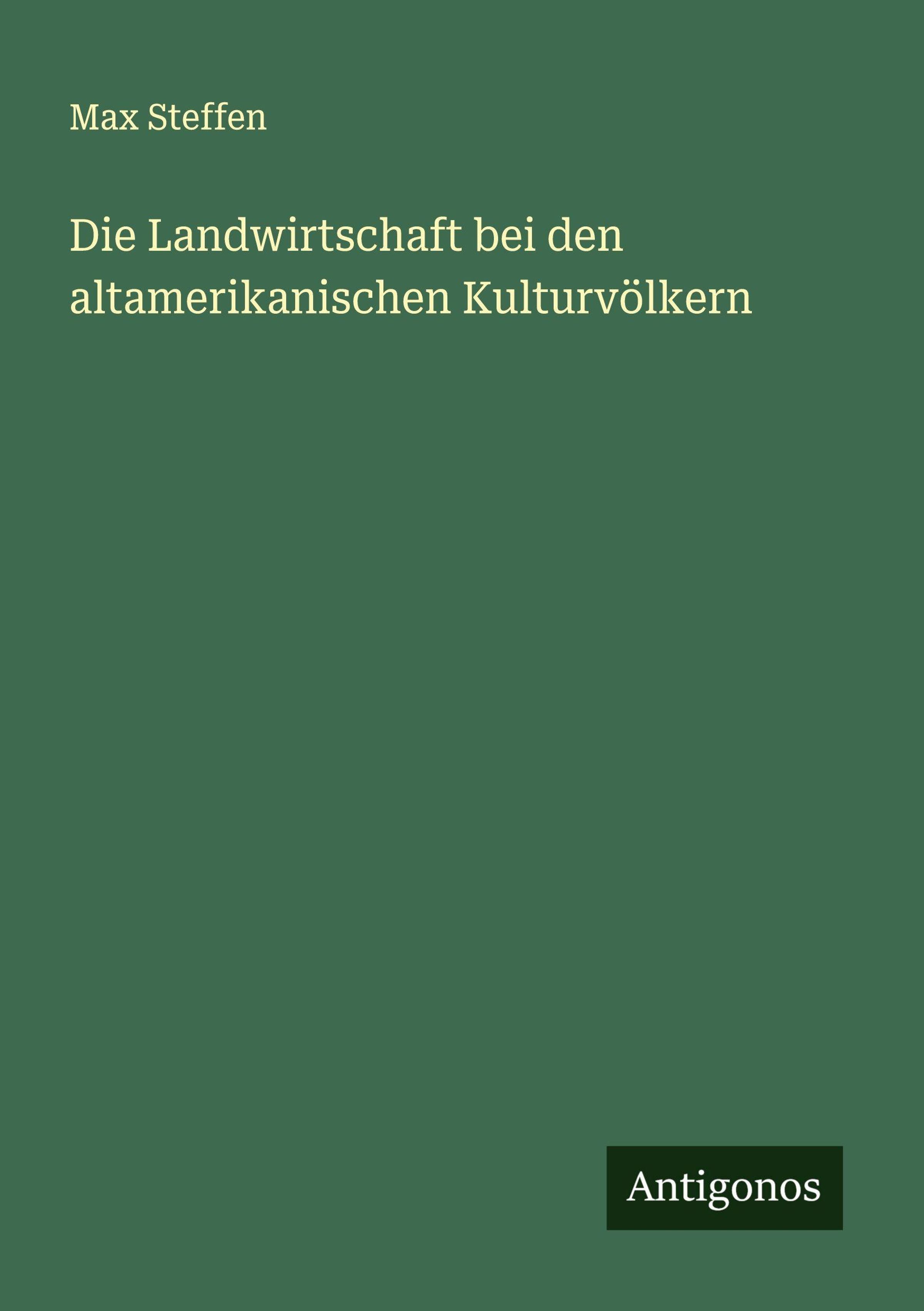 Max Steffen: Die Landwirtschaft bei den altamerikanischen Kulturvölkern, Kartoniert / Broschiert