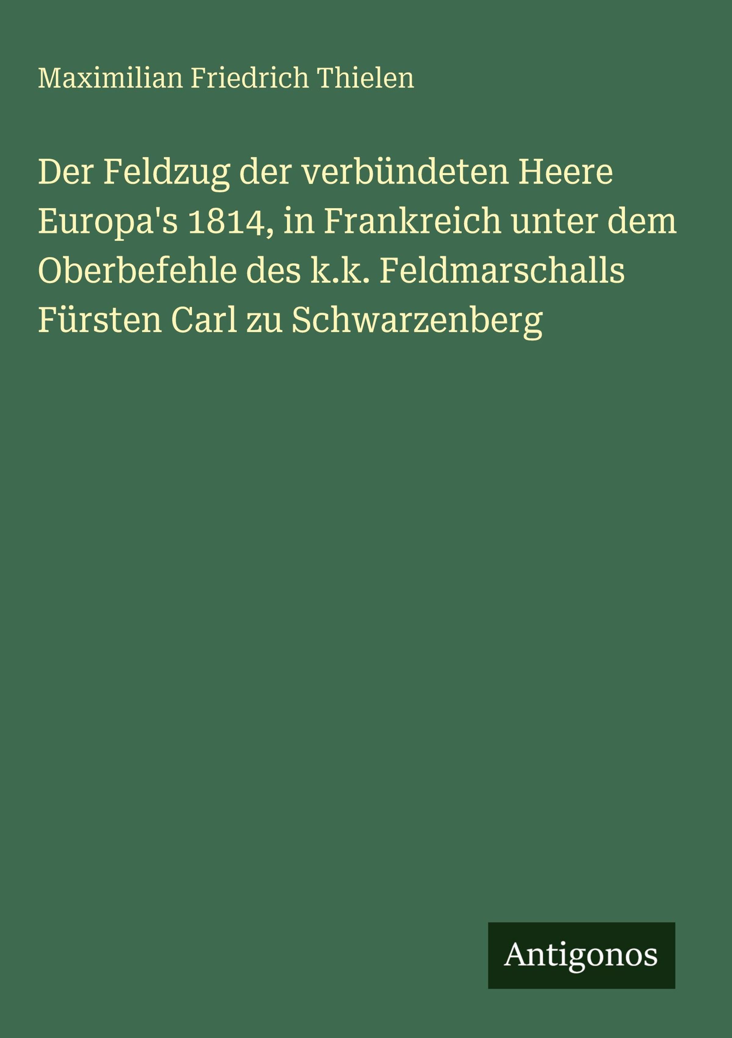 Der Artikel Maximilian Friedrich Thielen: Der Feldzug der verbündeten Heere Europa's 1814, in Frankreich unter dem Oberbefehle des k.k. Feldmarschalls Fürsten Carl zu Schwarzenberg wurde in den Warenkorb gelegt.