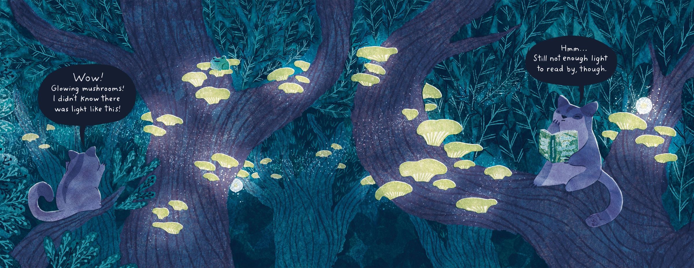 In this charming picture book, a determined flying forest creature looks for light and discovers the glow of its bioluminescent neighbors.