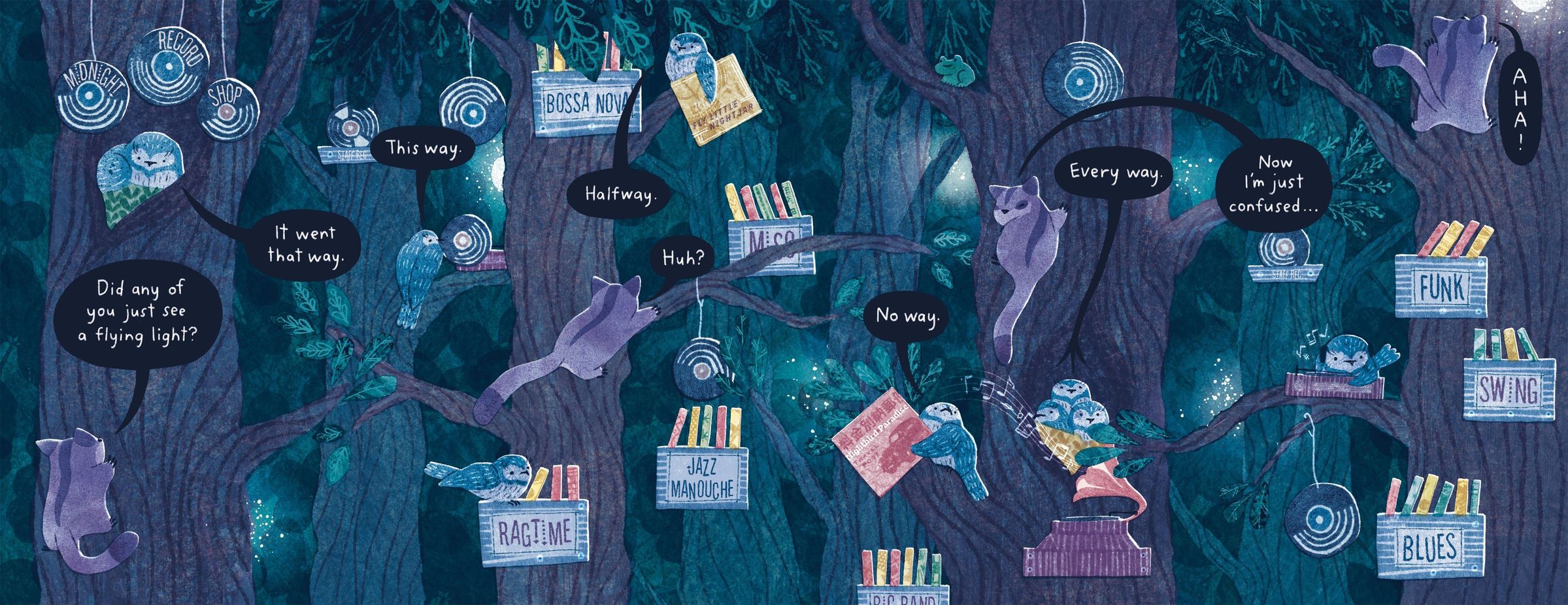 As they chase Moon through the trees and behind the clouds, it seems the forest is full of other bright things-just not the moonlight Sugar Glider loves...