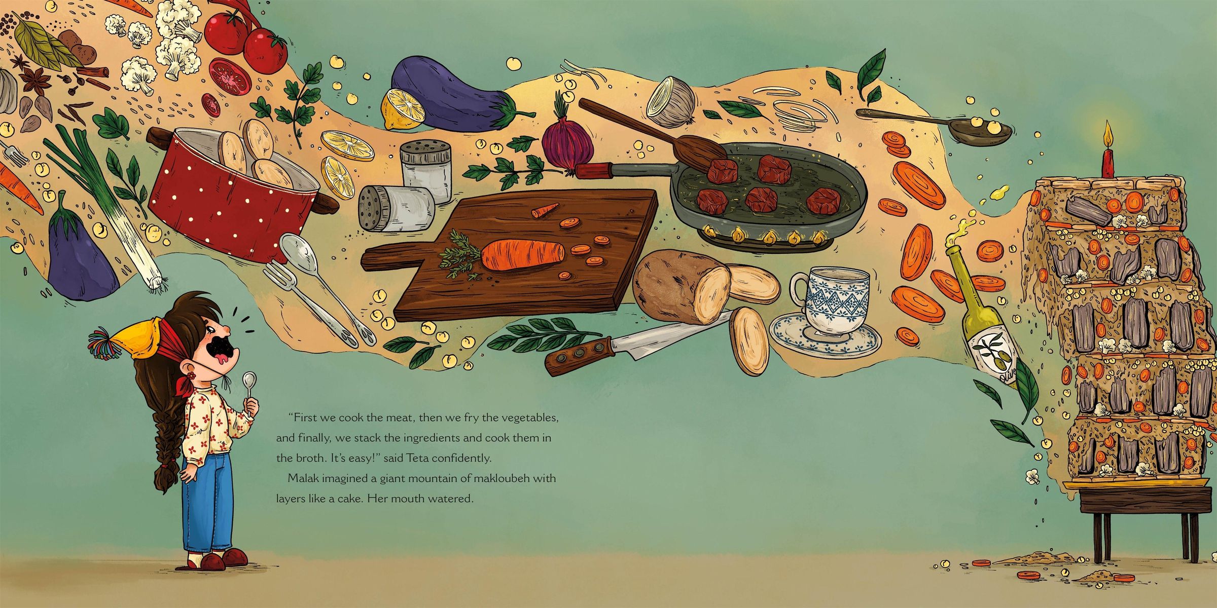 Malak can't wait to help her grandmother make iftar for their family. But when they decide to make makloubeh, everyone has a favorite ingredient to add, and Malak isn't sure how they'll fit it all in! This iftar is sure to be one to remember!