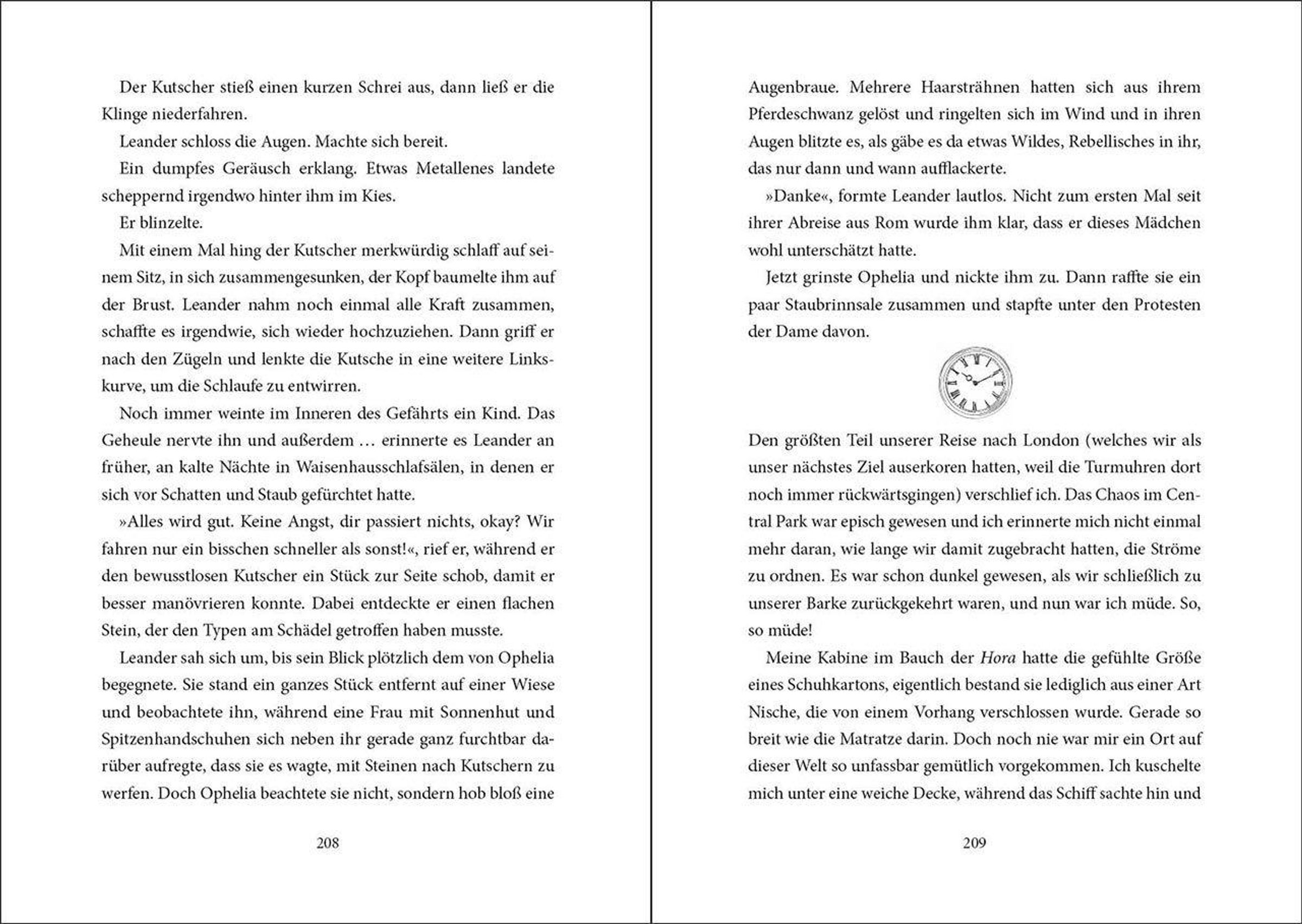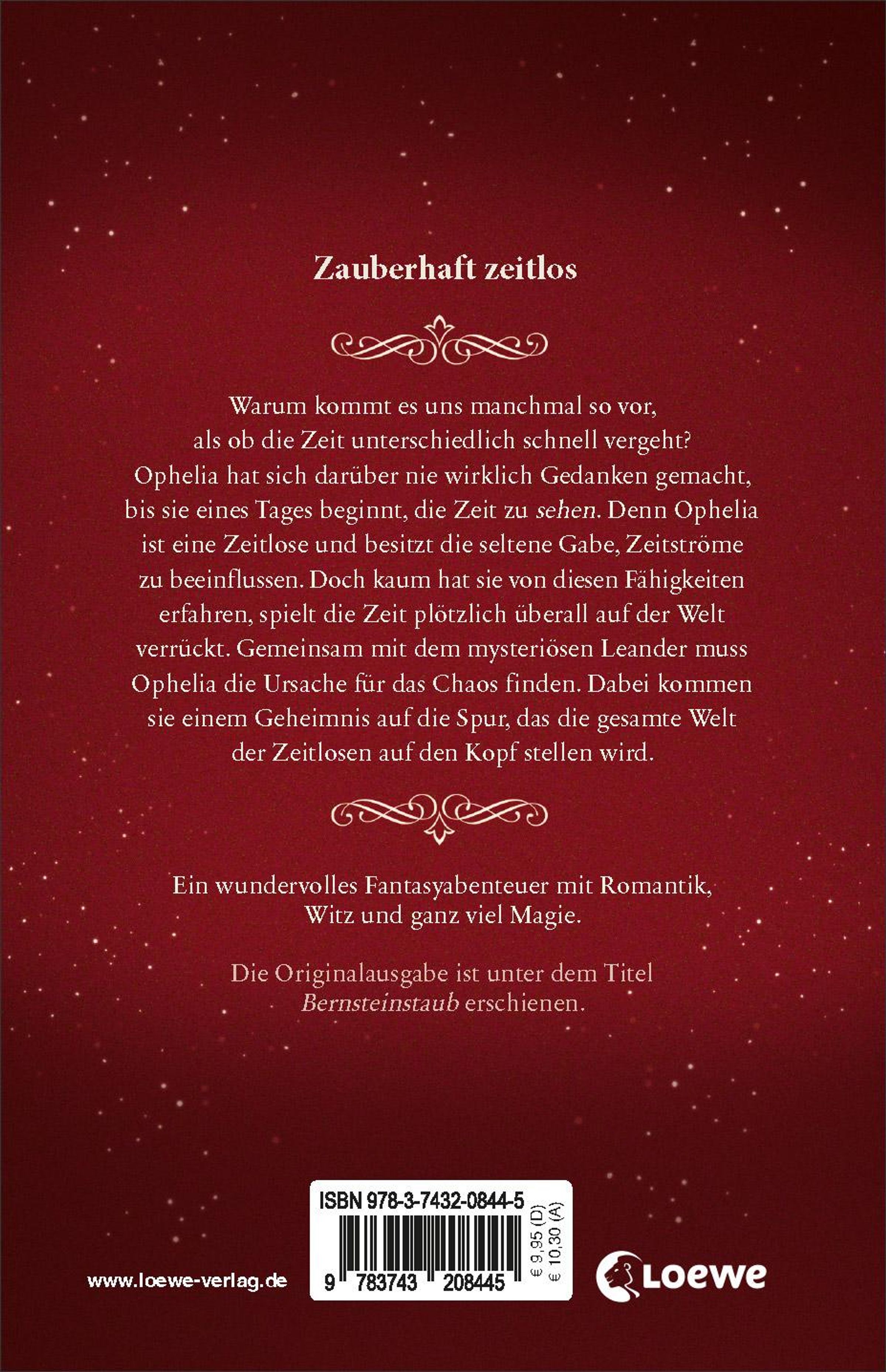 Ophelia hat sich darüber nie wirklich Gedanken gemacht, bis sie eines Tages beginnt, die Zeit zu sehen. Denn Ophelia ist eine Zeitlose und besitzt die seltene Gabe, die Zeitströme zu beeinflussen. Doch kaum hat sie von diesen Fähigkeiten erfahren, spielt die Zeit plötzlich überall auf der Welt verrückt. Gemeinsam mit dem mysteriösen Leander muss Ophelia die Ursache für das Zeitchaos finden. Dabei kommen sie einem Geheimnis auf die Spur, das die gesamte Welt der Zeitlosen auf den Kopf stellen wird.