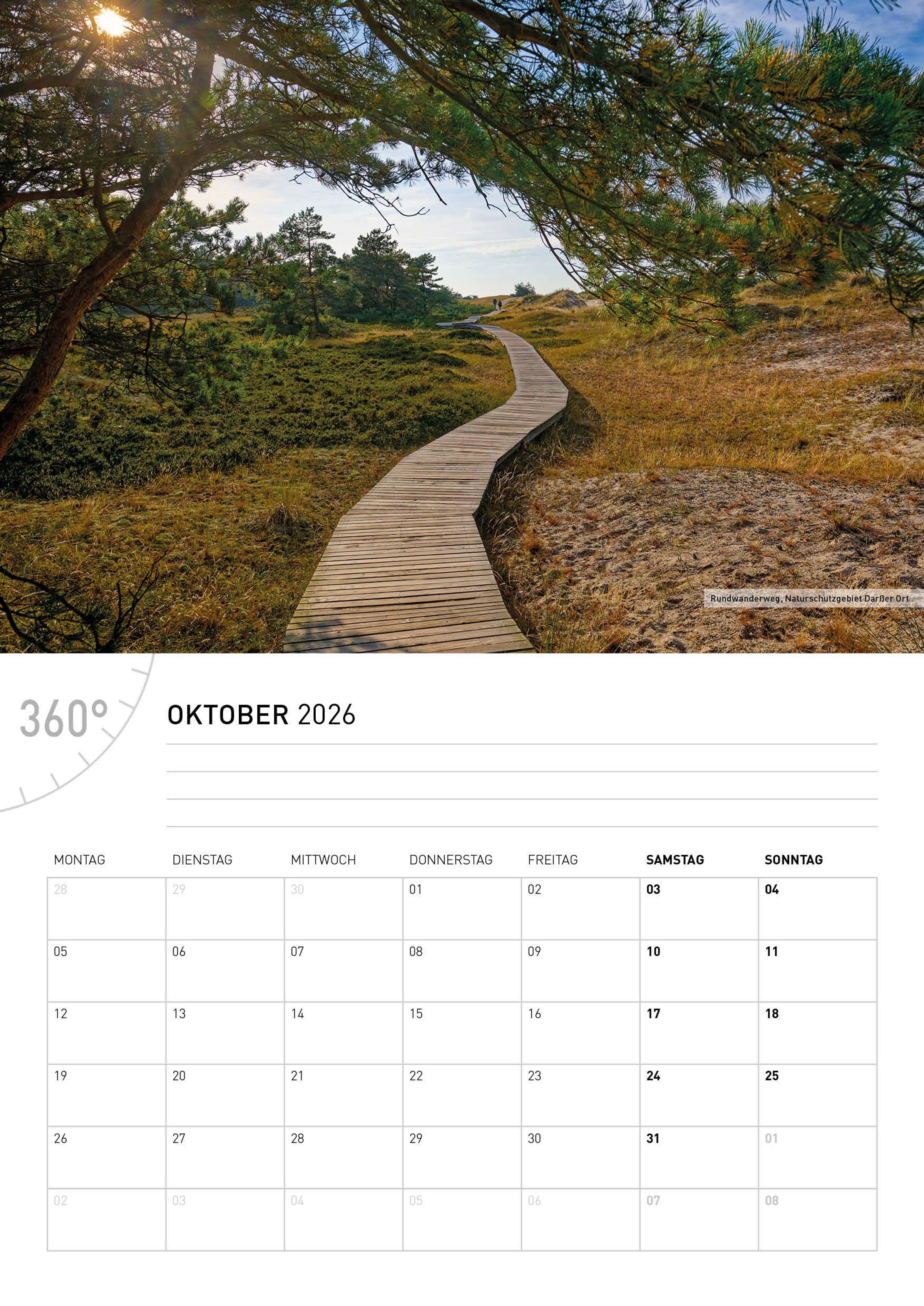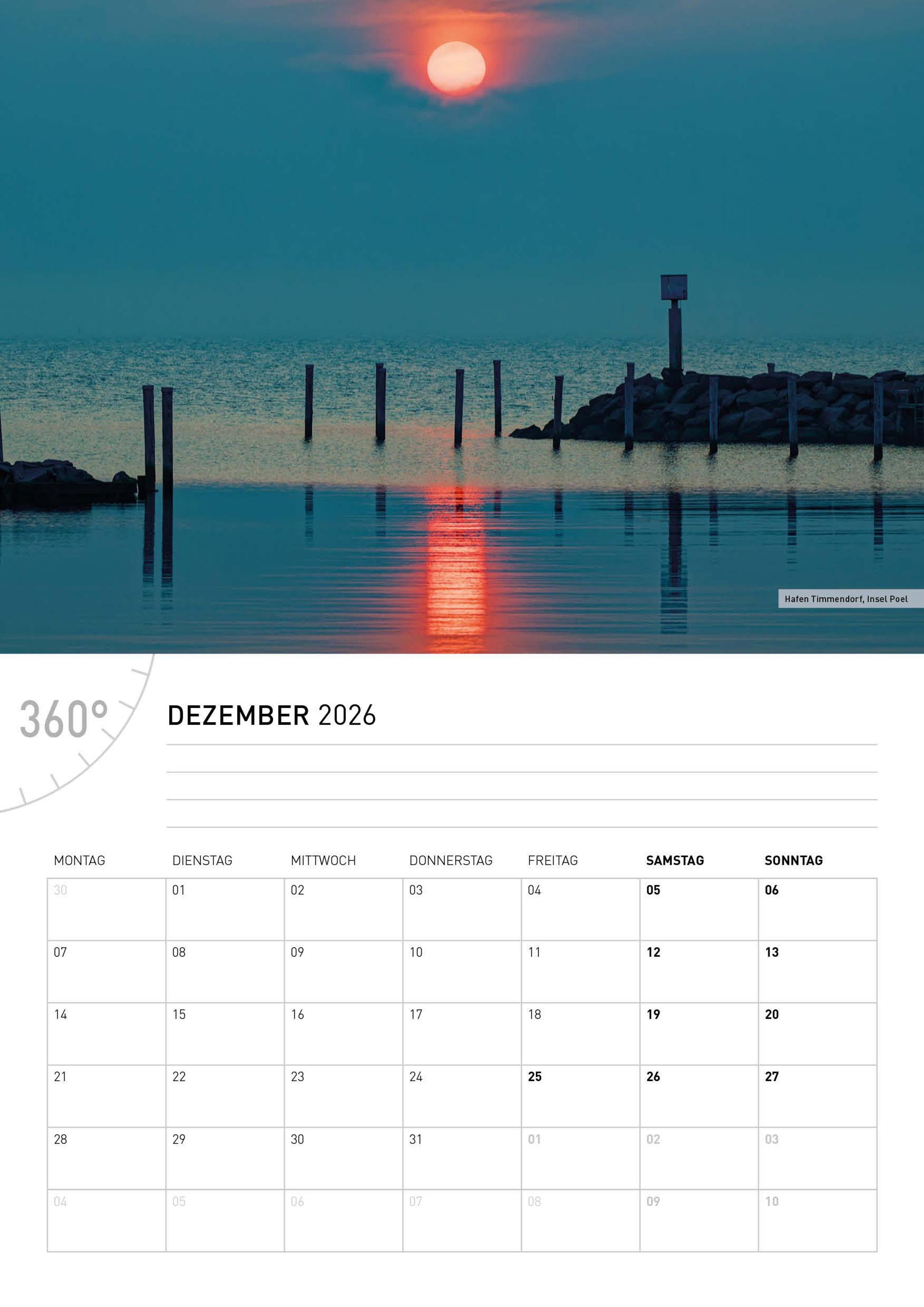 Der Mecklenburger Bucht Broschürenkalender 2026 erscheint im kompakten A4 Format (29, 7 x 21 cm). Auf hochwertigem Papier präsentiert er traumhafte Bilder. Aufgeklappt auf A3 Format (29, 7 x 42 cm) bietet er im Kalendarium Platz für Termine und Notizen.