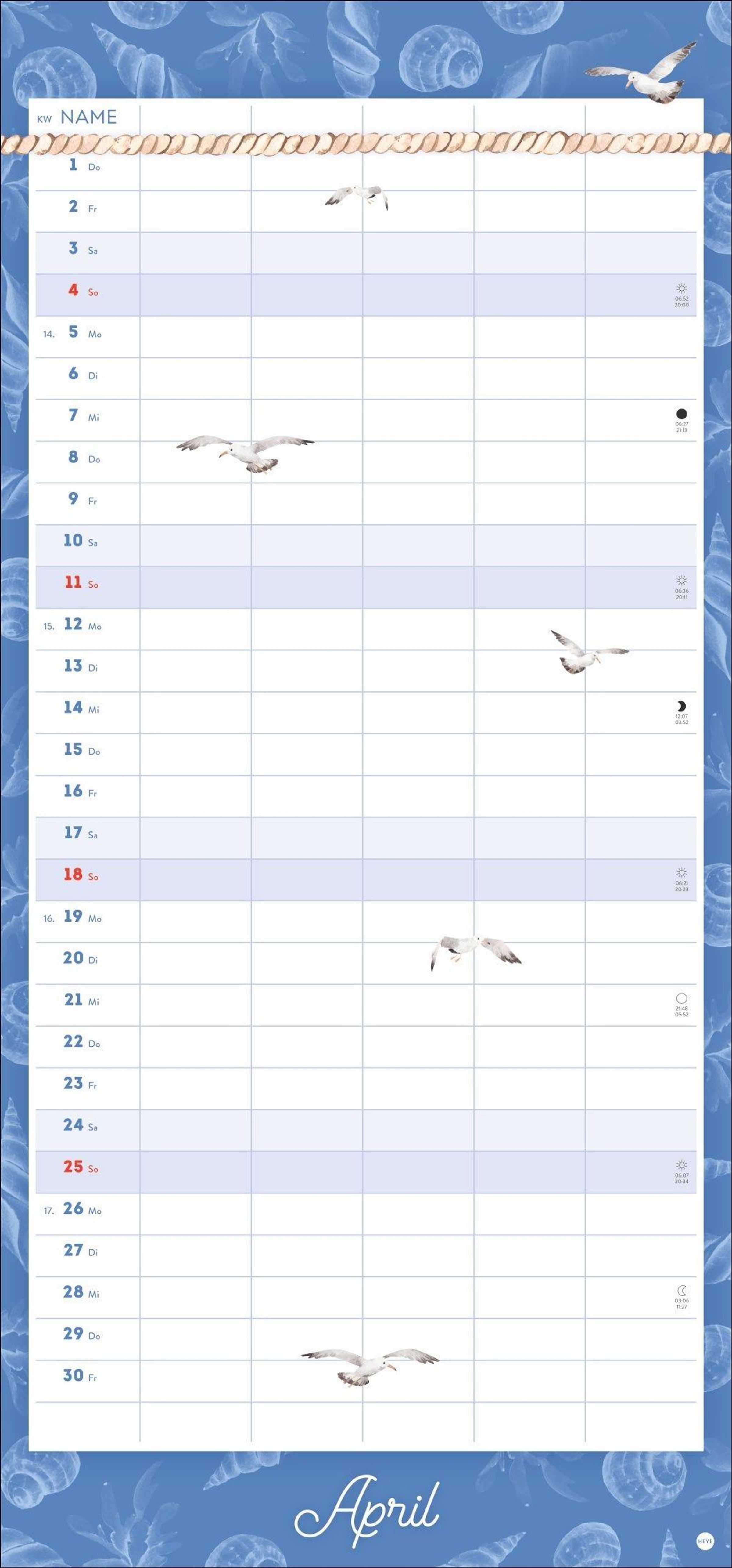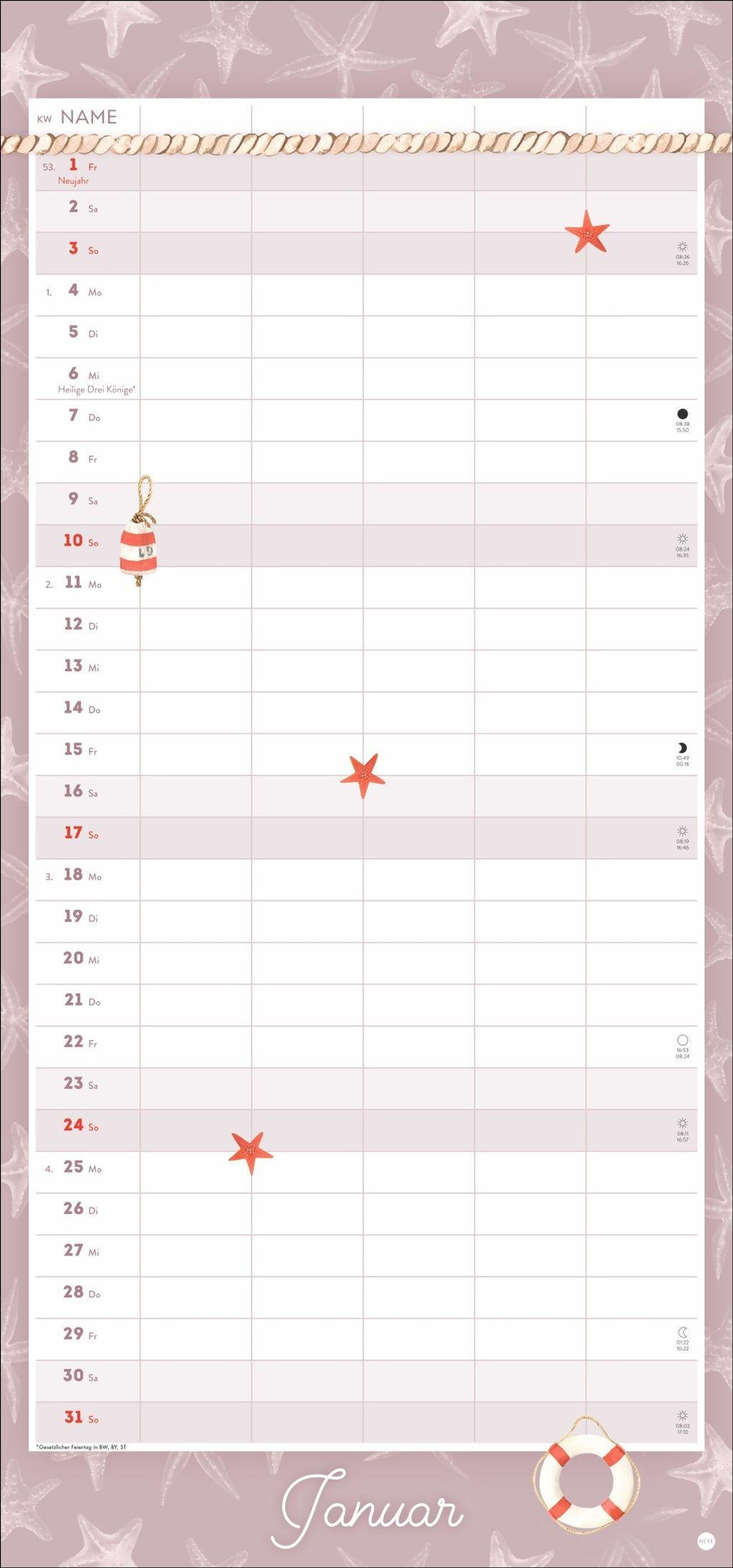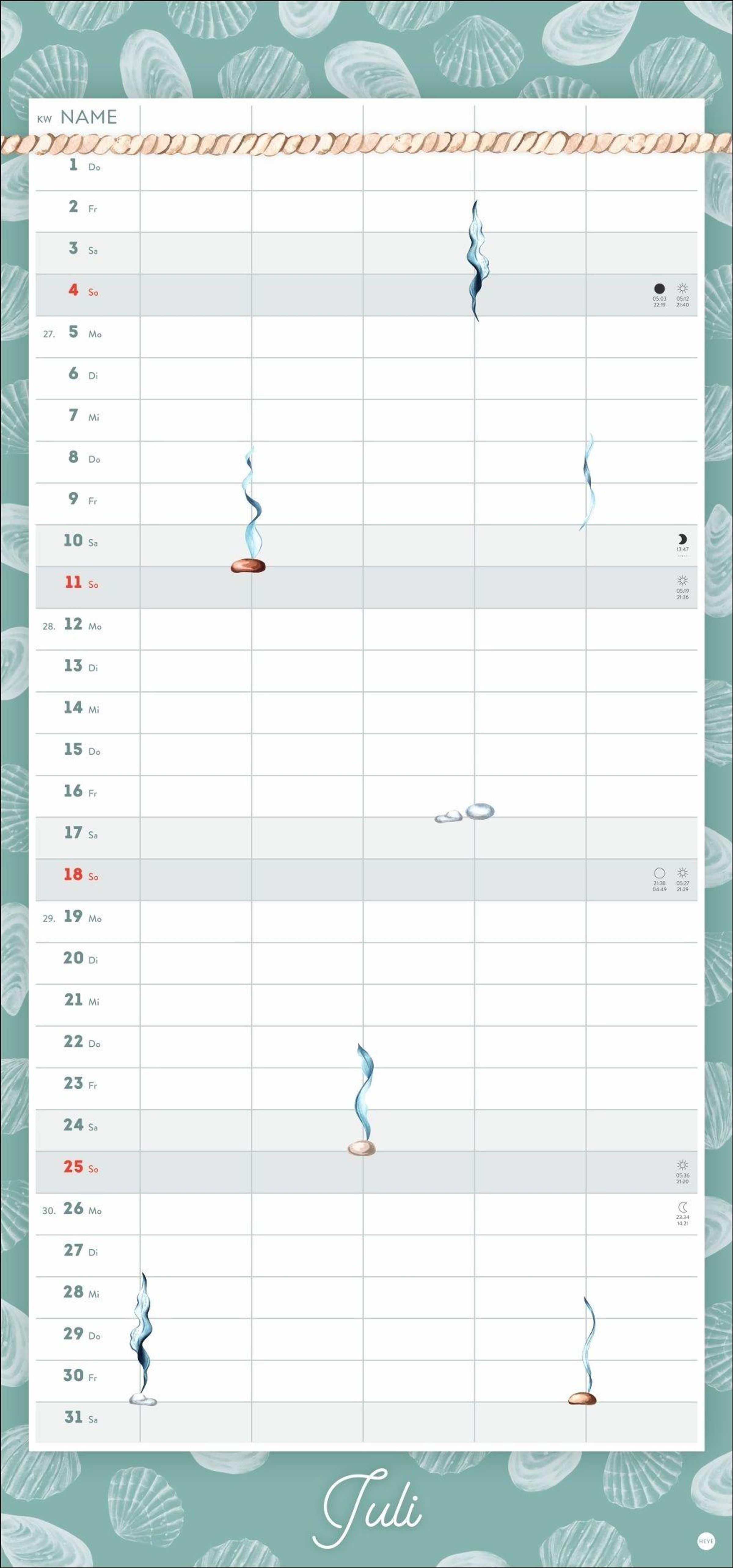 - Wandkalender 2027 zum Eintragen mit maritimen Motiven. Familienkalender mit 5 Spalten Platz für alle wichtigen Termine
