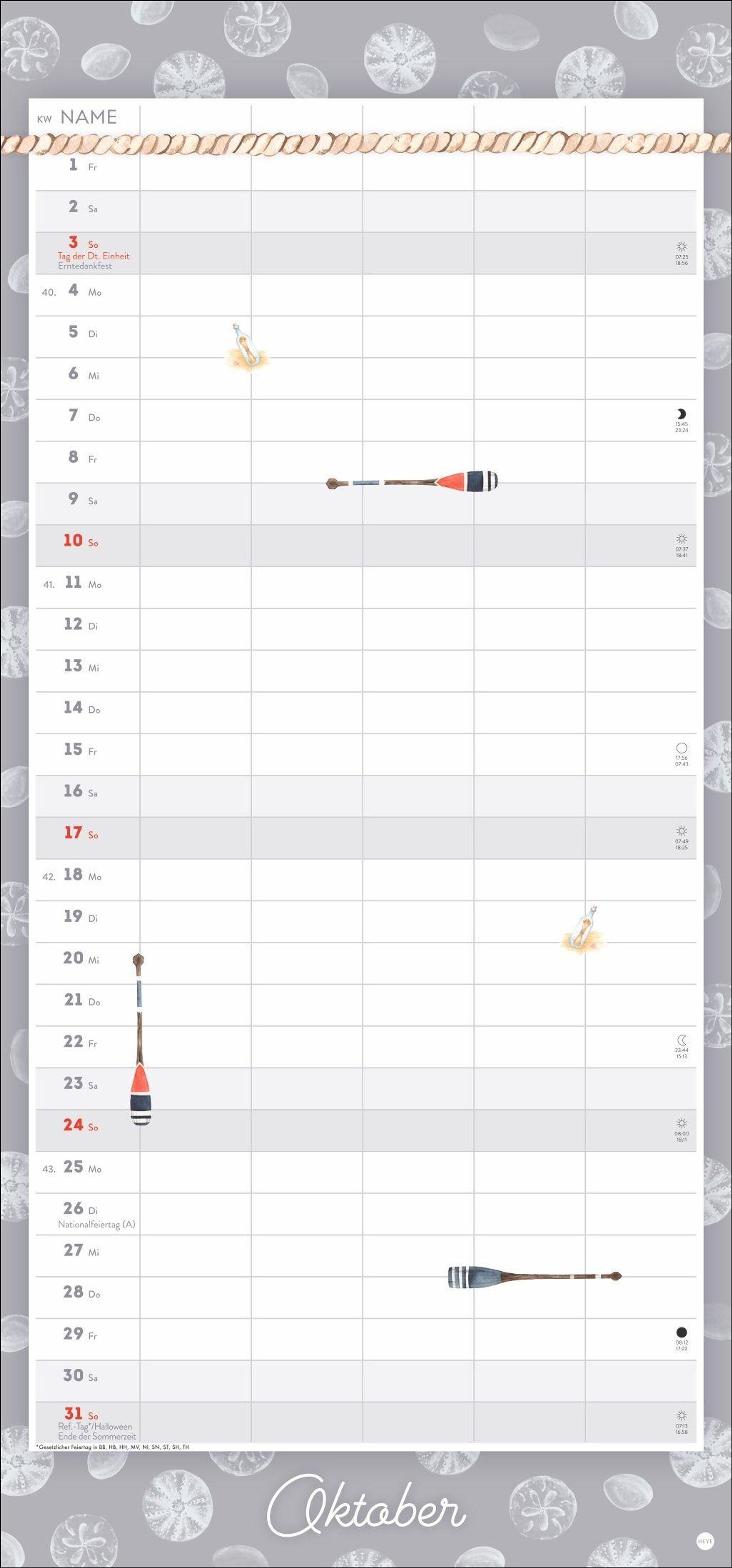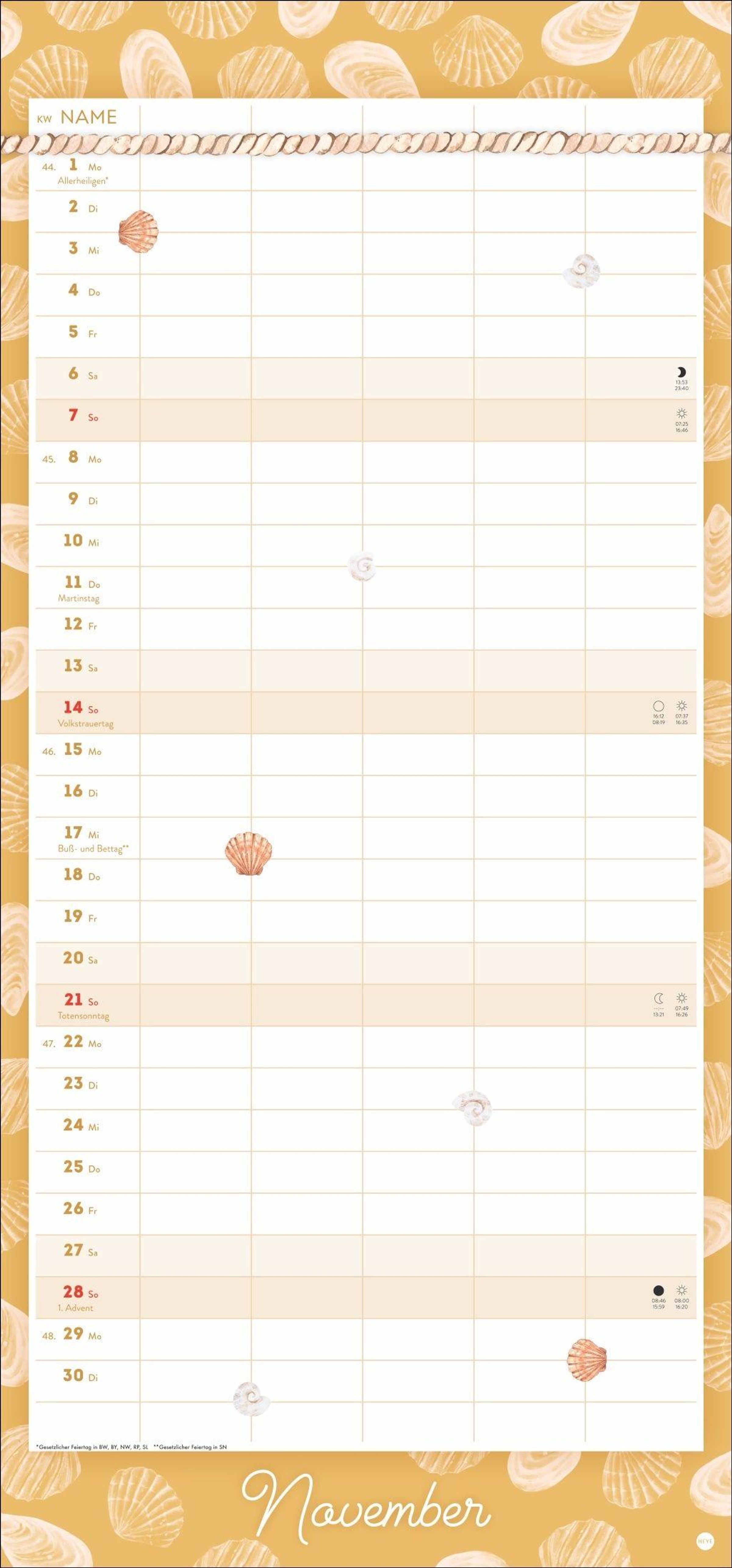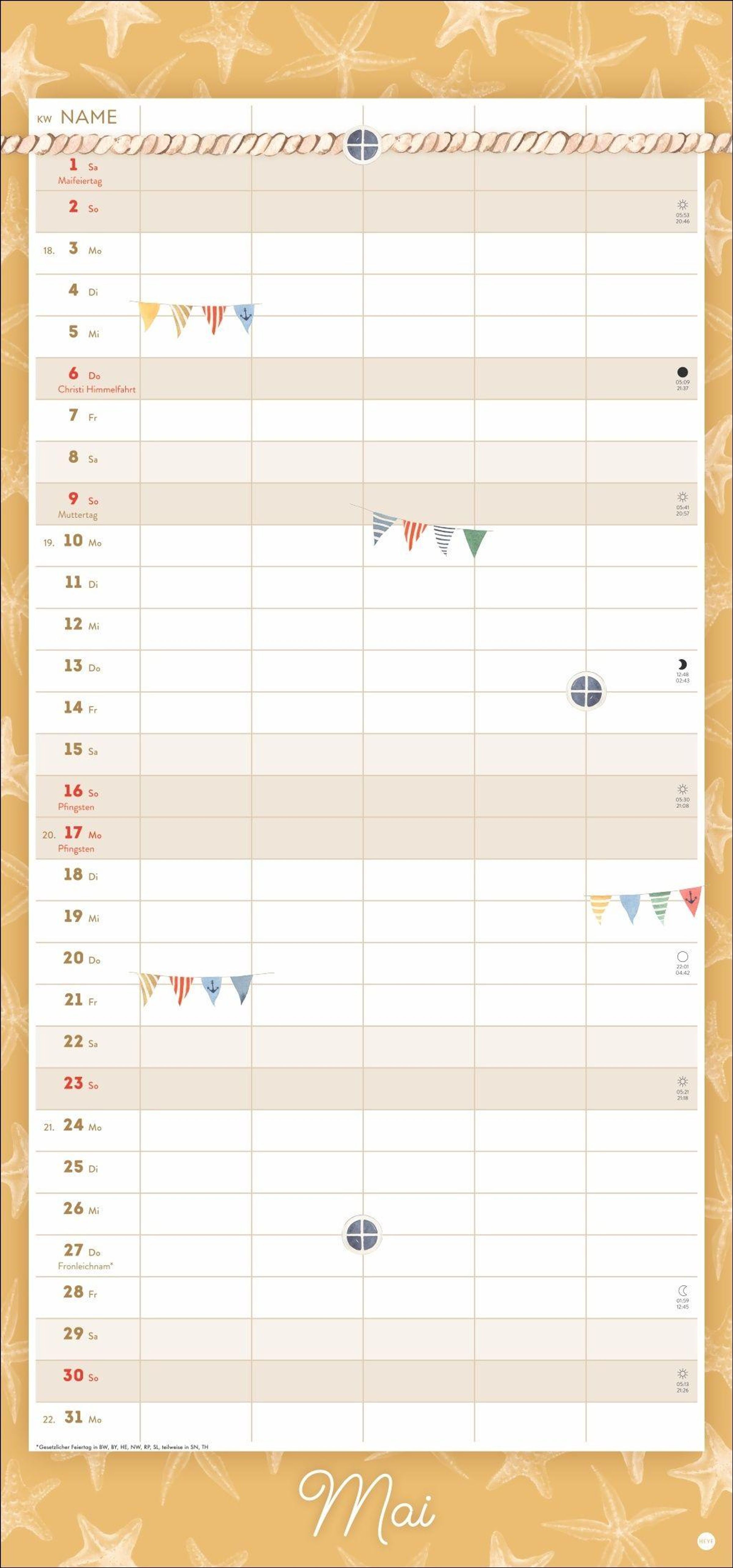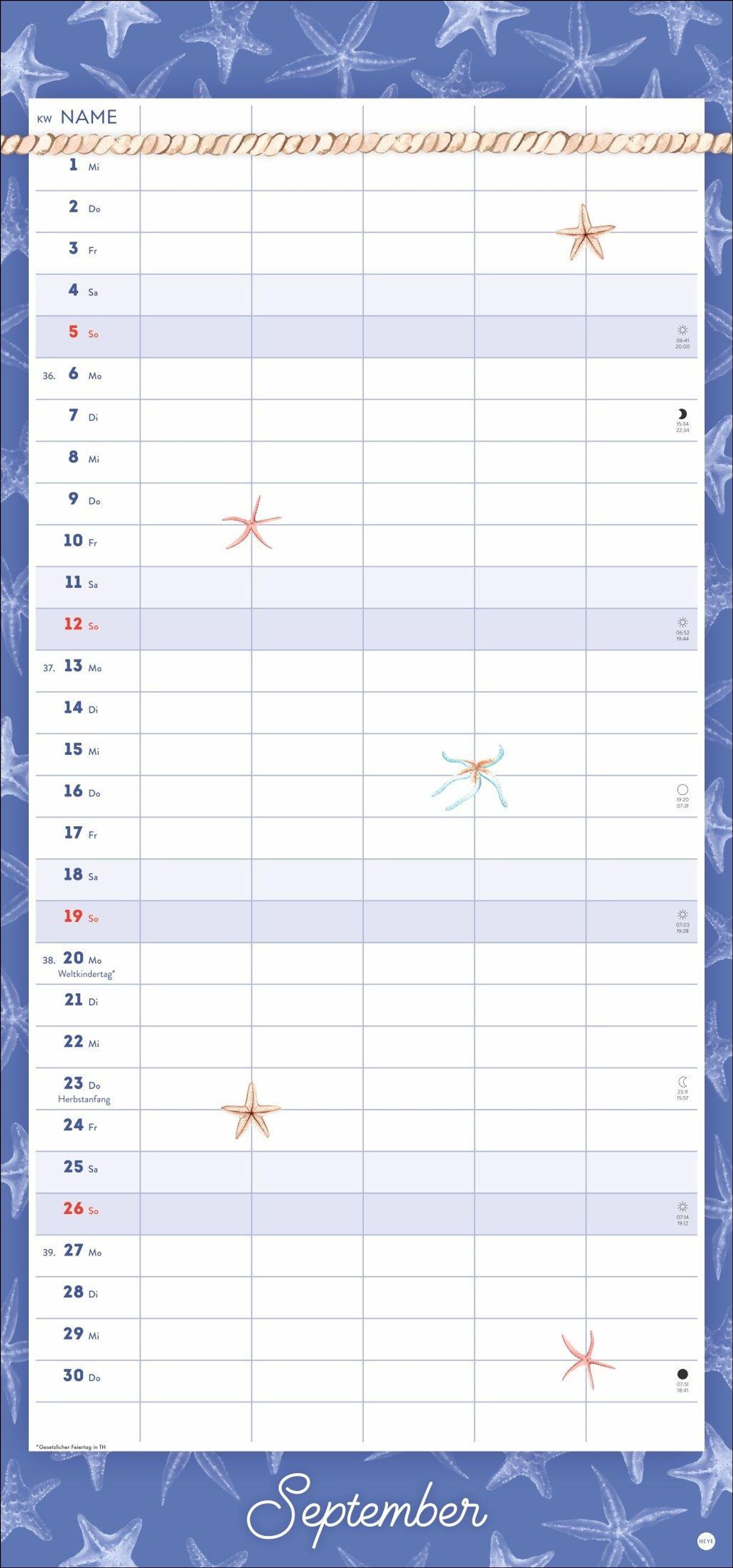 - Wandkalender 2027 zum Eintragen mit maritimen Motiven. Familienkalender mit 5 Spalten Platz für alle wichtigen Termine