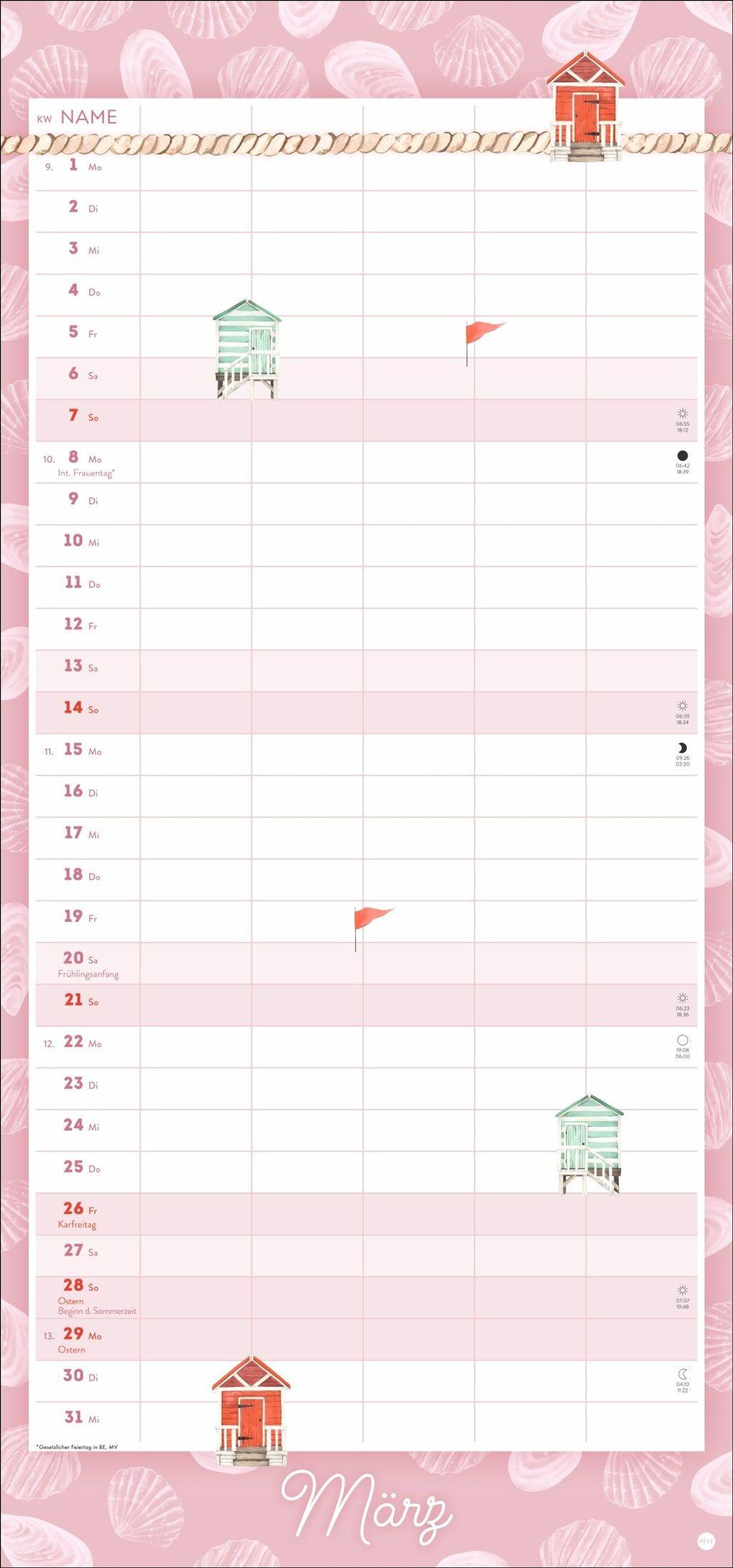 Praktisch für die gesamte Crew: kompaktes 21 x 45 cm Hochformat mit Extras wie Schulferienübersicht