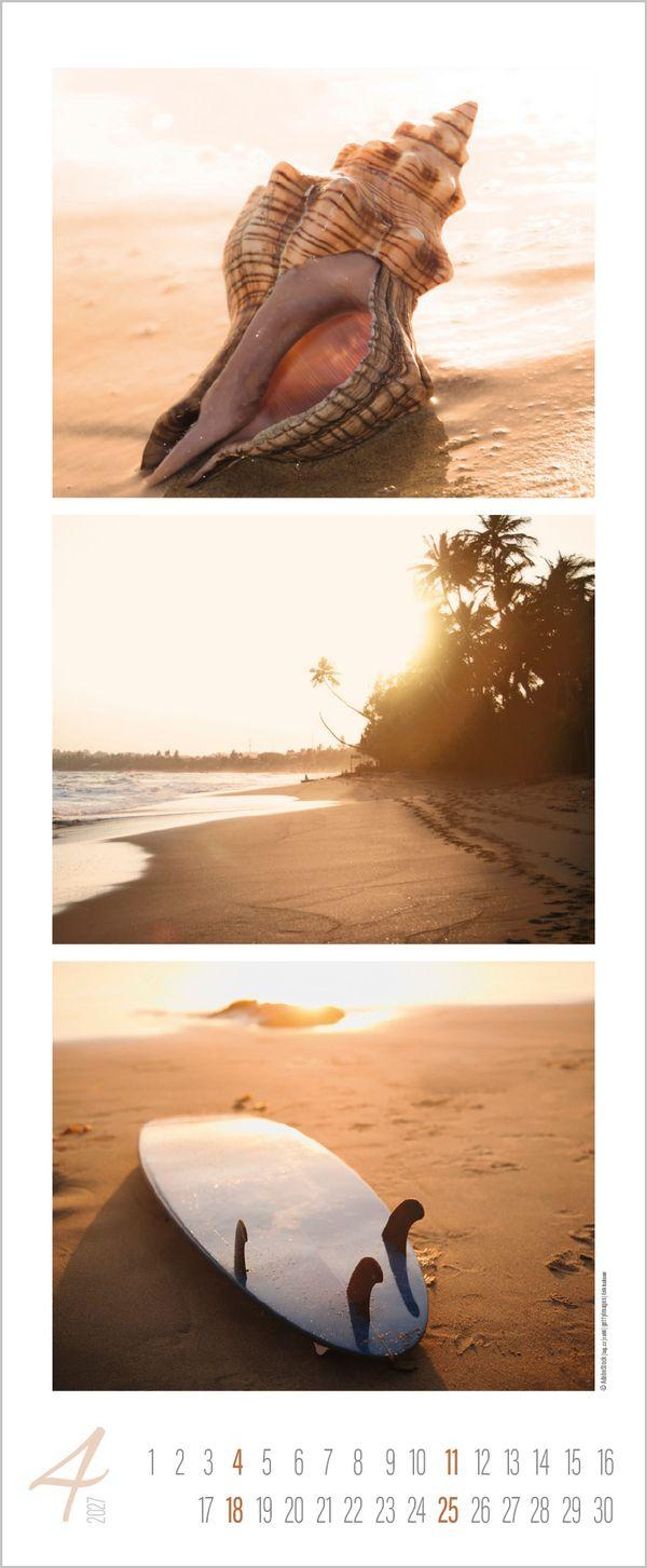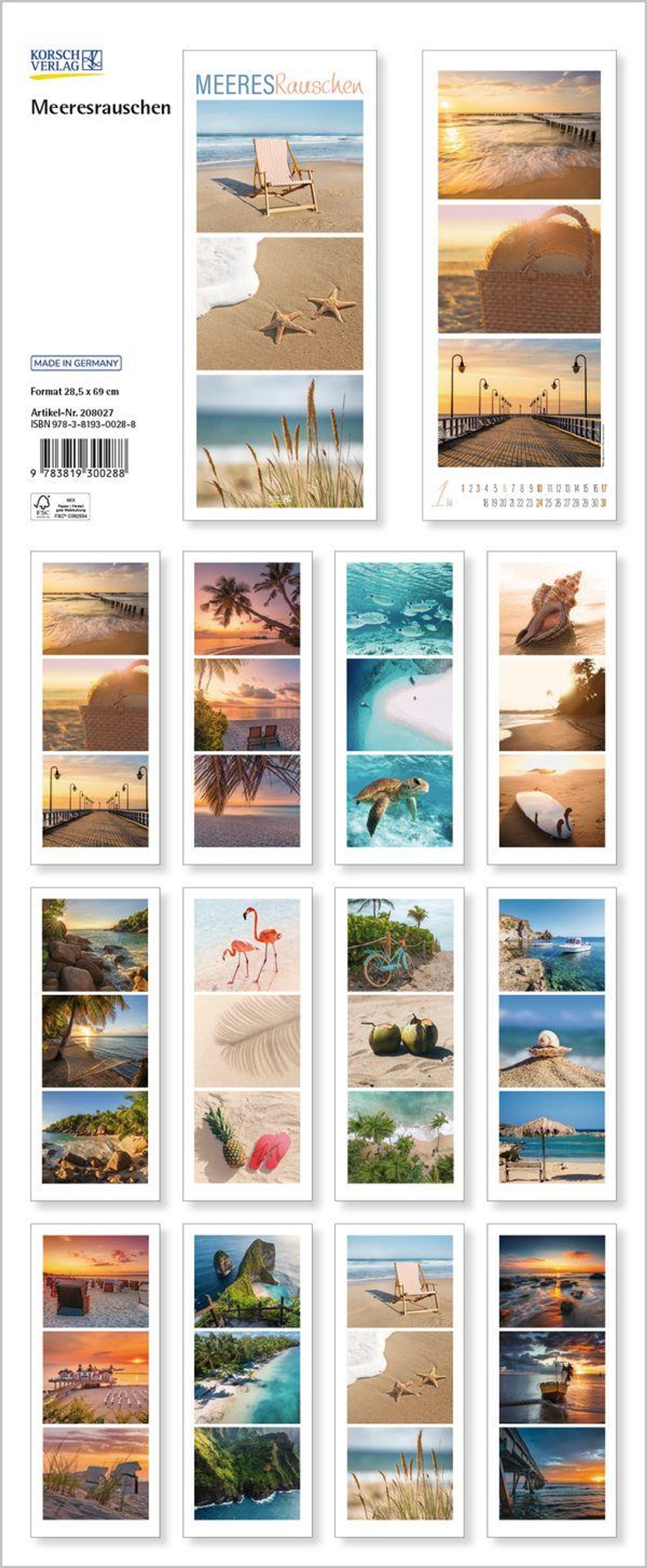 - Schmaler Wandkalender. Foto-Kunstkalender zum Thema Meer und Strand. PhotoArt Vertikal Format: 28,5x69 cm.