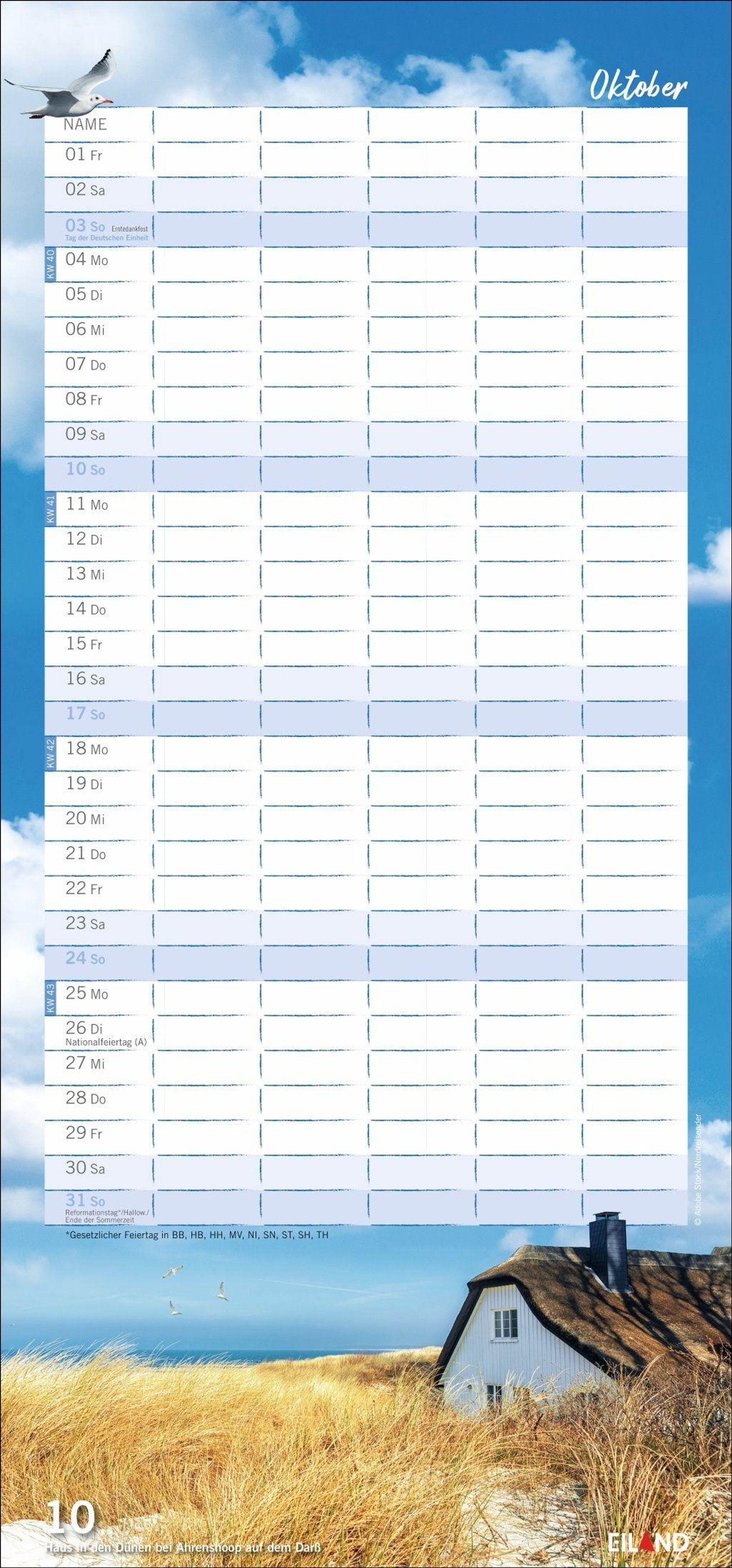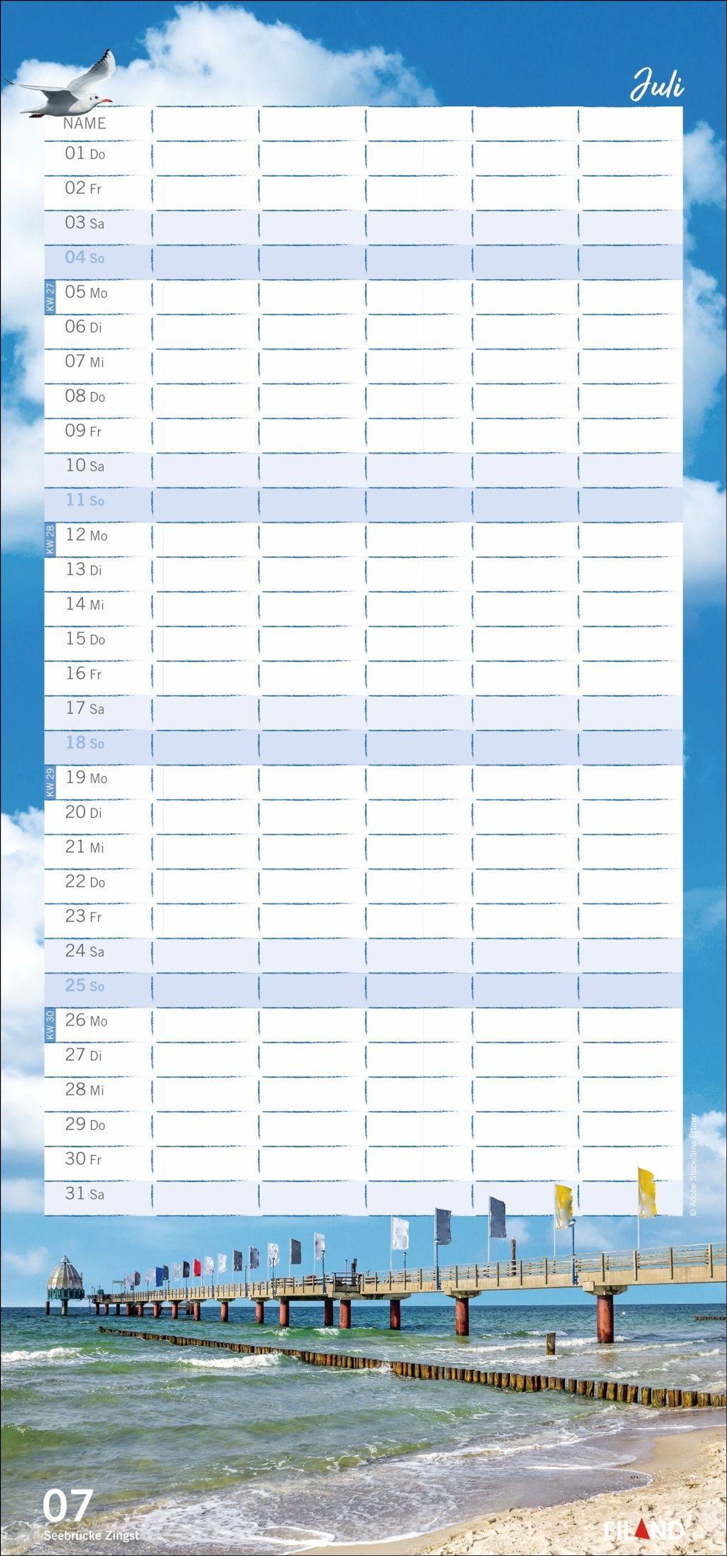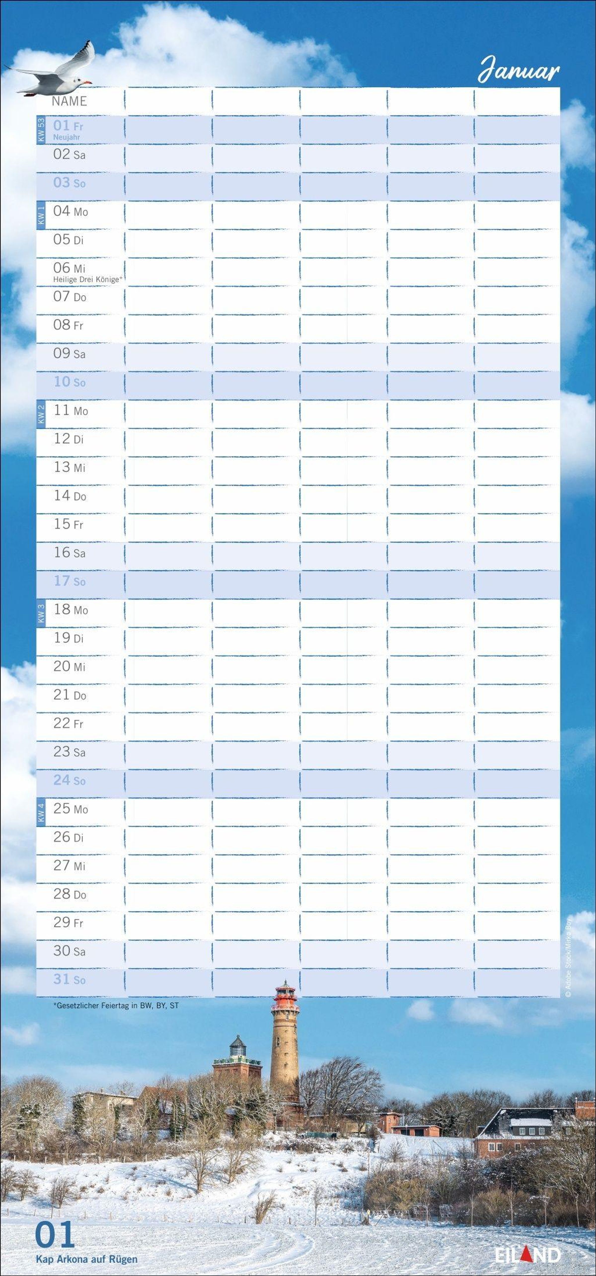 - Wunderschöne Naturaufnahmen und Küsten-Motive von Nord- bis Ostsee. Maritime Urlaubsstimmung im Familienkalender mit 5 Spalten. Wandplaner im Format 21 x 45 cm