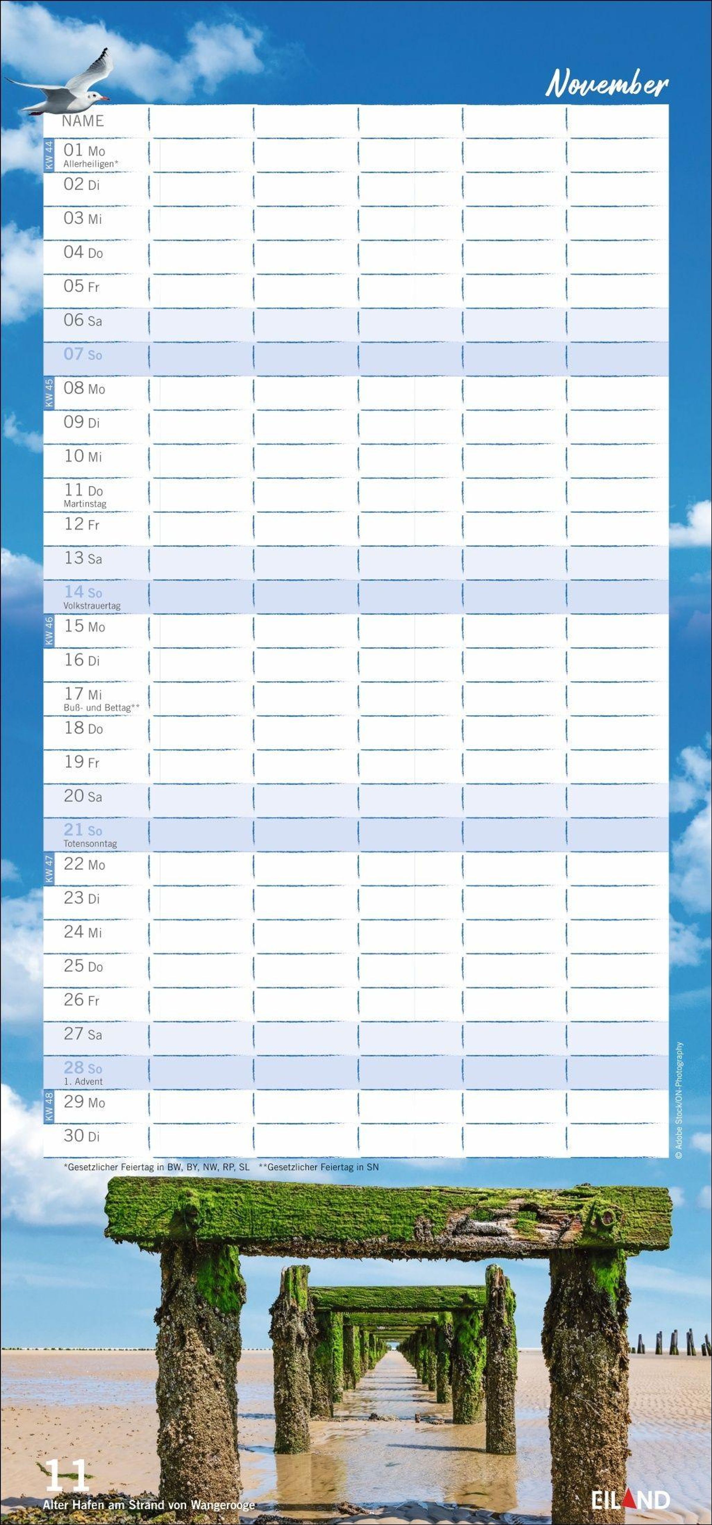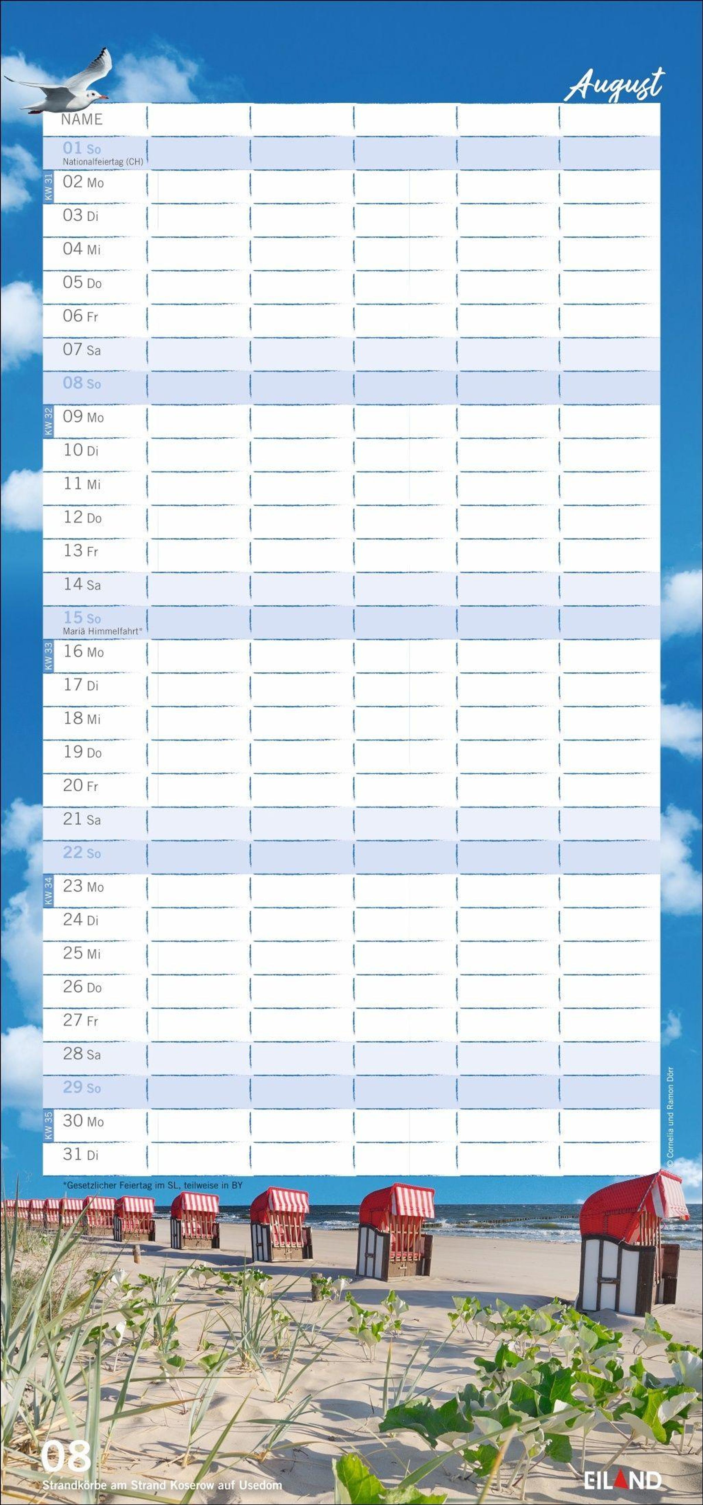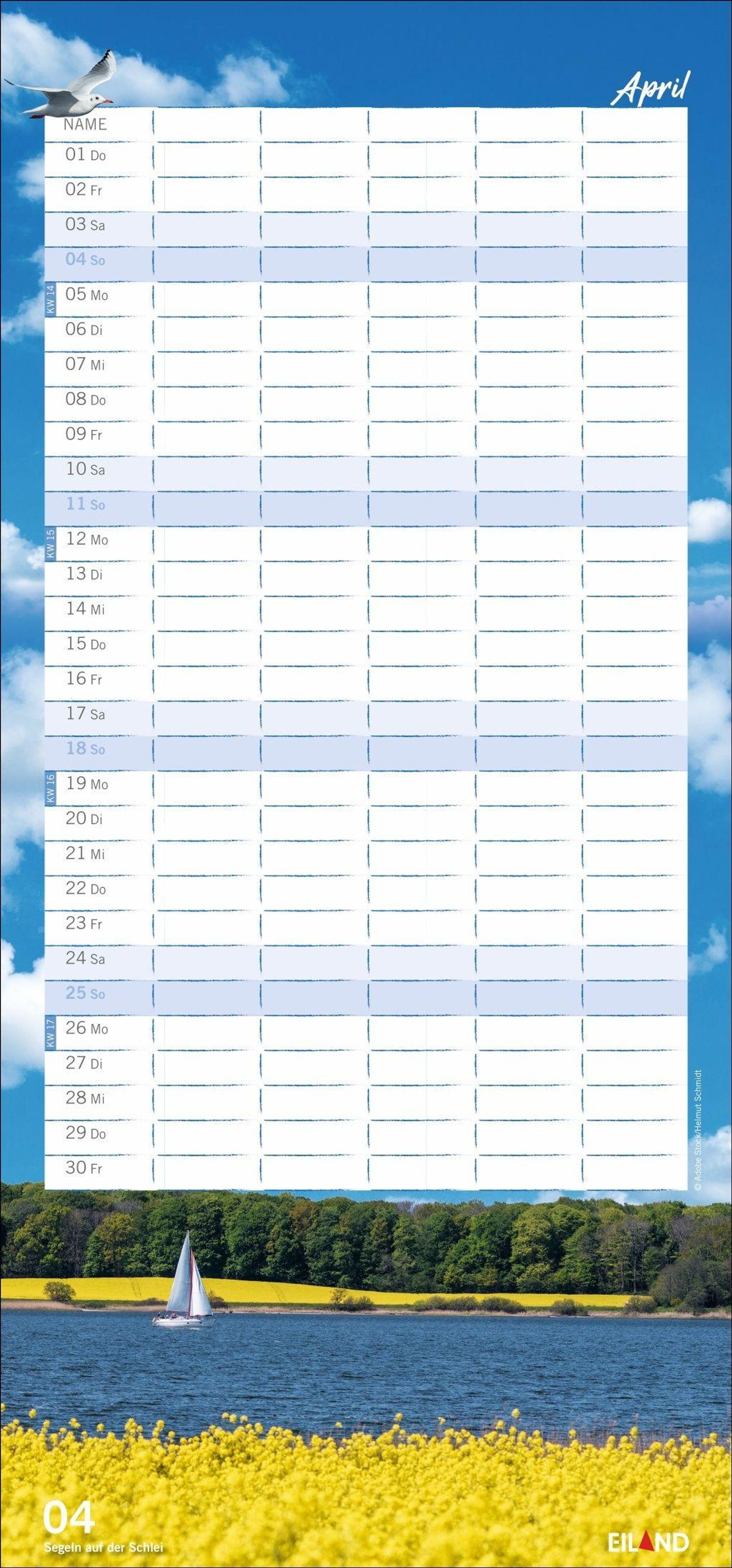 - Wunderschöne Naturaufnahmen und Küsten-Motive von Nord- bis Ostsee. Maritime Urlaubsstimmung im Familienkalender mit 5 Spalten. Wandplaner im Format 21 x 45 cm