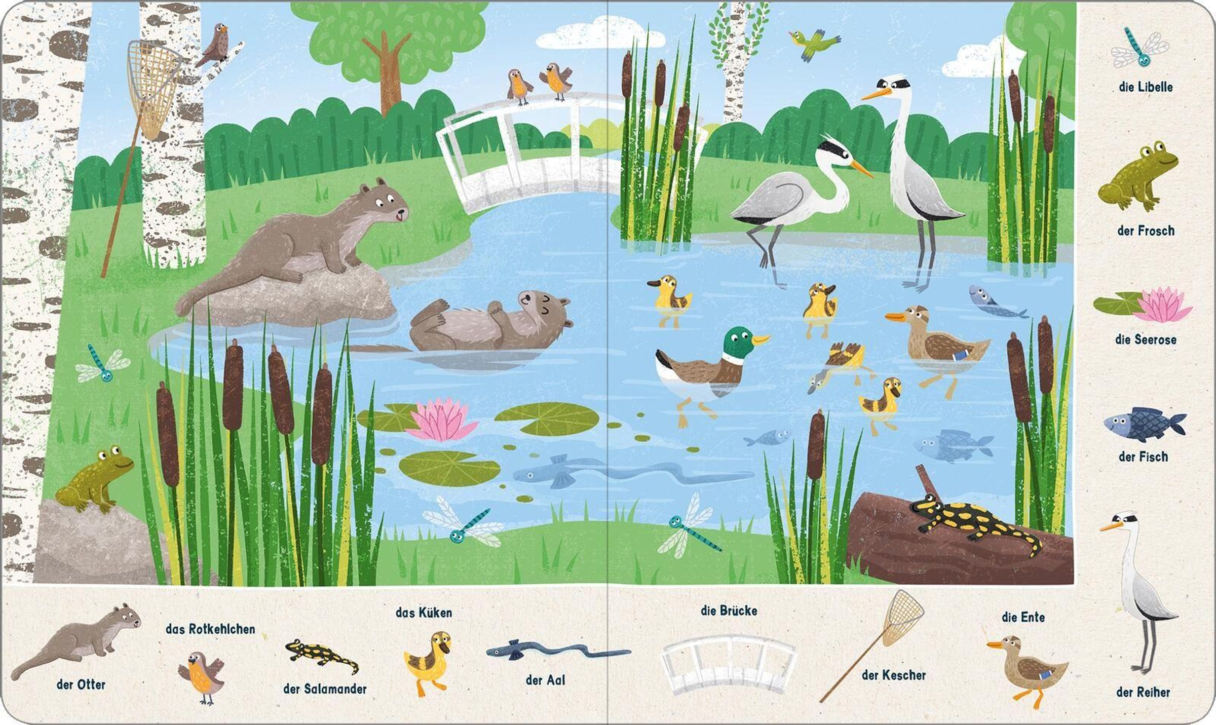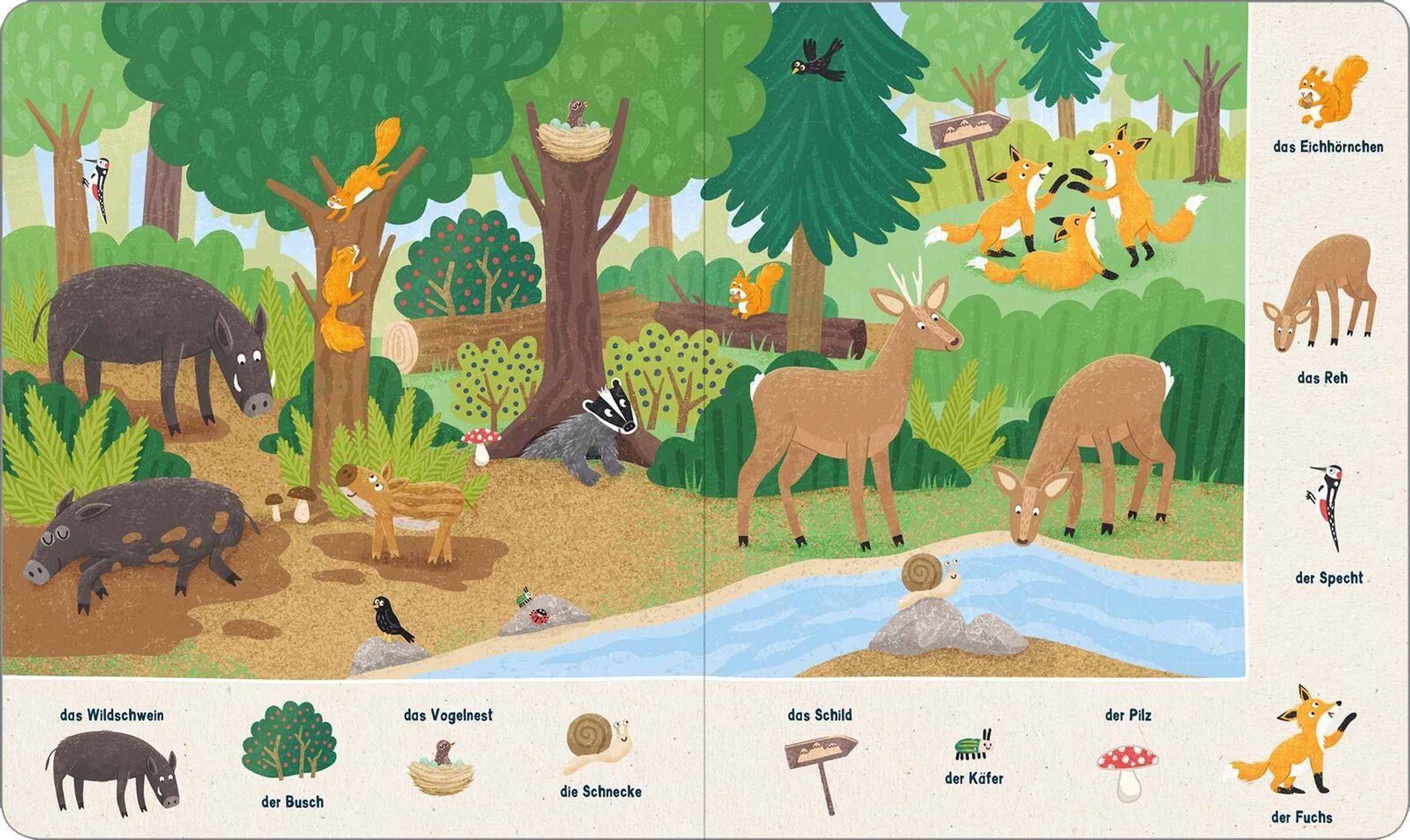 - Selbst aktiv werden: Das kunterbunte Wimmelbuch lädt Kinder ab 12 Monaten dazu ein, über 100 Tiere zu suchen und zu benennen. So wird das Buch zum allerersten Lexikon!
