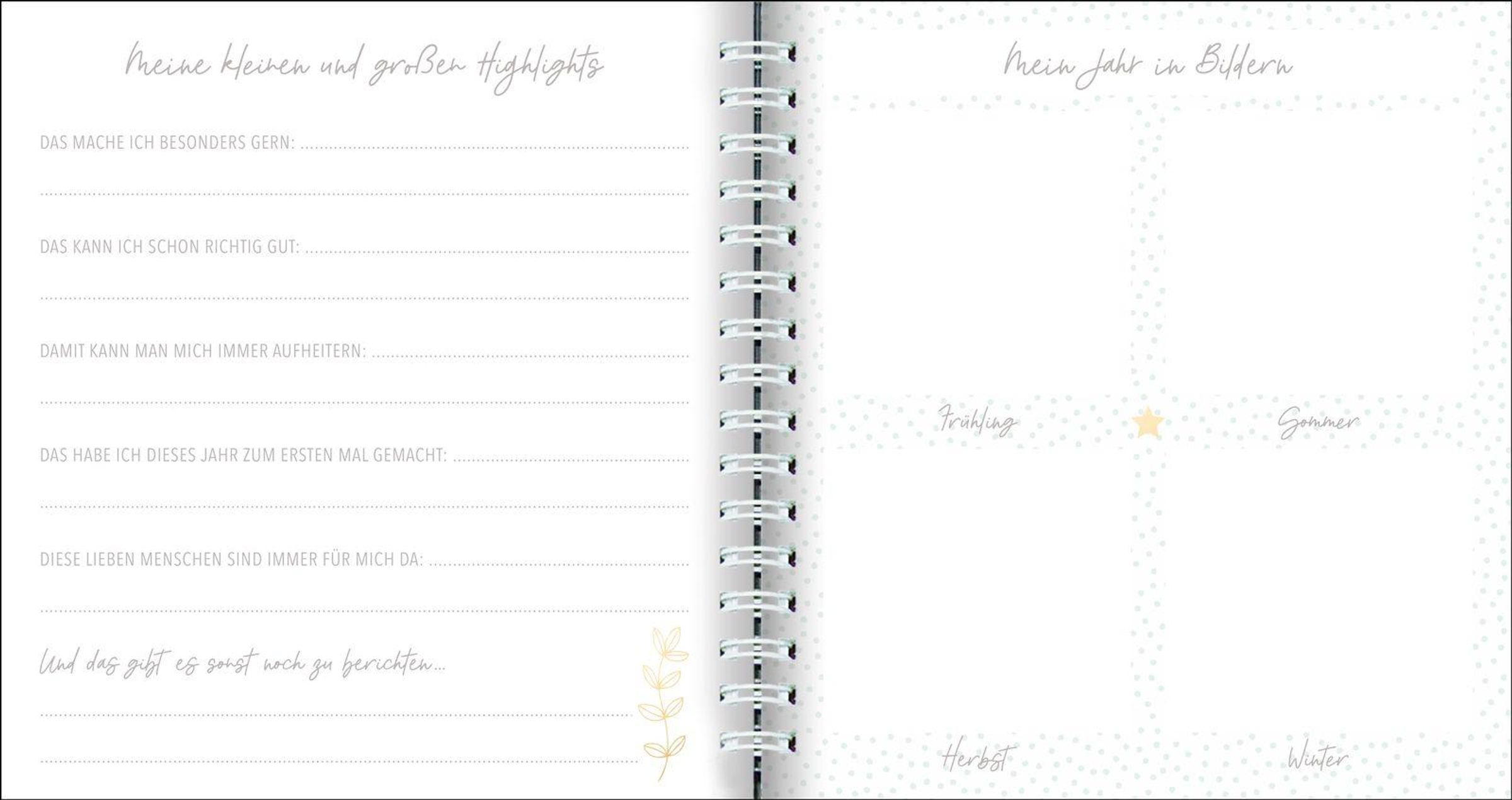 Die Zeit vergeht wie im Flug - vom ersten Atemzug bis zum 18. Geburtstag ist es ein Weg voller kleiner Wunder und großer Meilensteine. Das großformatige Album Mein erstes Buch - Erinnerungen an 18 Lebensjahre bietet den perfekten Rahmen, um diese kostbare Spanne festzuhalten. Auf 144 liebevoll gestalteten Seiten finden das erste Lächeln, der Tag der Einschulung und unvergessliche Sommerurlaube ihren Platz. Dank des hochwertigen, festen Papiers und der verdeckten Spiralbindung lassen sich nicht nur Fotos, sondern auch selbstgemalte Bilder und persönliche Andenken mühelos einkleben, ohne dass das Buch seine Form verliert.