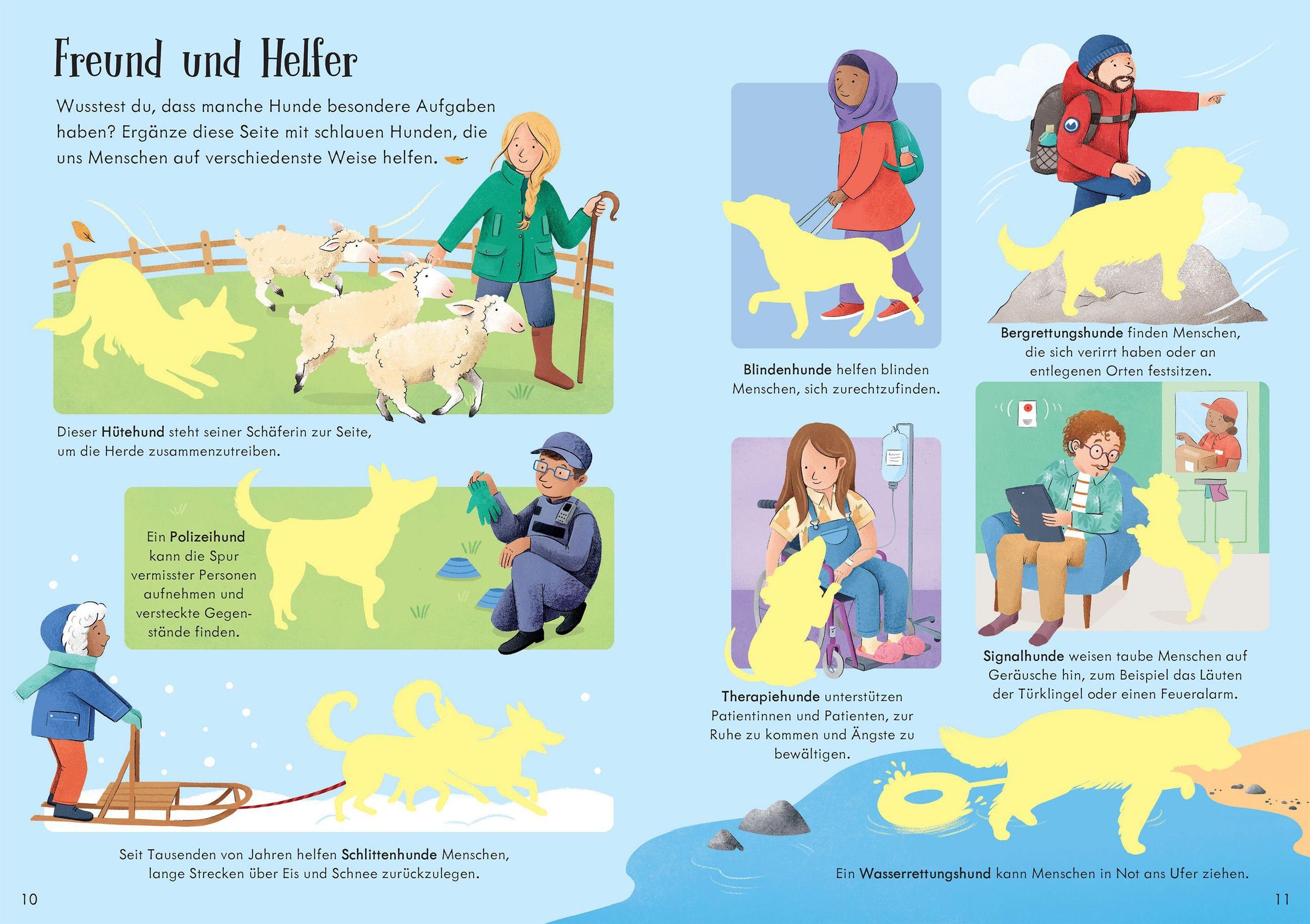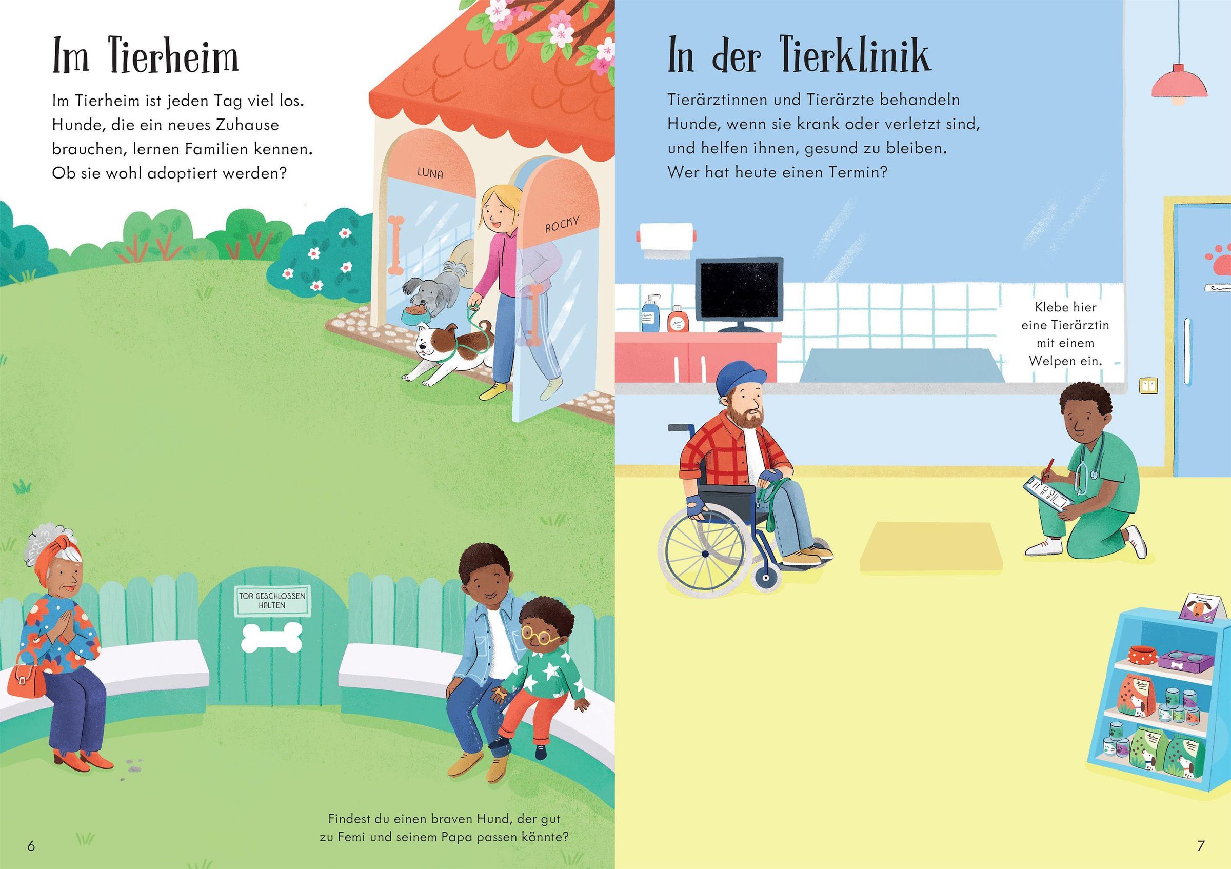Was braucht man alles, wenn man einen Hund hat? Wie sieht es bei einem Hundefriseur aus? Und wusstest du, dass manche Hunde einen Beruf haben? Mit über 100 wiederablösbaren Stickern kannst du dieses Buch mit niedlichen Welpen und vielen verschiedenen Hunden füllen und dabei einiges über sie erfahren.